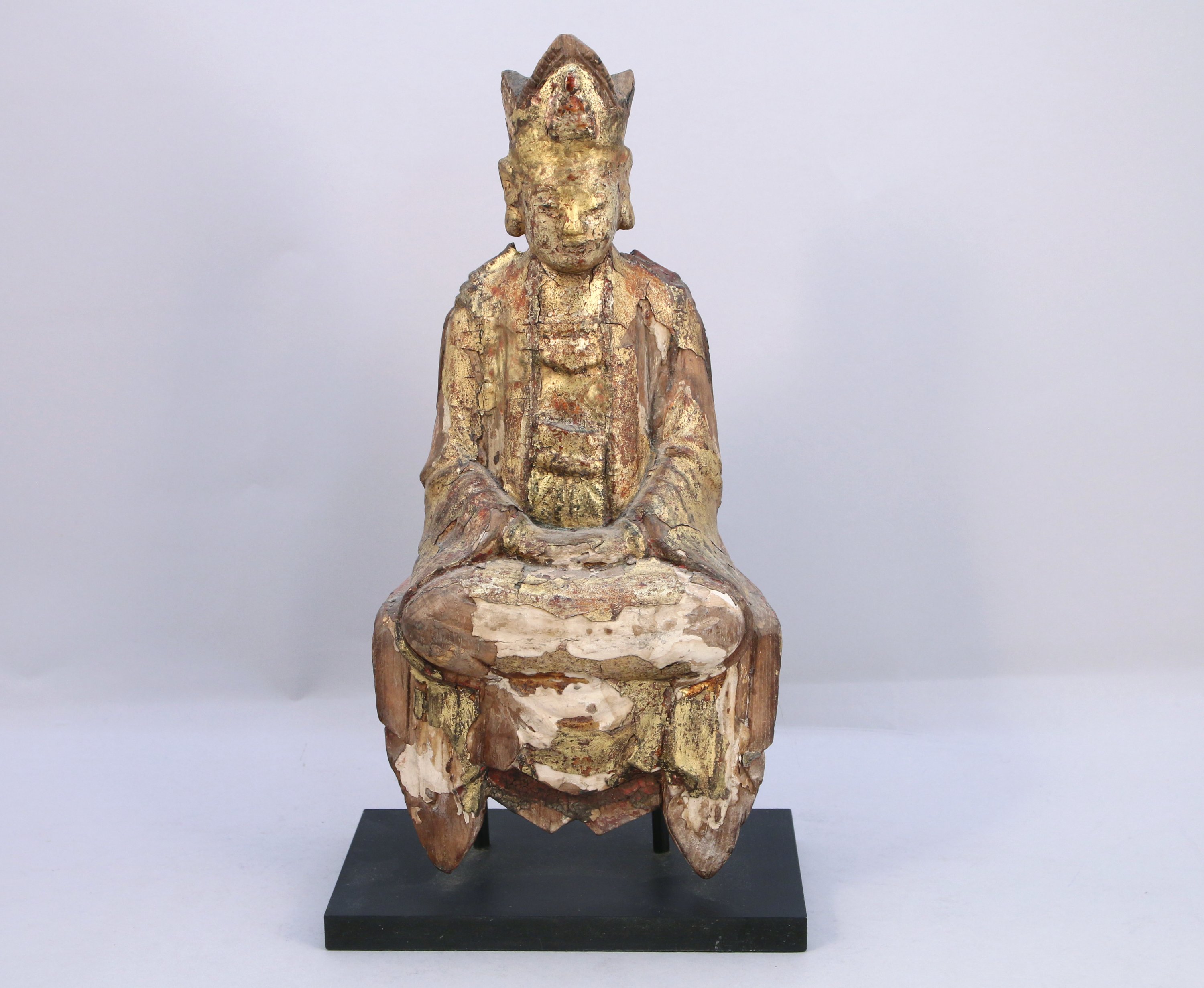 CHINE - Époque MING. BODHISATTVA, bouddha figuré dans sa coiffe.En...