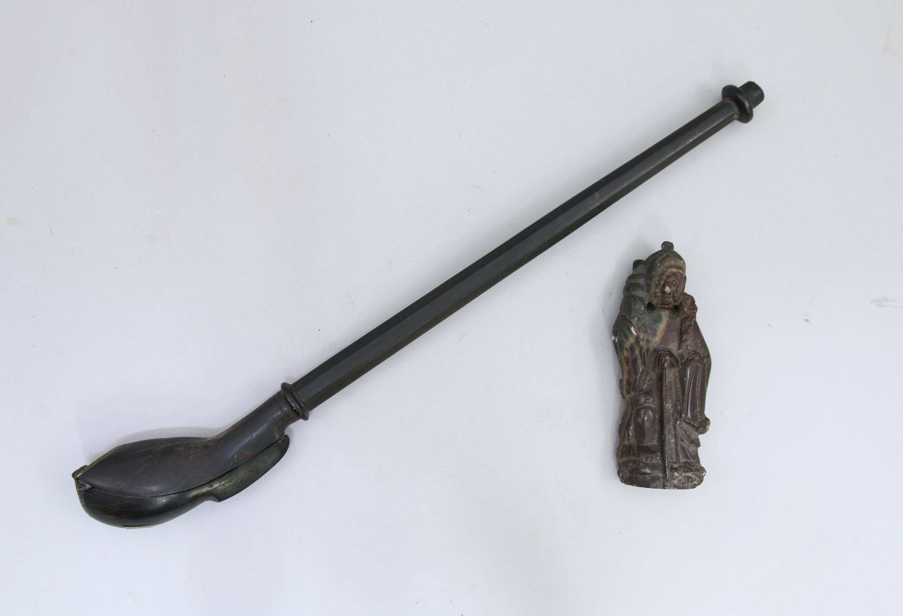 PIPE en bois et PERSONNAGE debout en stéatite.