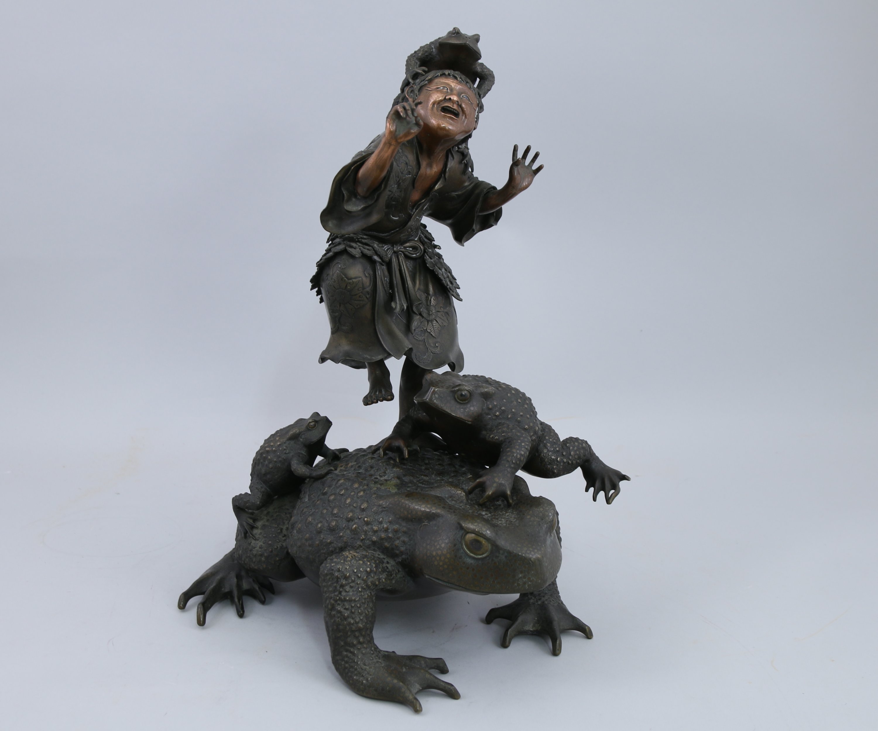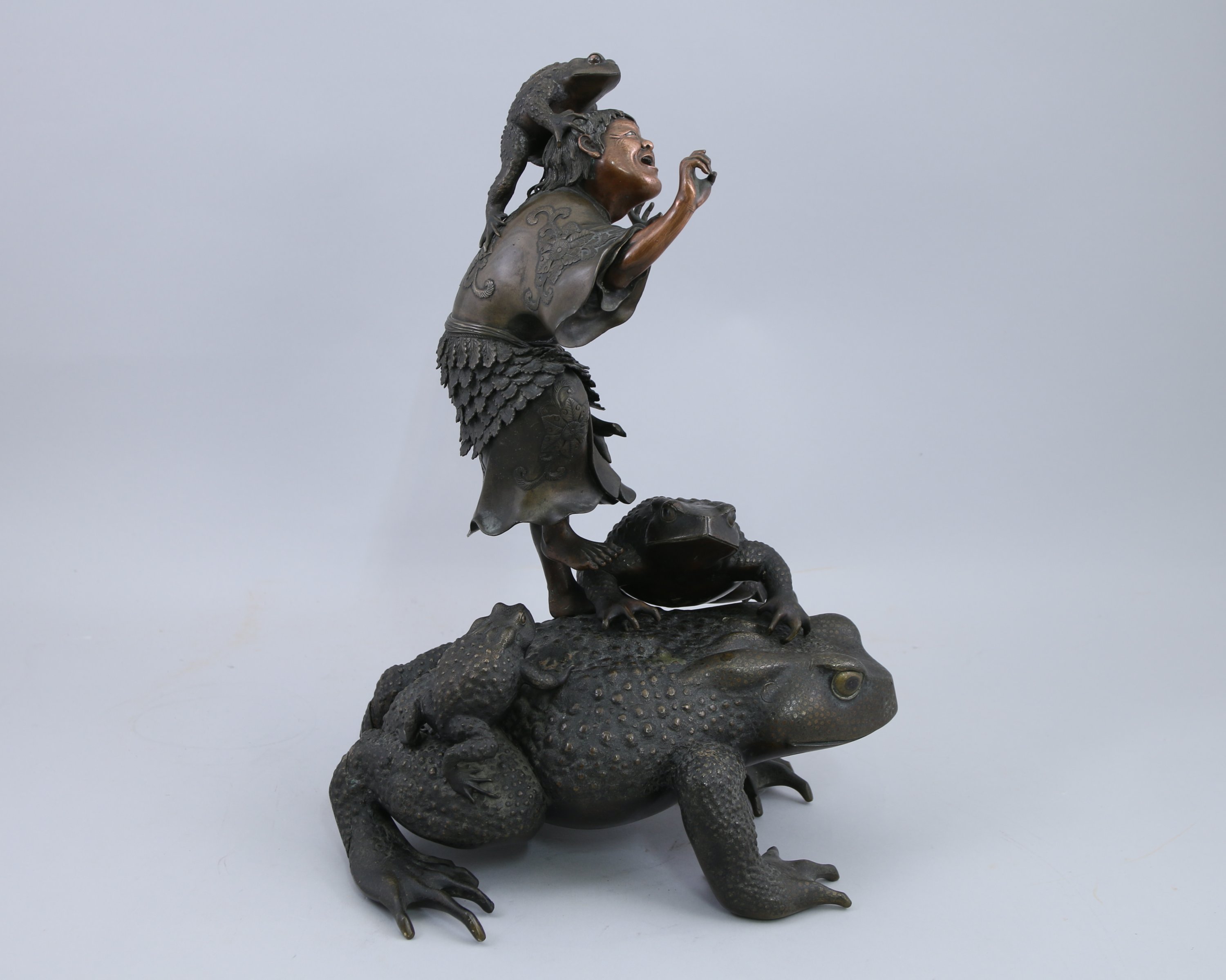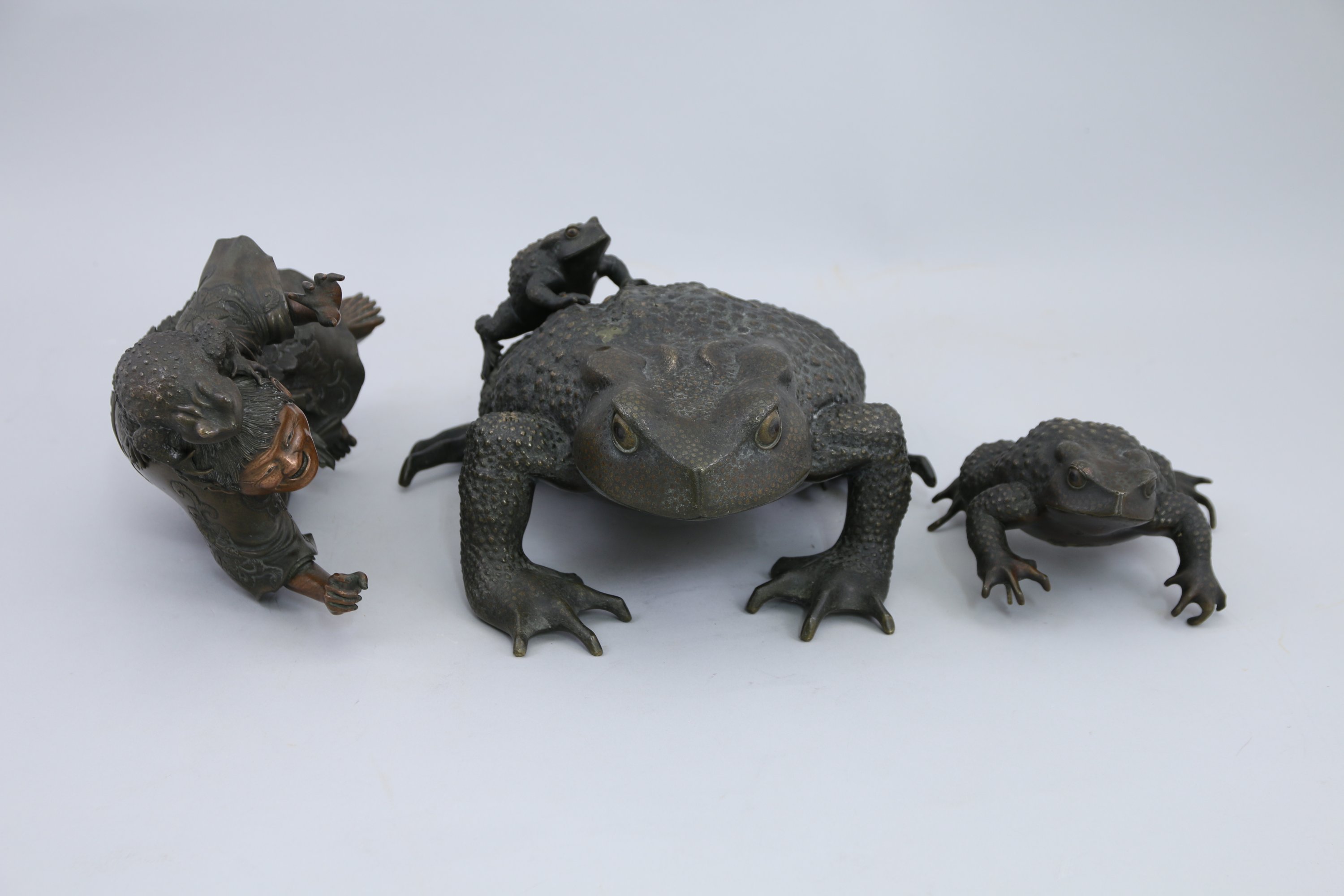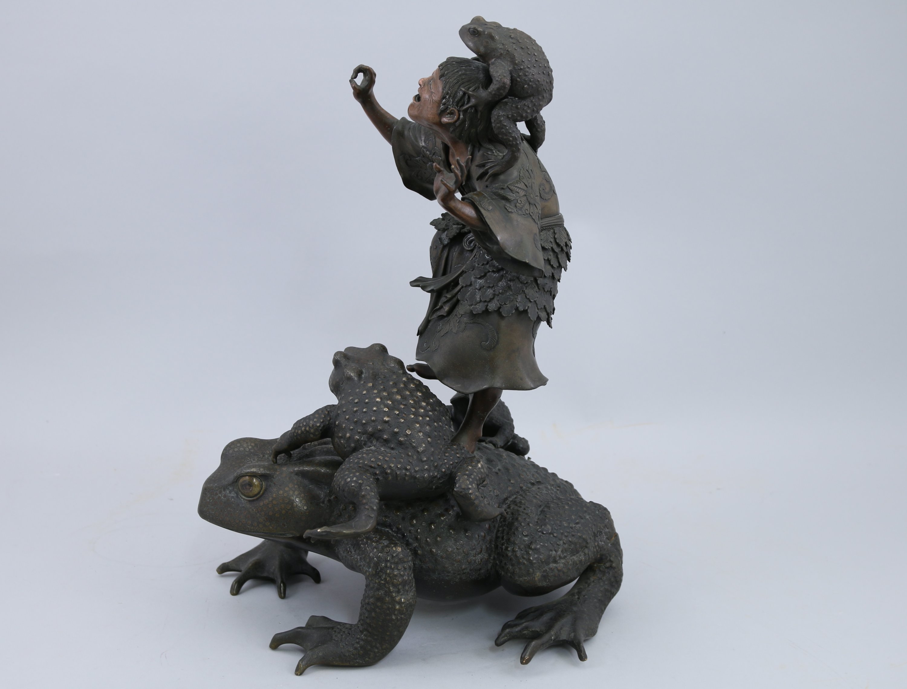 JAPON - Époque MEIJI. OKIMONO aux crapauds. En bronze patiné...