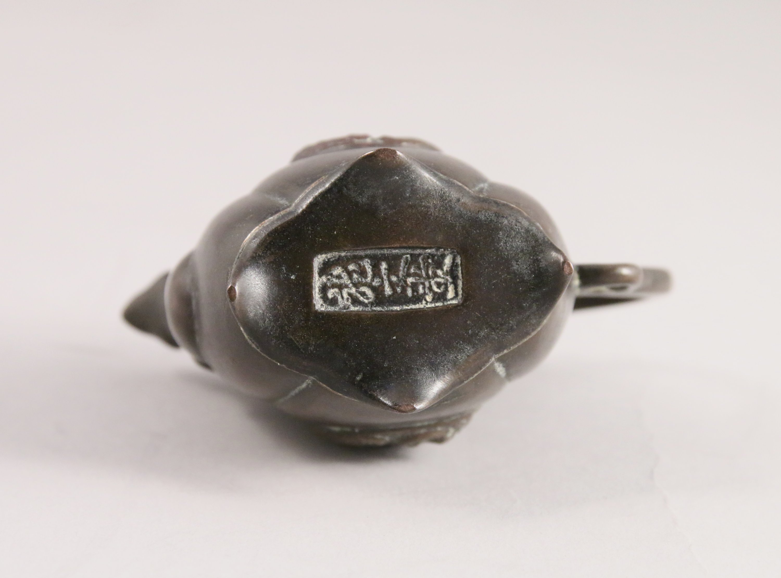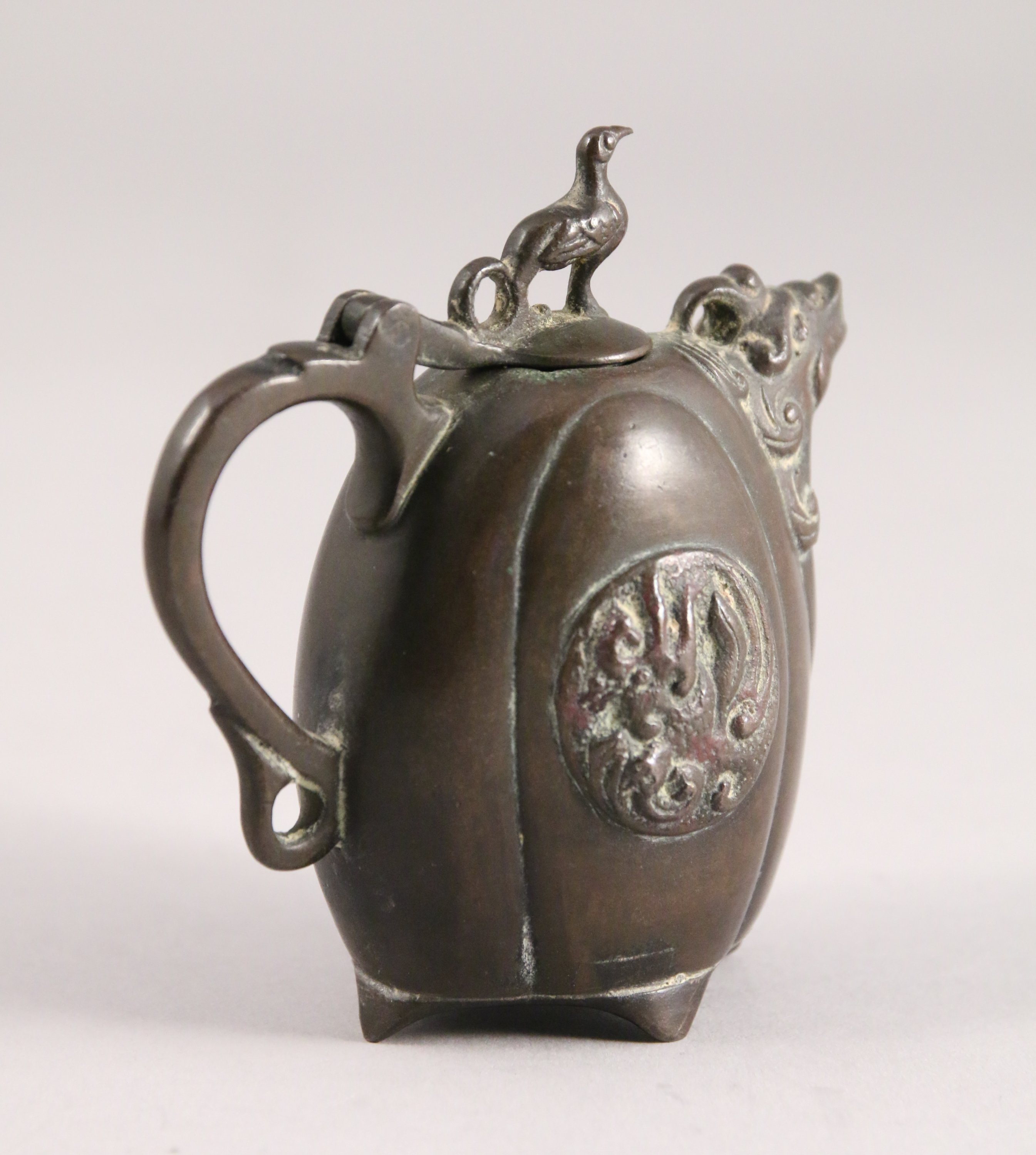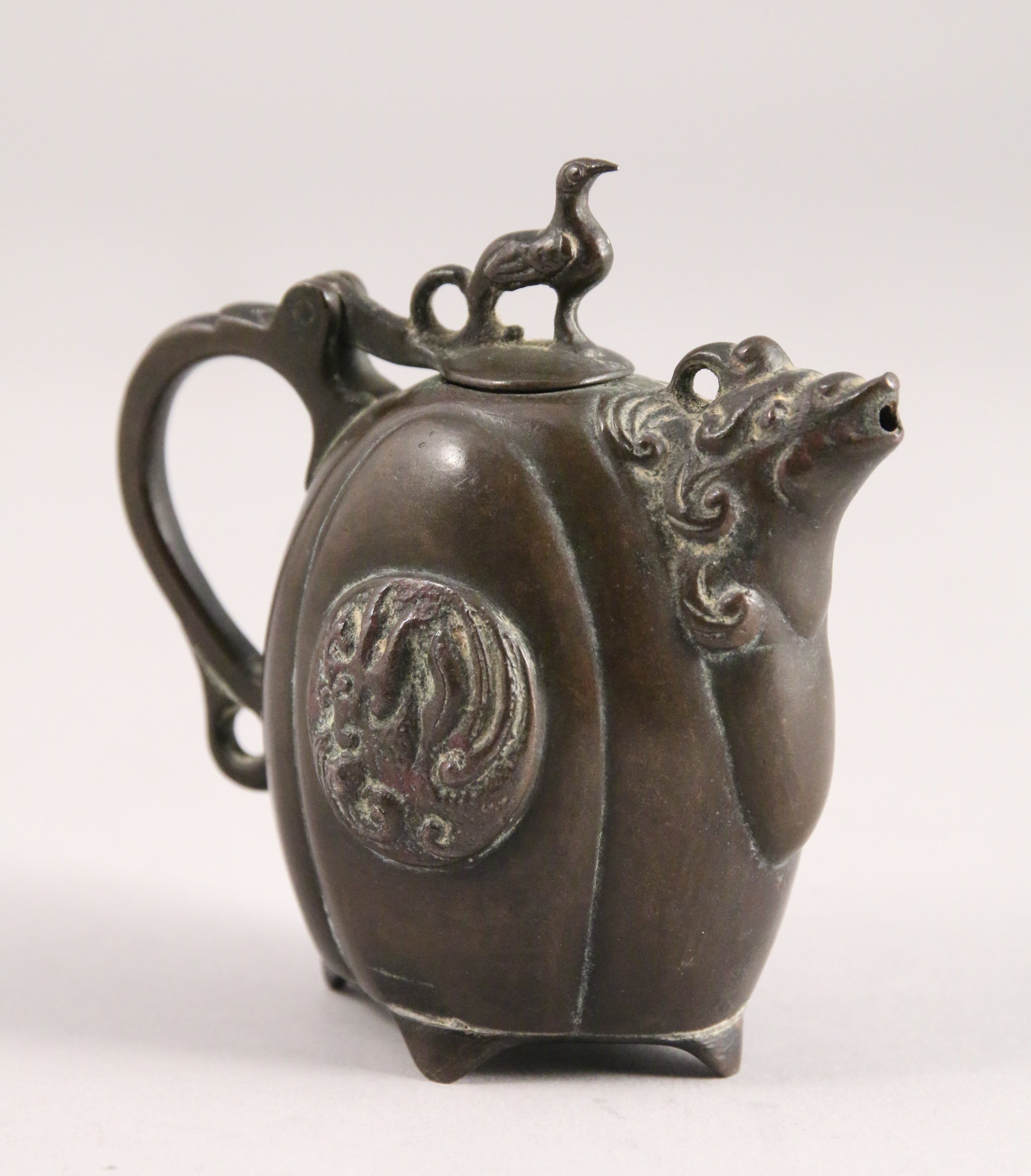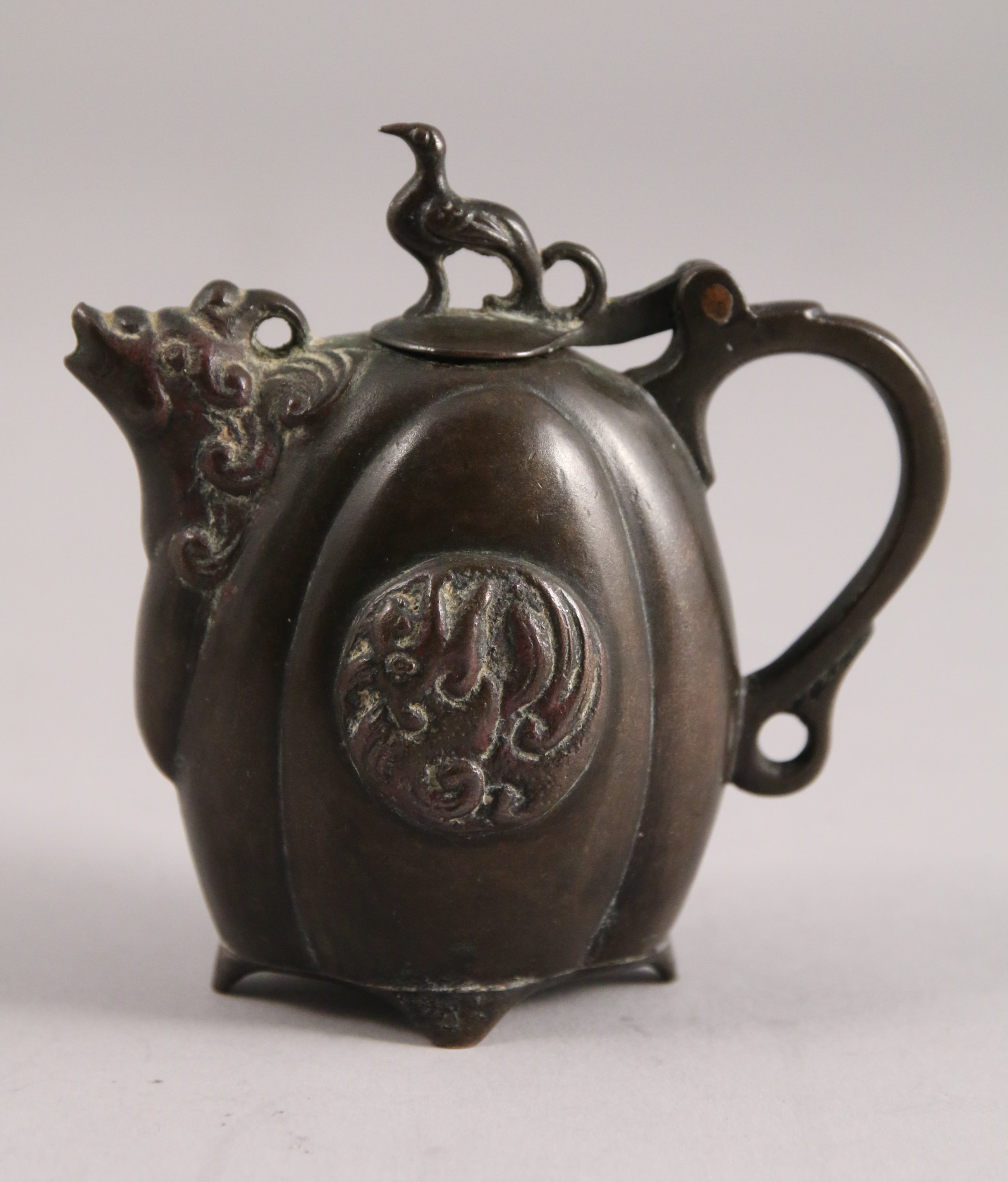 Petit COMPTE-GOUTTE en bronze, le bec en forme de kirin, la prise du couvercle en forme de kirin.