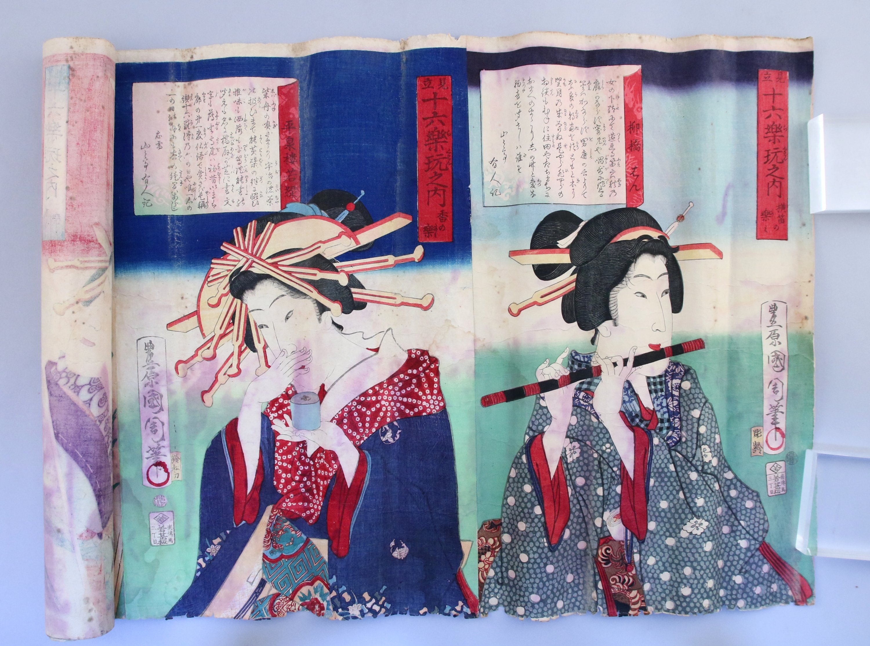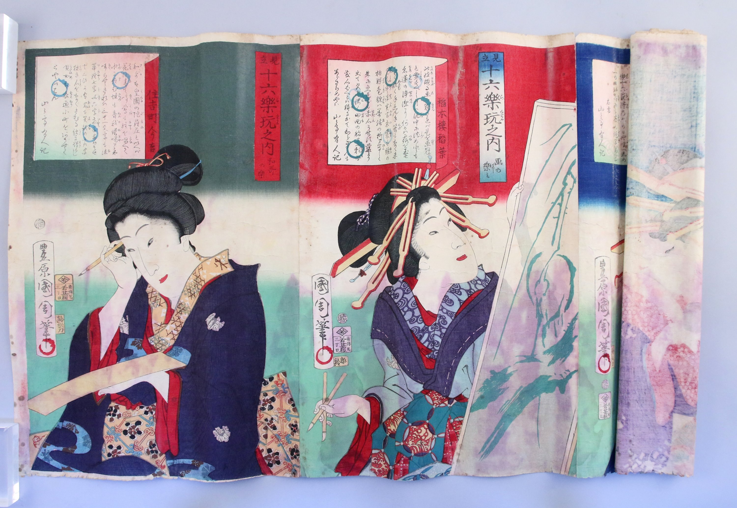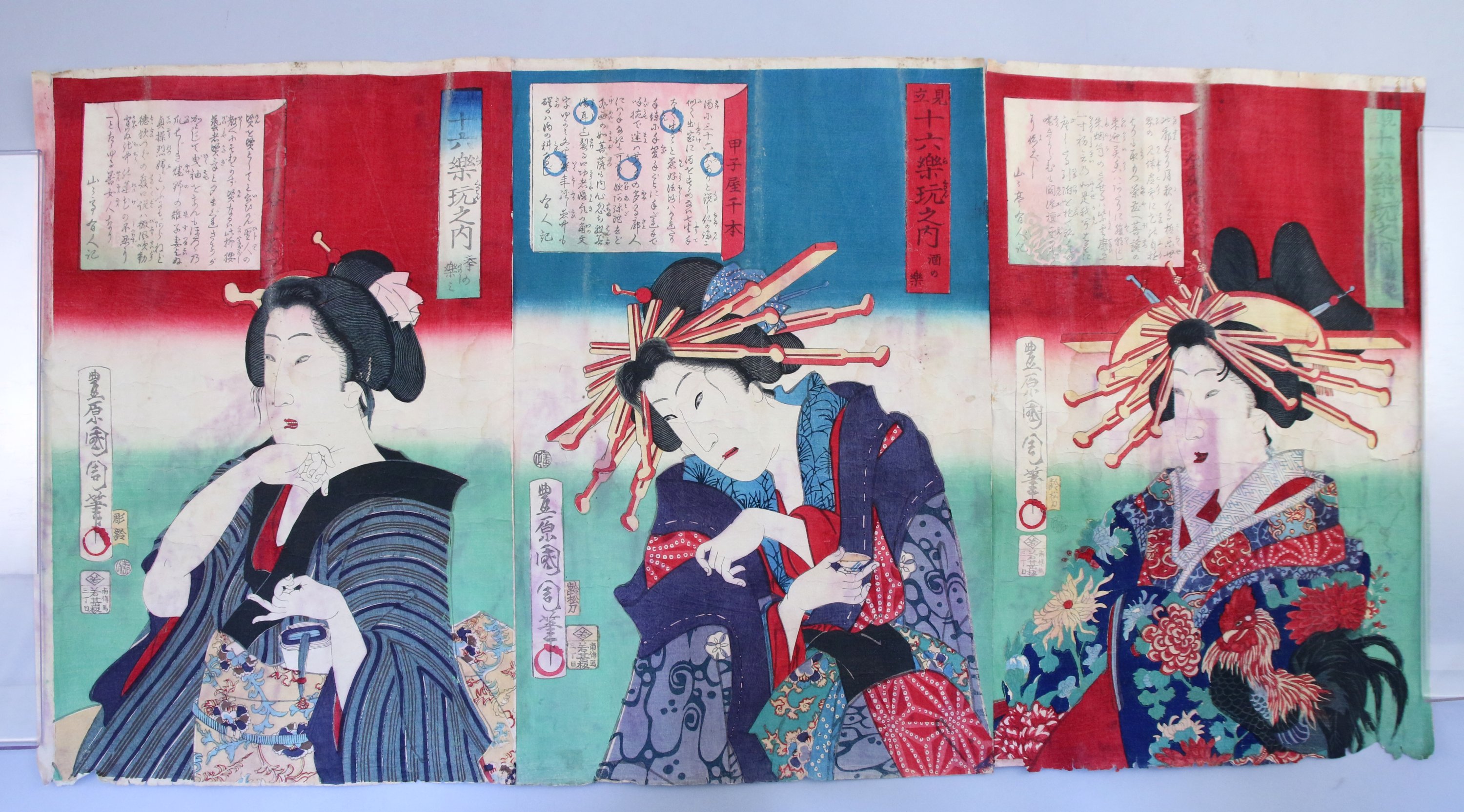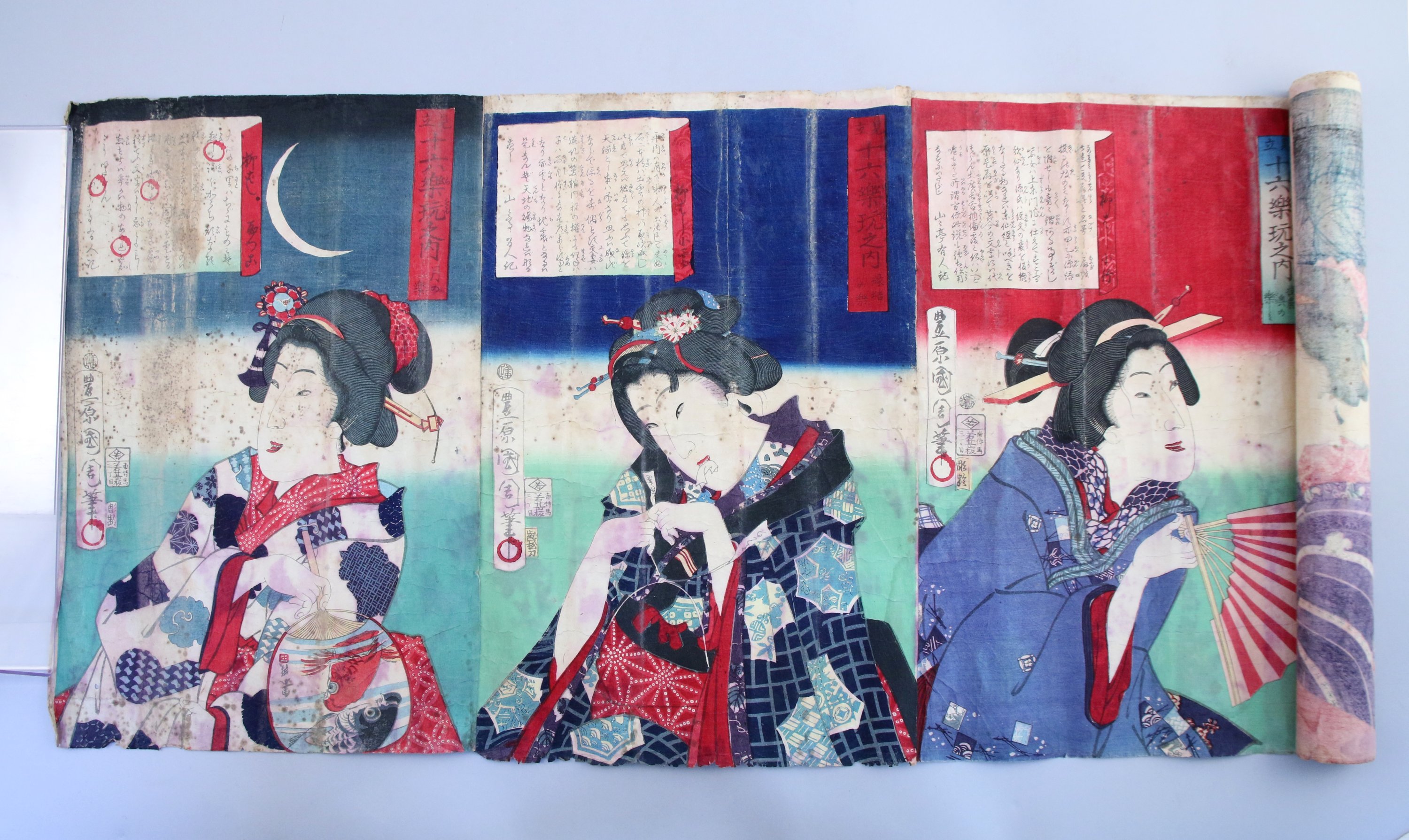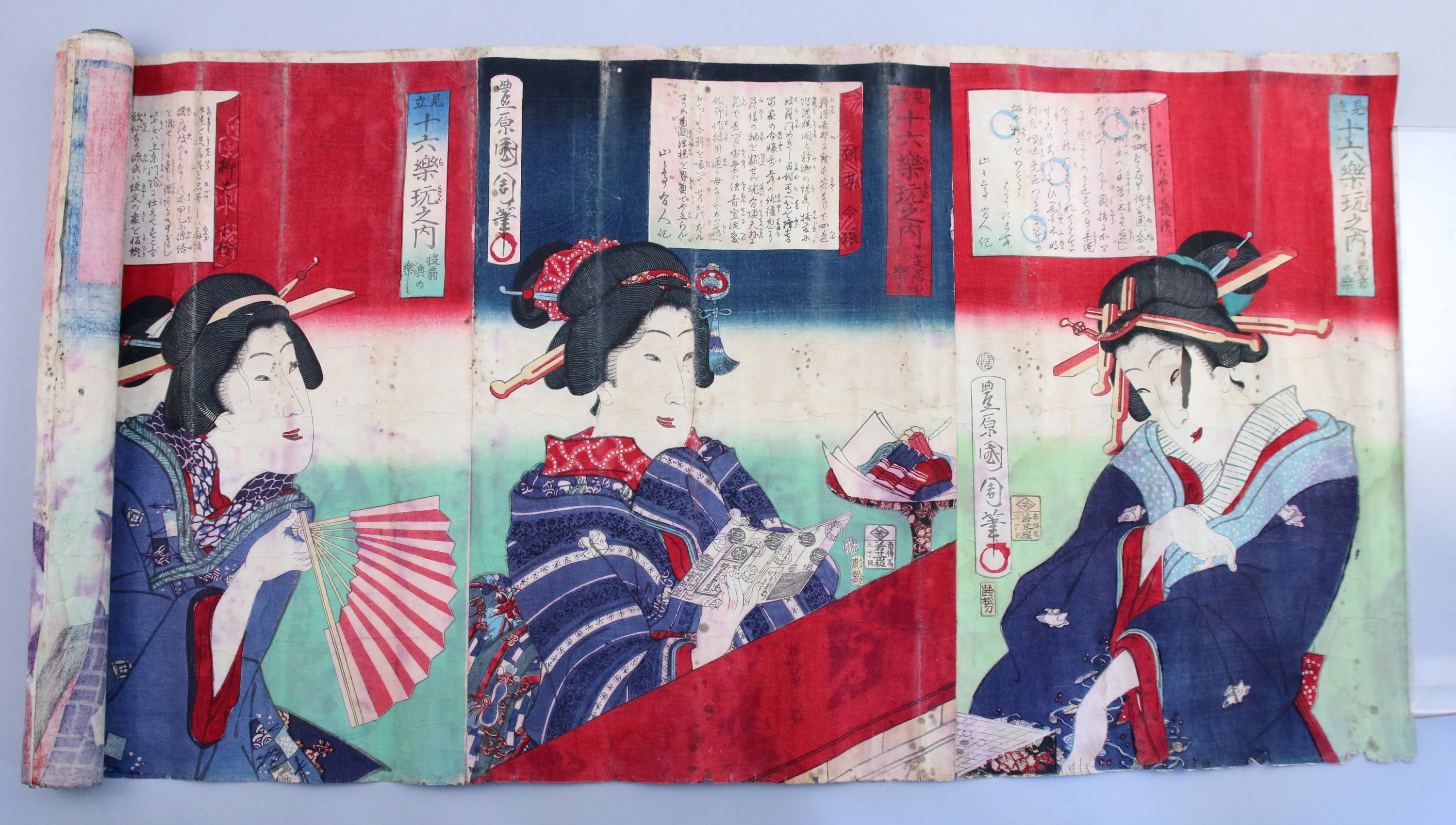 Haut. la plus grande 36, Long. 115 cm (importants manques, déchirures).