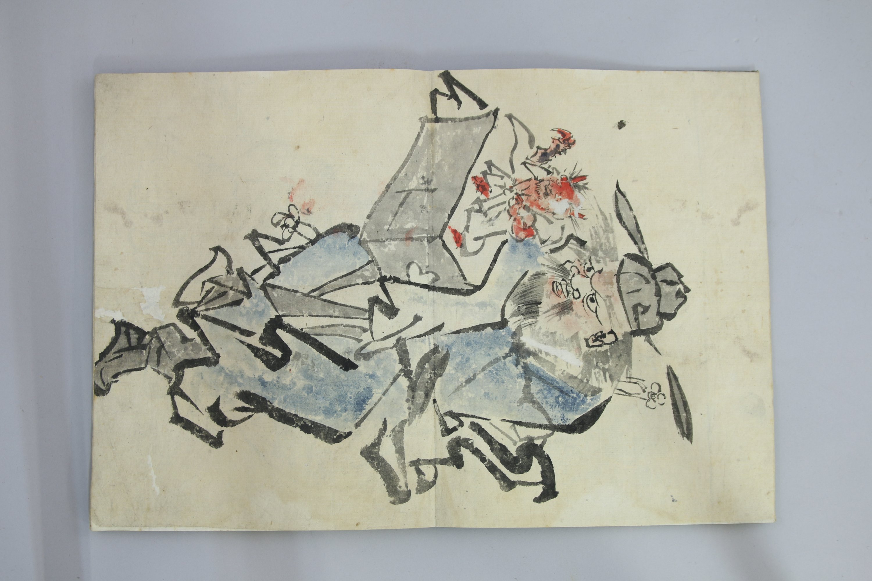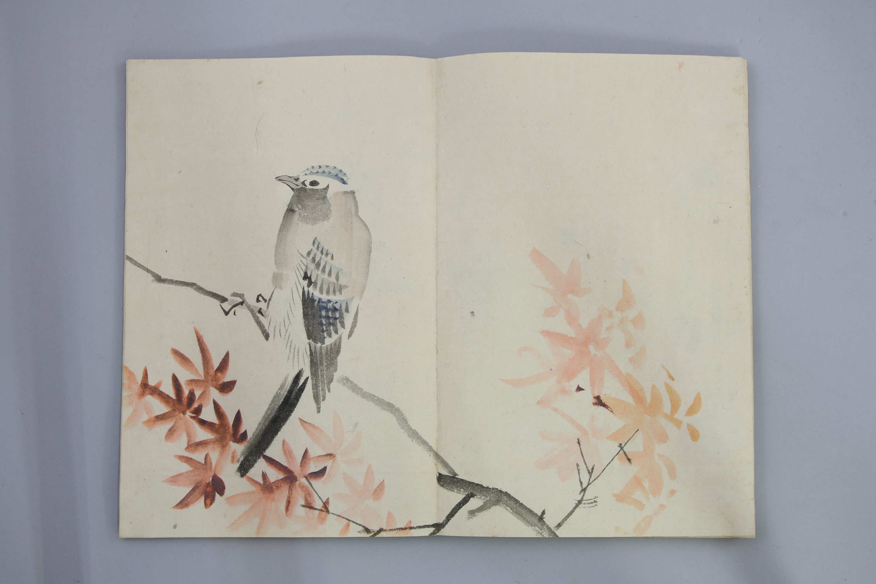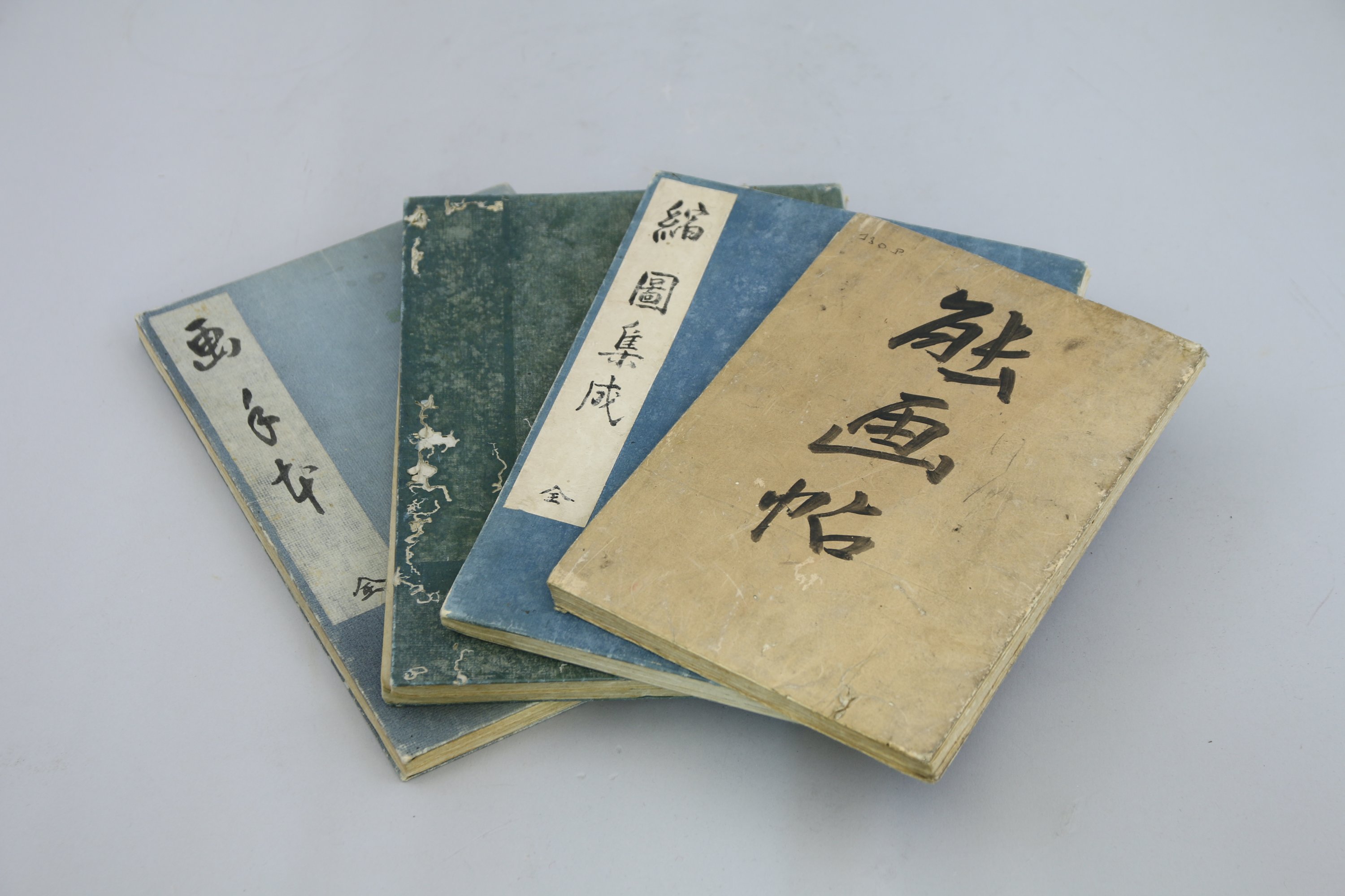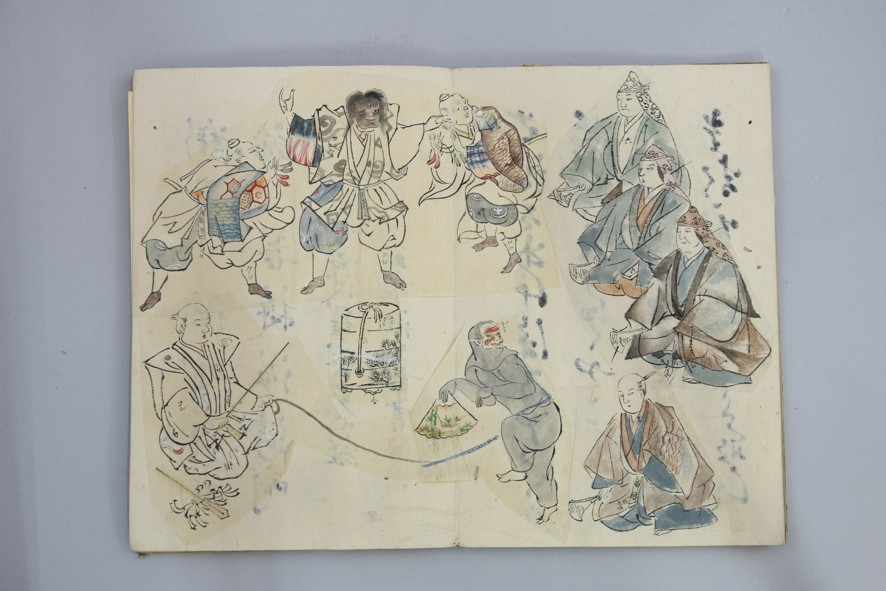 Quatre ALBUMS de DESSINS peints: fleurs et plantes, scènes de la vie quotidienne, scènes légendaires et personnages et costumes de théâtre nô.