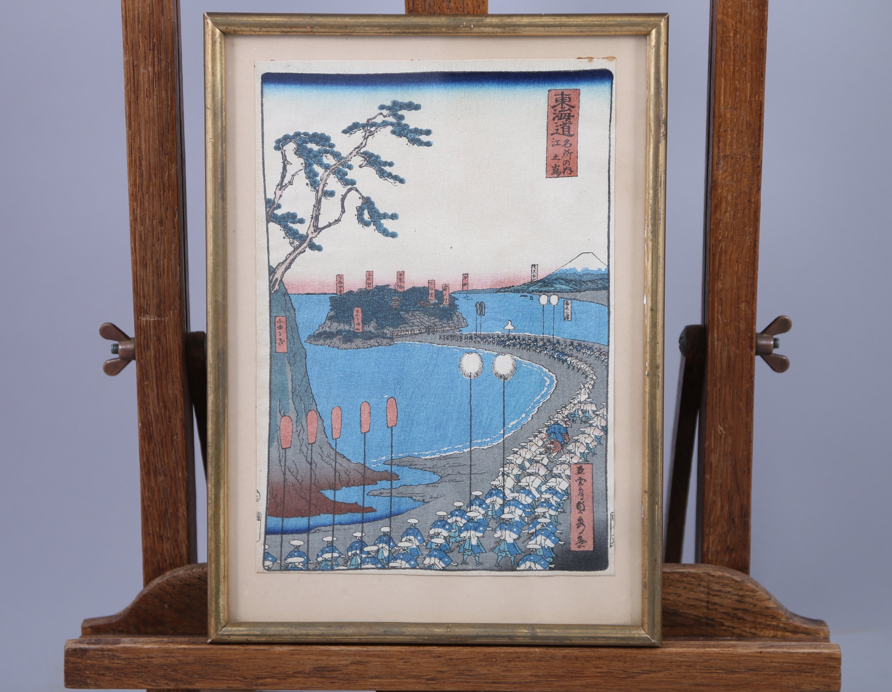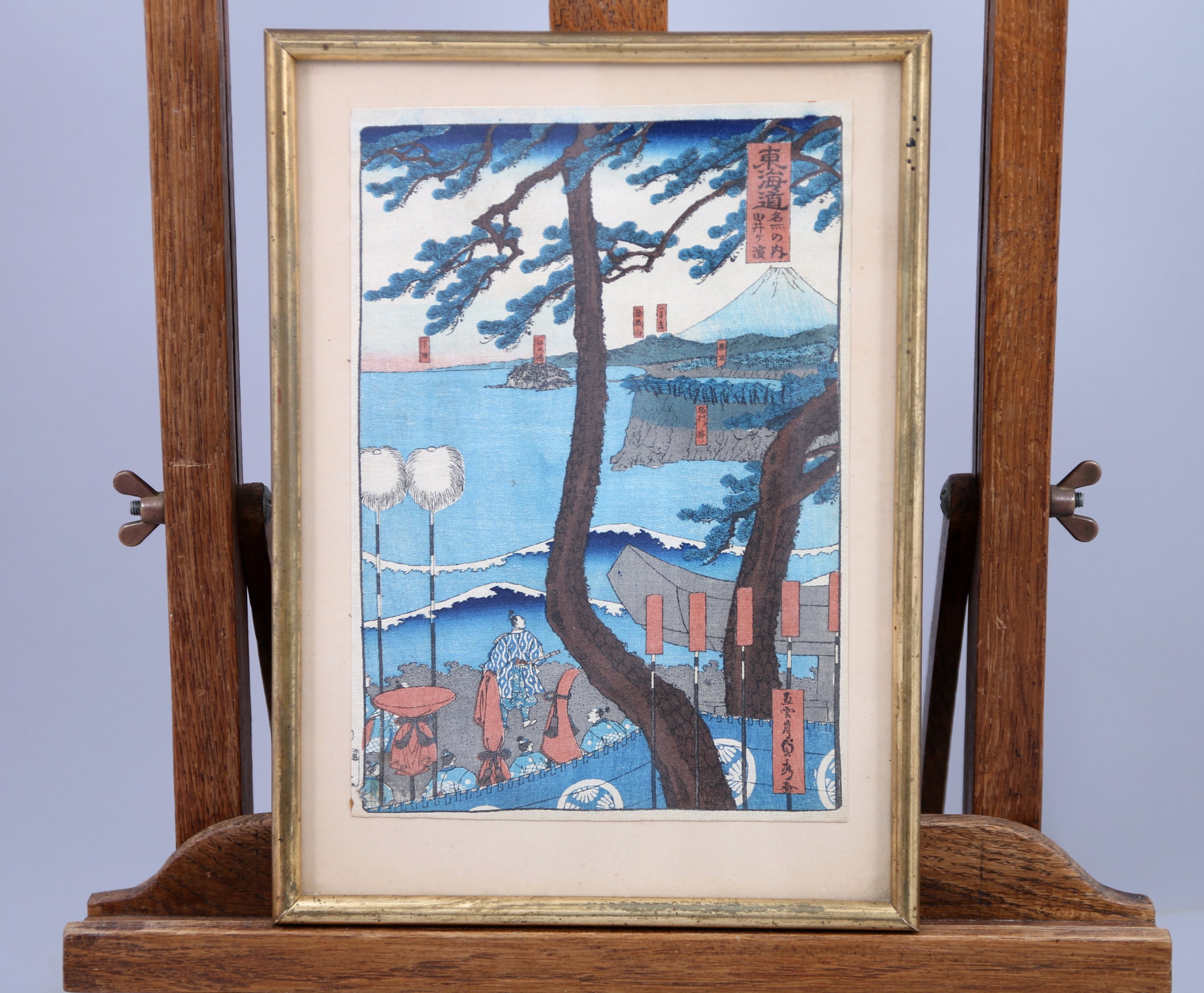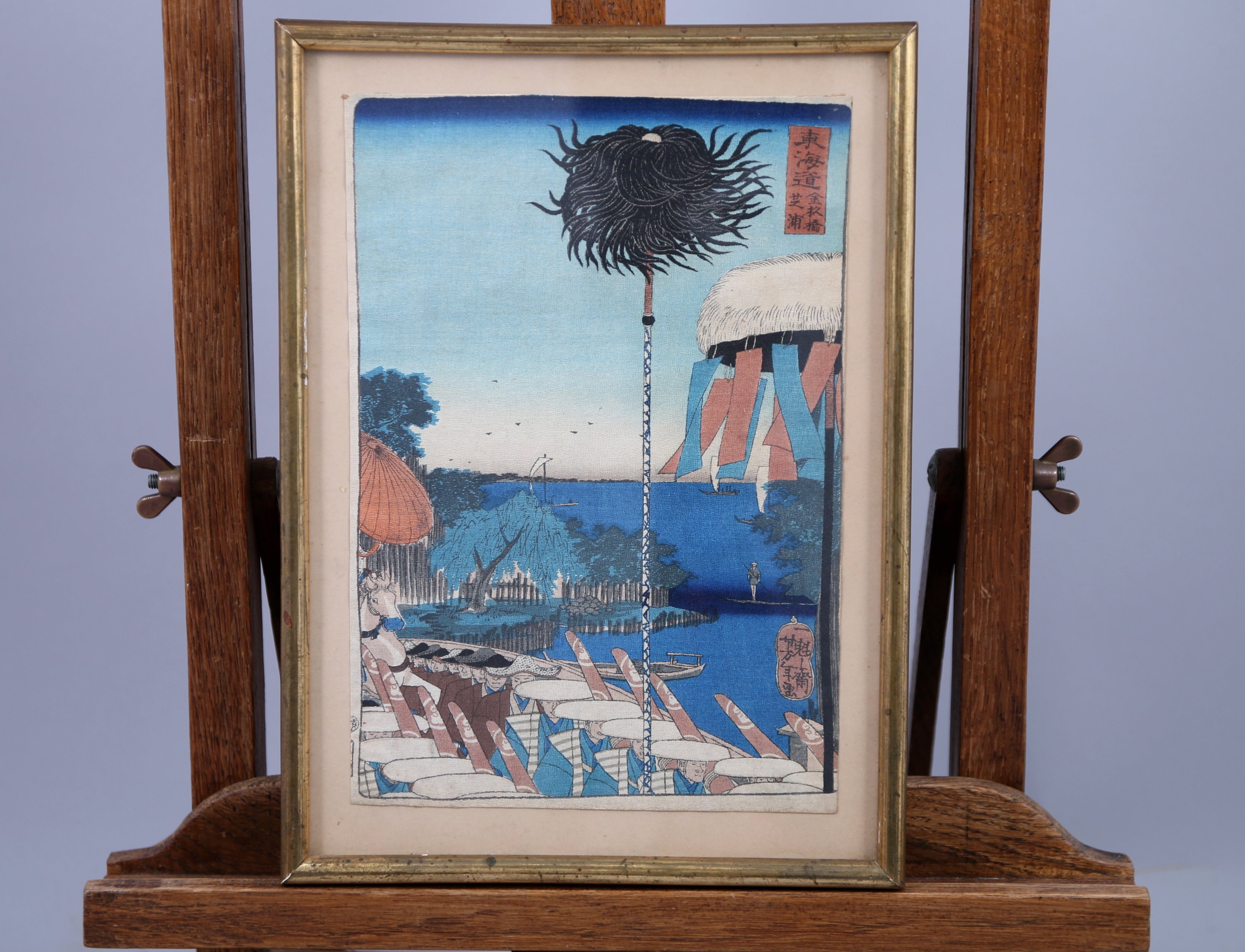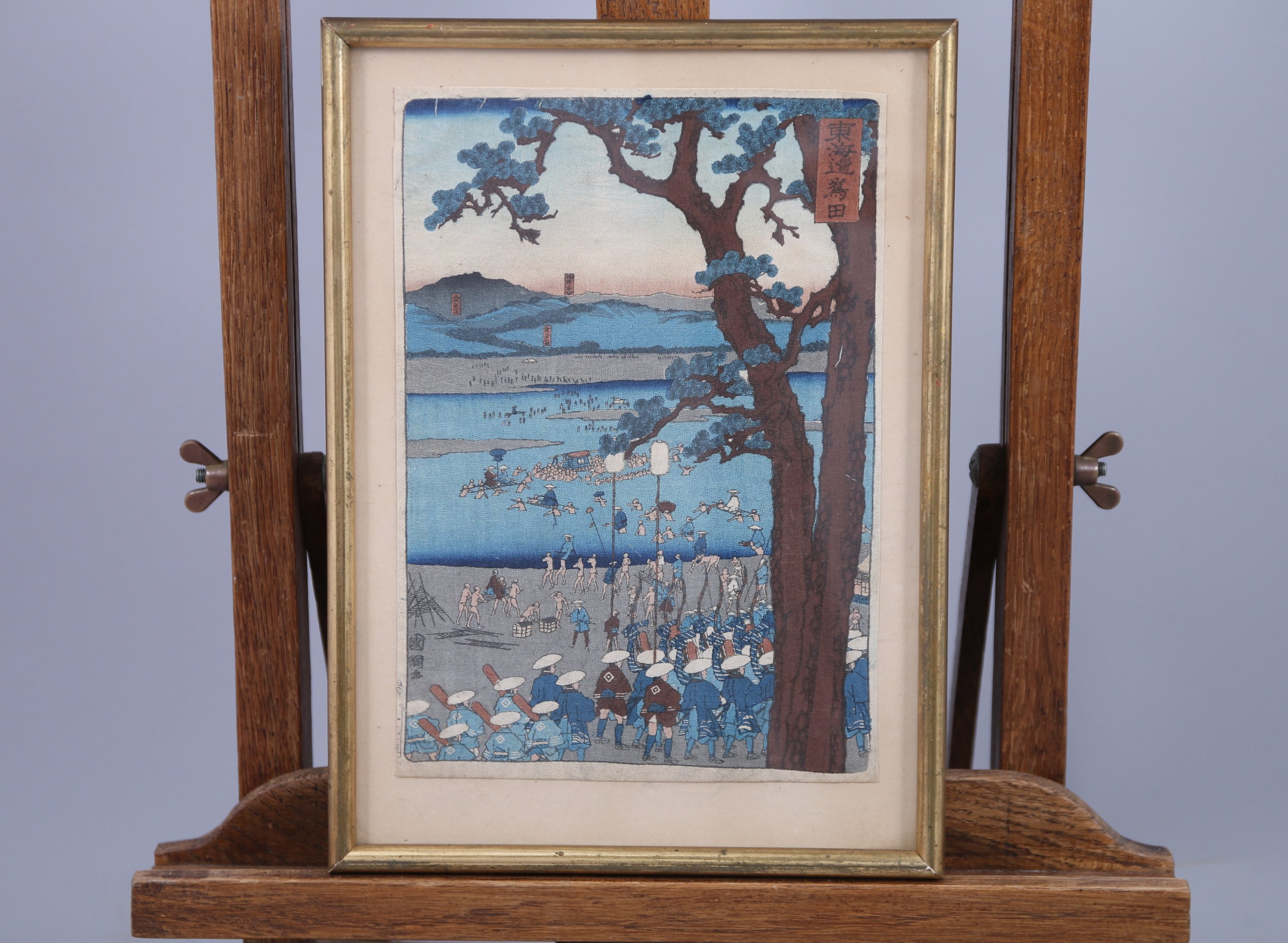 Quatre CHUBAN TATA-E sur papier crépon, reproduction d'après Sadahiro, tokaido, procession de daimyo.