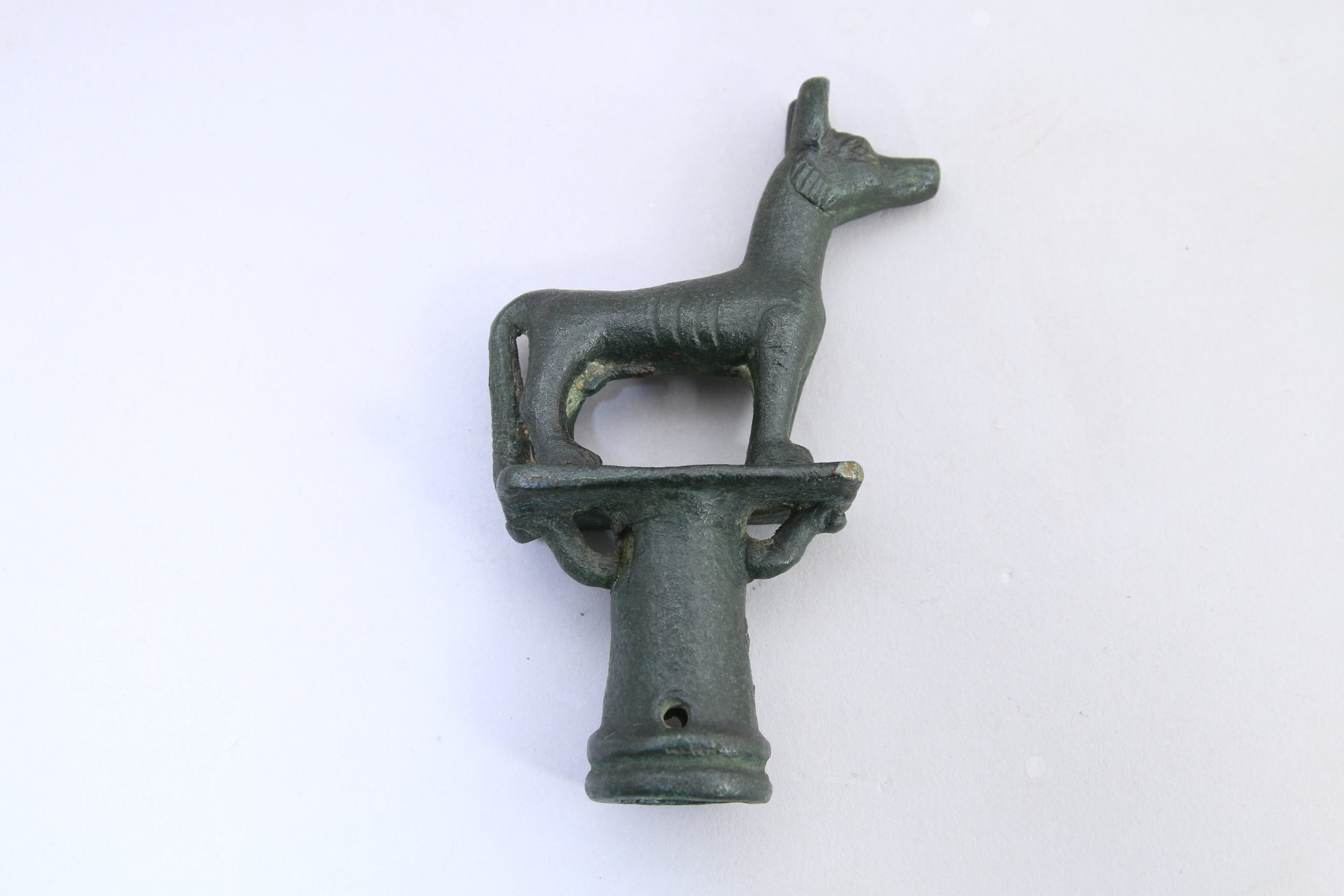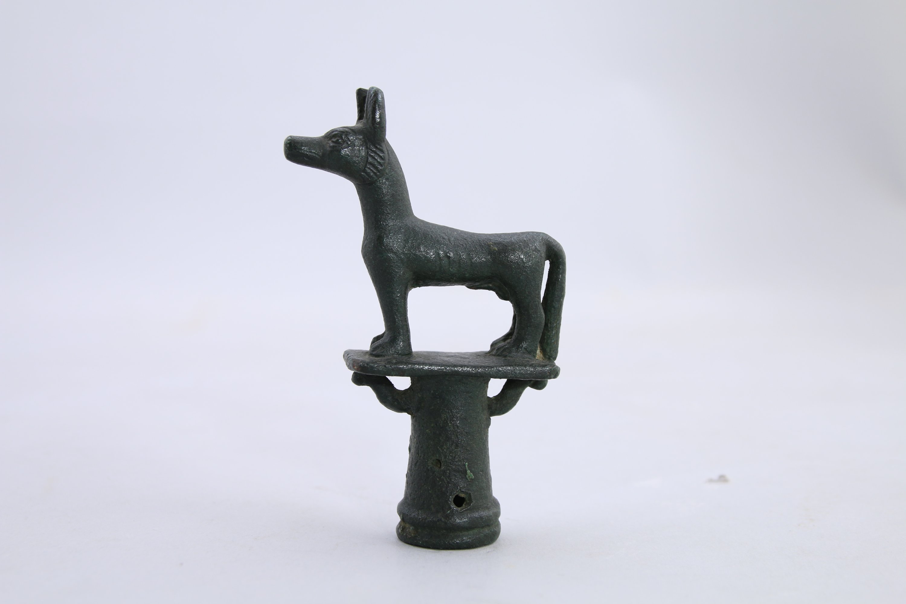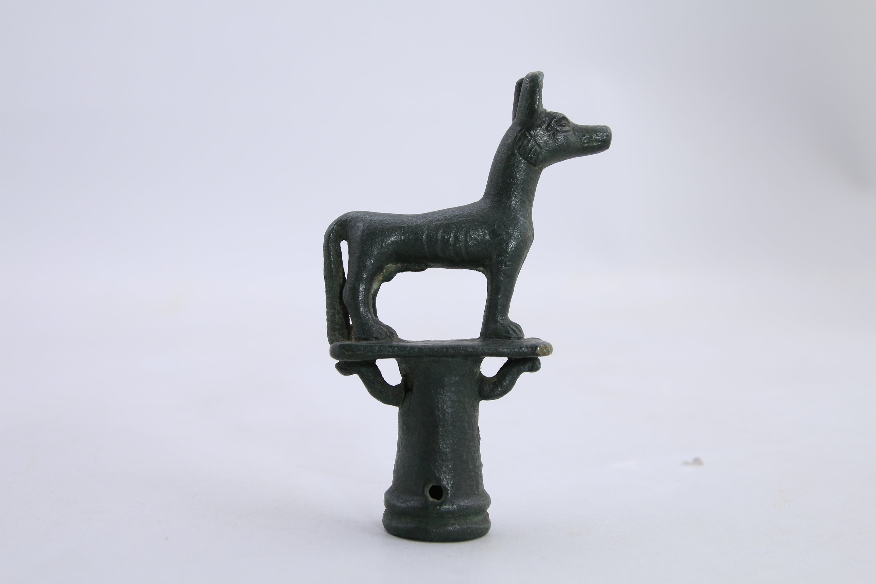 TÊTE d’ENSEIGNE en bronze figurant le dieu égyptien Oupouaout sous la forme d’un chien.
