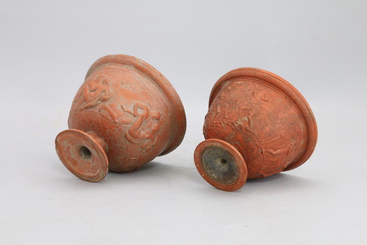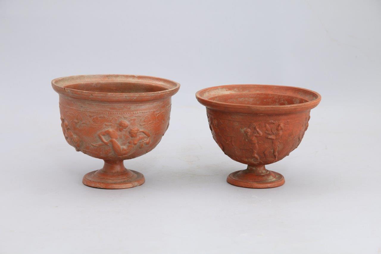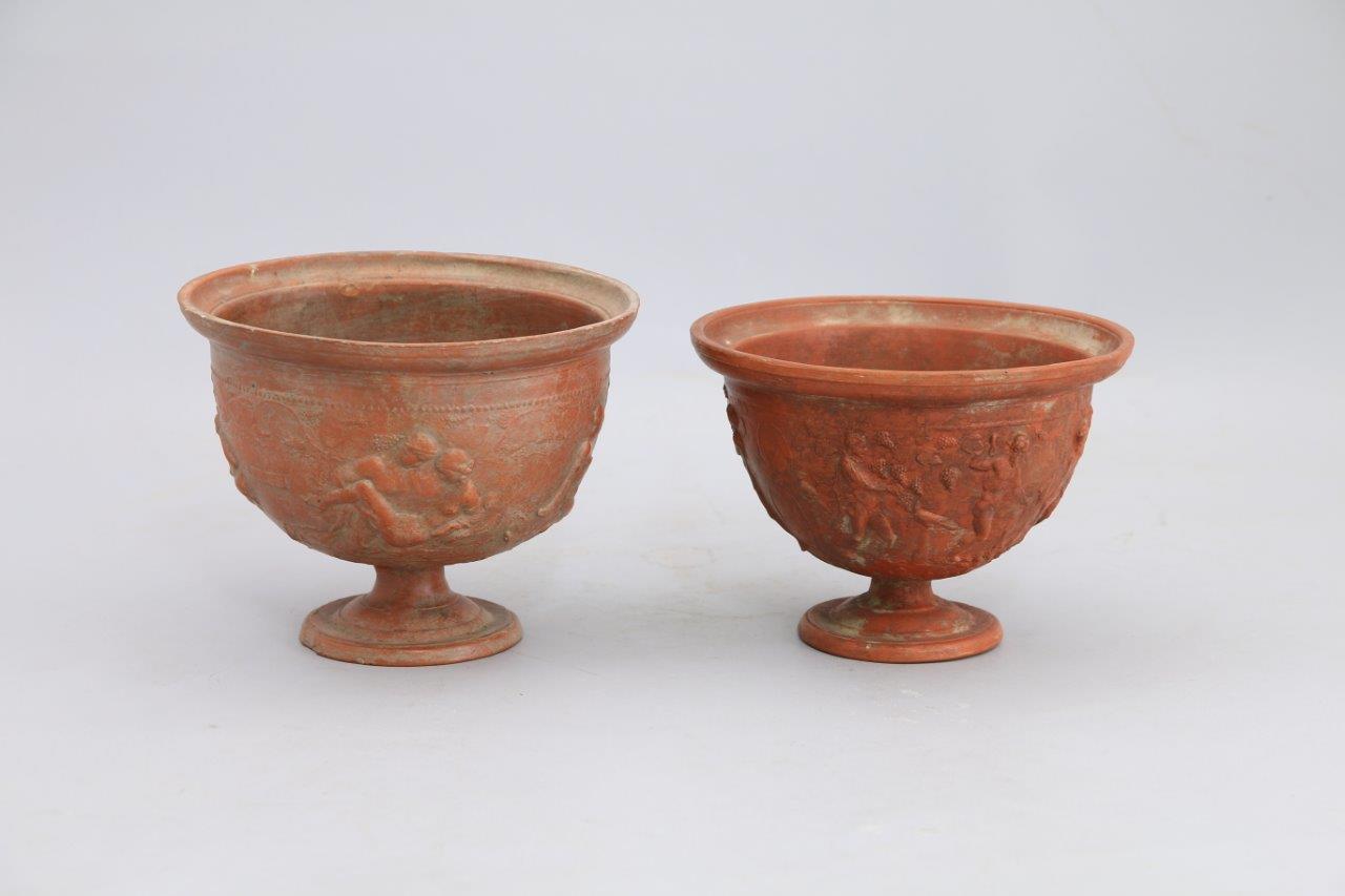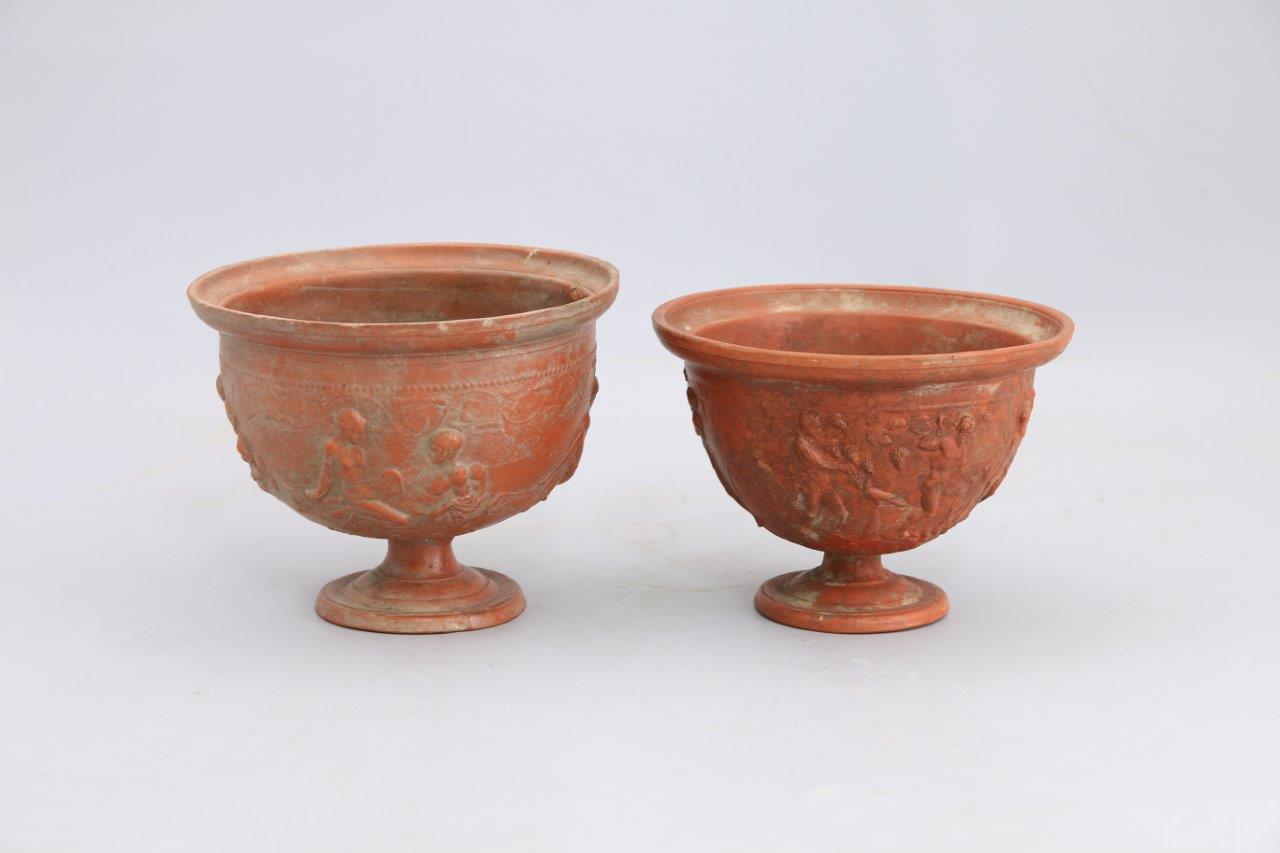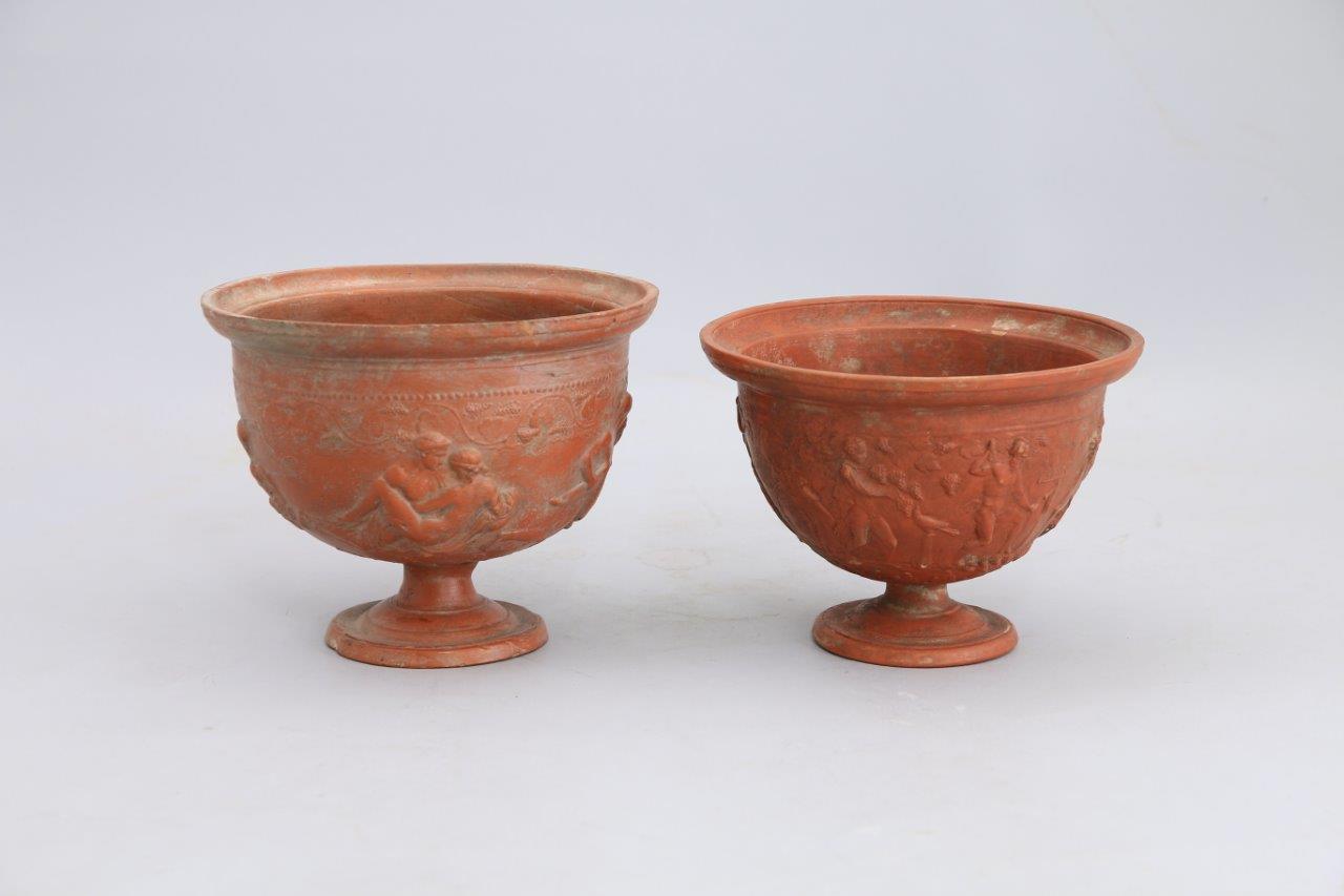 Deux COUPES, copies des sigillées romaines d'Arezzo. L'une à décor érotique, l'autre à décor bacchique, attribuées à l'atelier de Perennius.