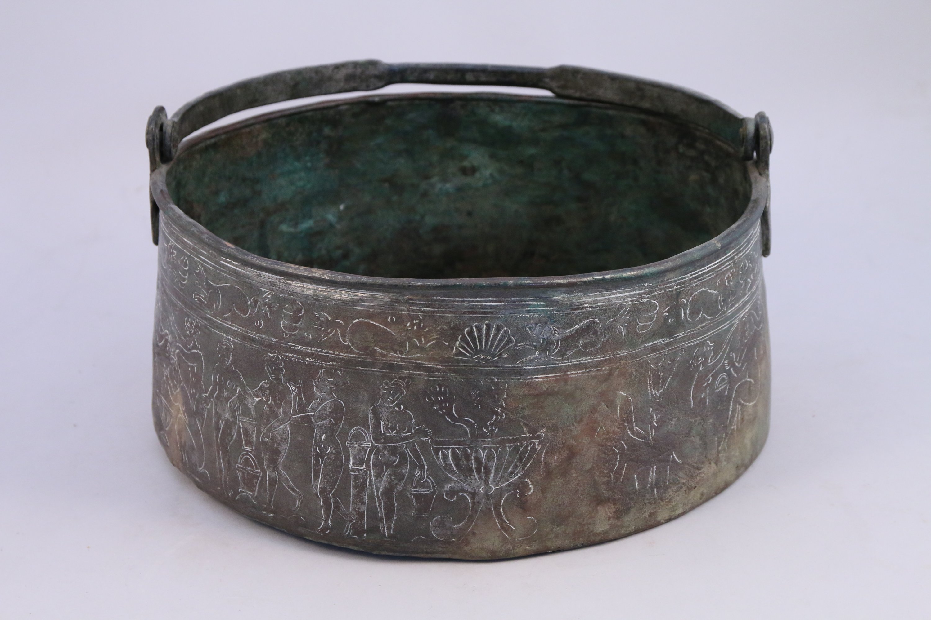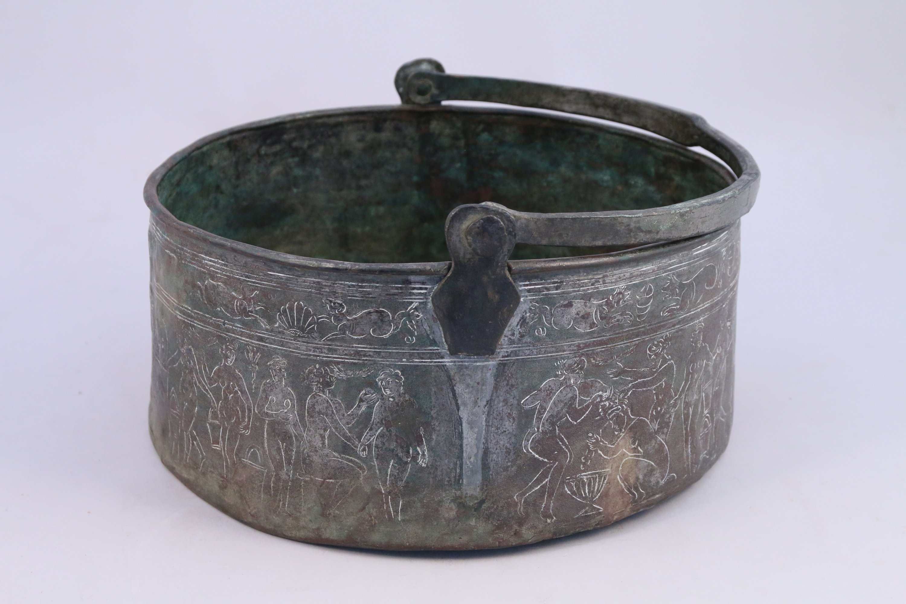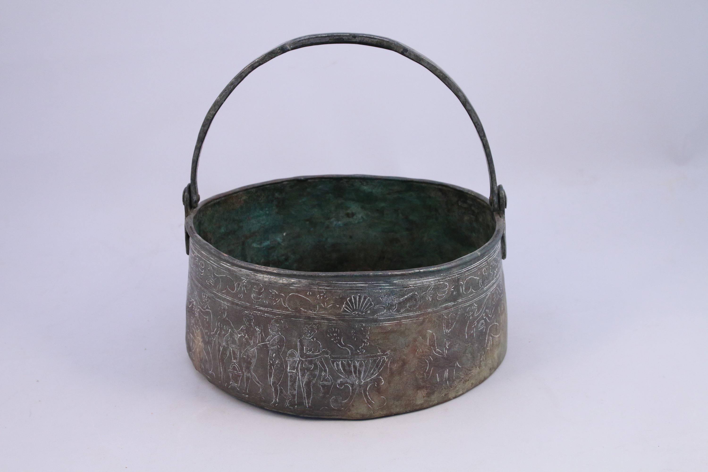 BASSINE en cuivre décorée dune frise de femmes nues dans le style antique.