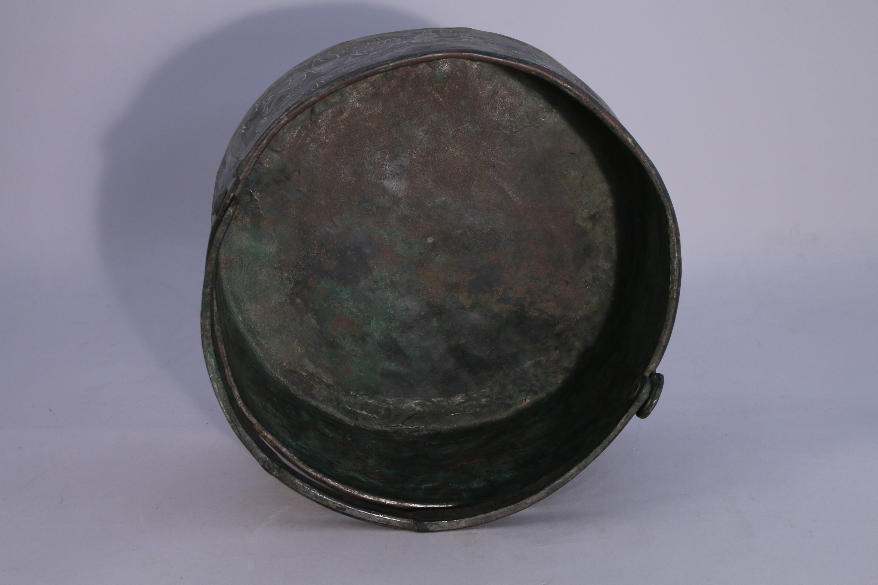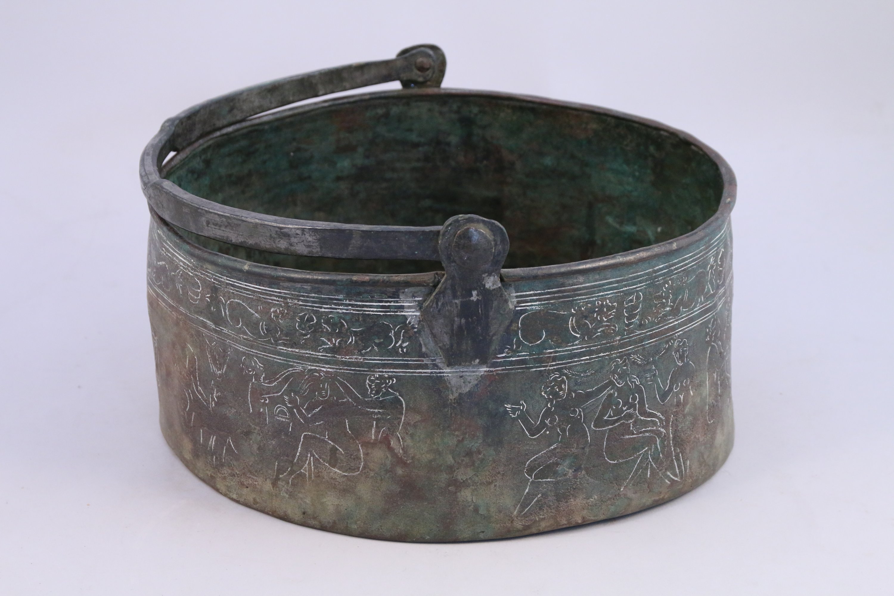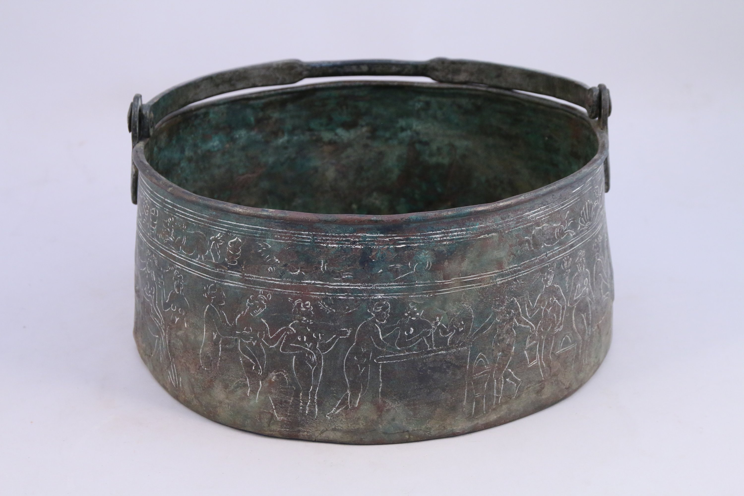BASSINE en cuivre décorée dune frise de femmes nues dans le style antique.