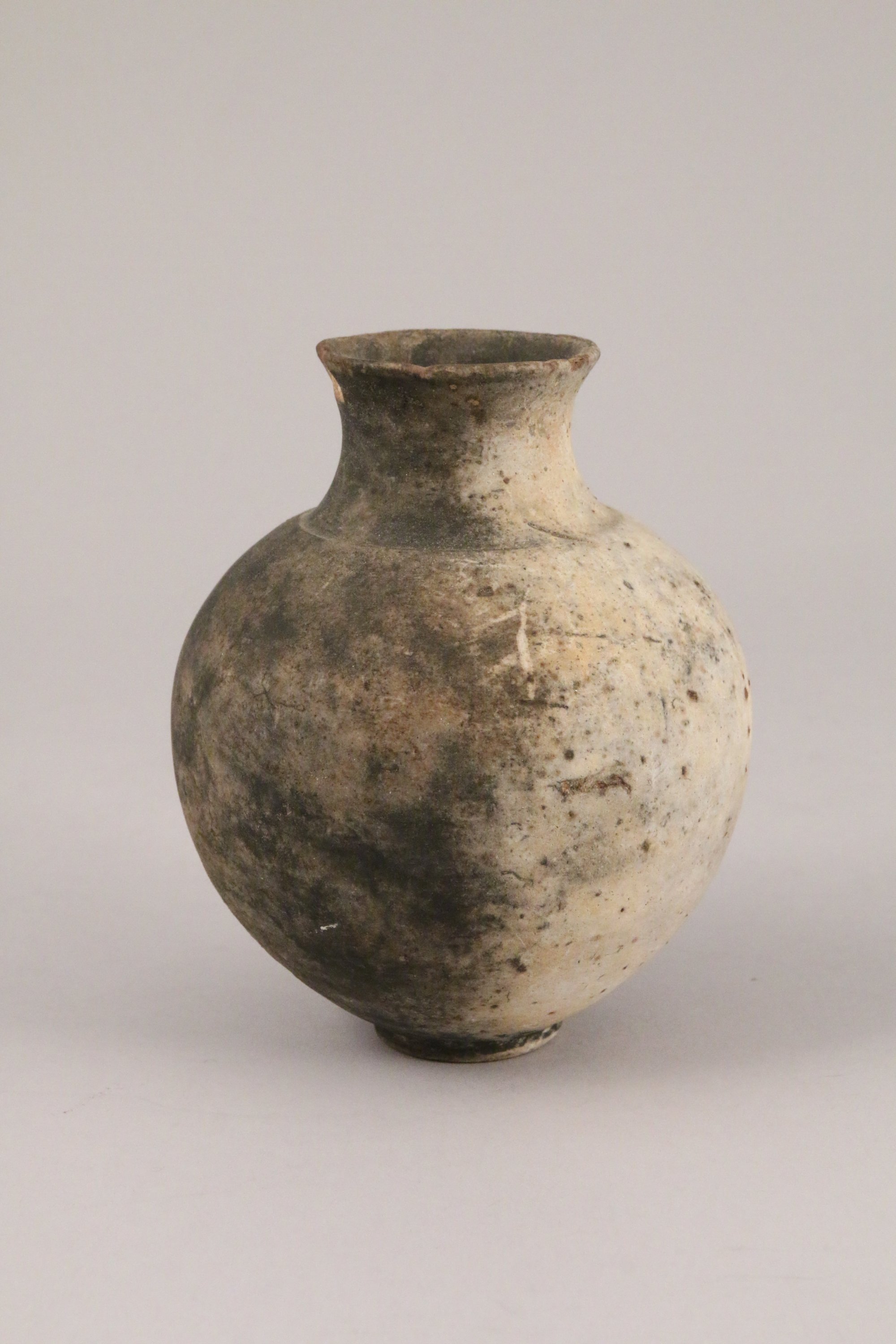 VASE à panse ronde en terre cuite grise découvert à...