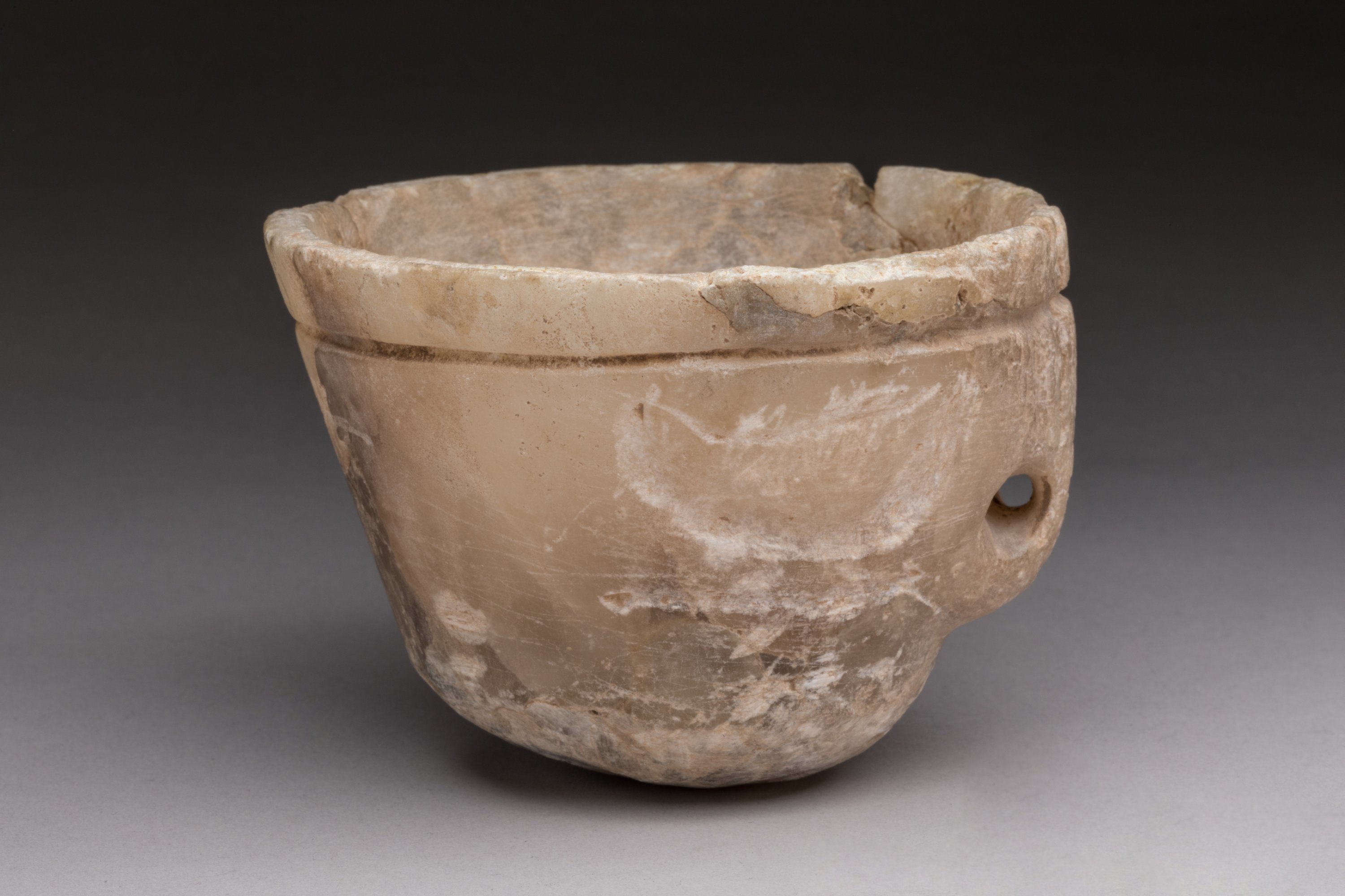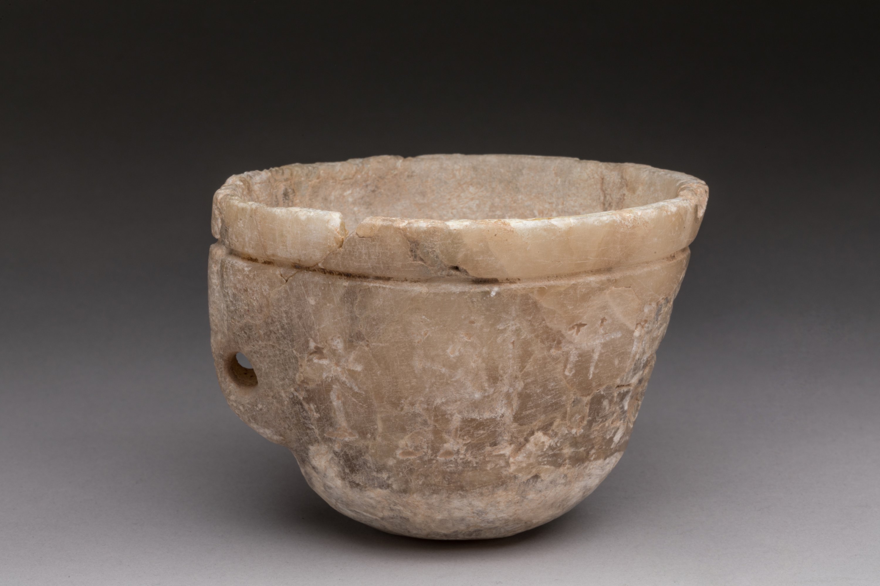 MÉSOPOTAMIE. VASE en albâtre avec une inscription cunéiforme et un...
