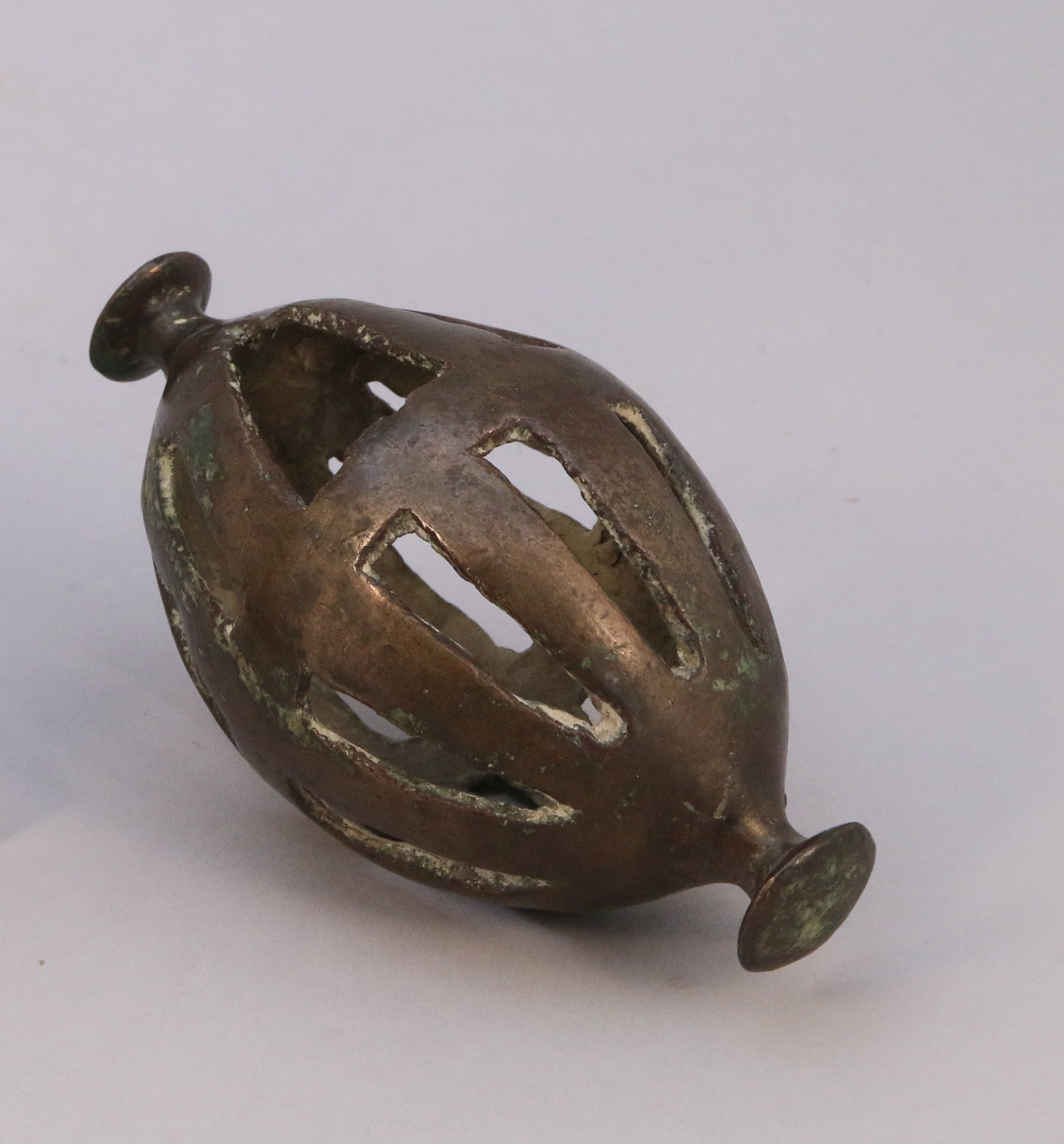 LURISTAN. VIII-VIIe s. av. J.-C.GRELOT en bronze ajouré.  Long....