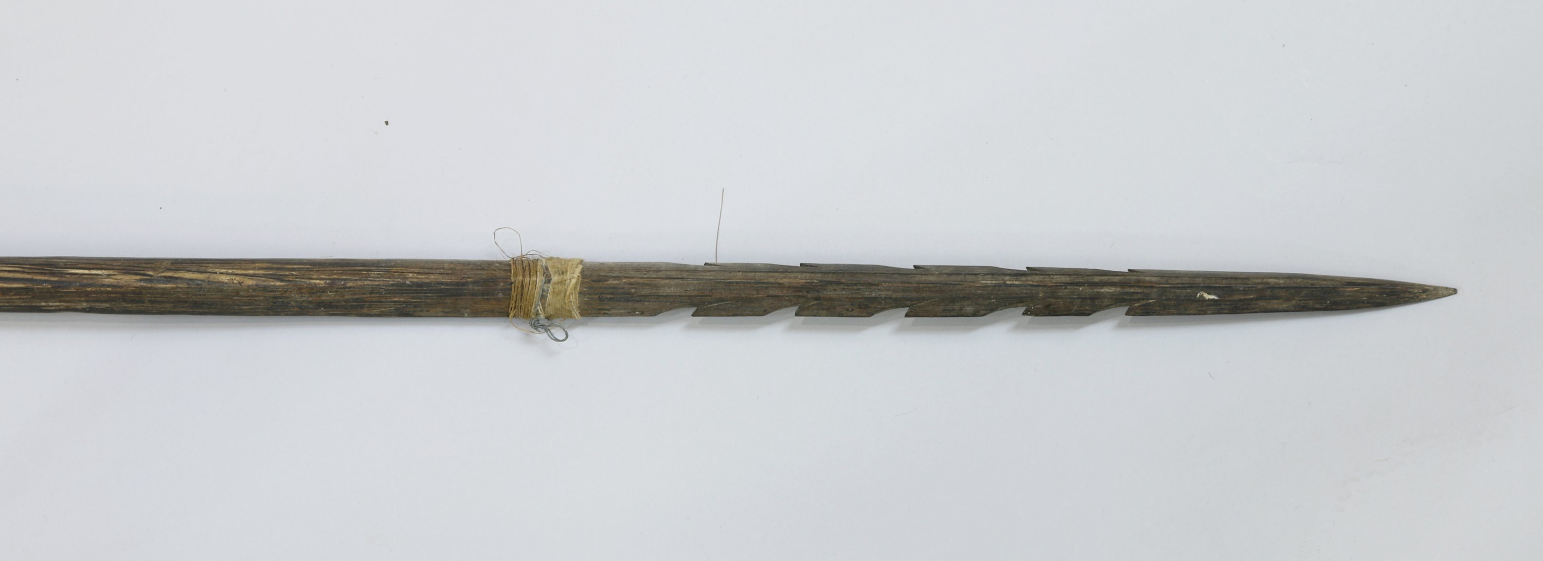 - Harpon monoxyle, pointe dentelée. Long. 239 cm.