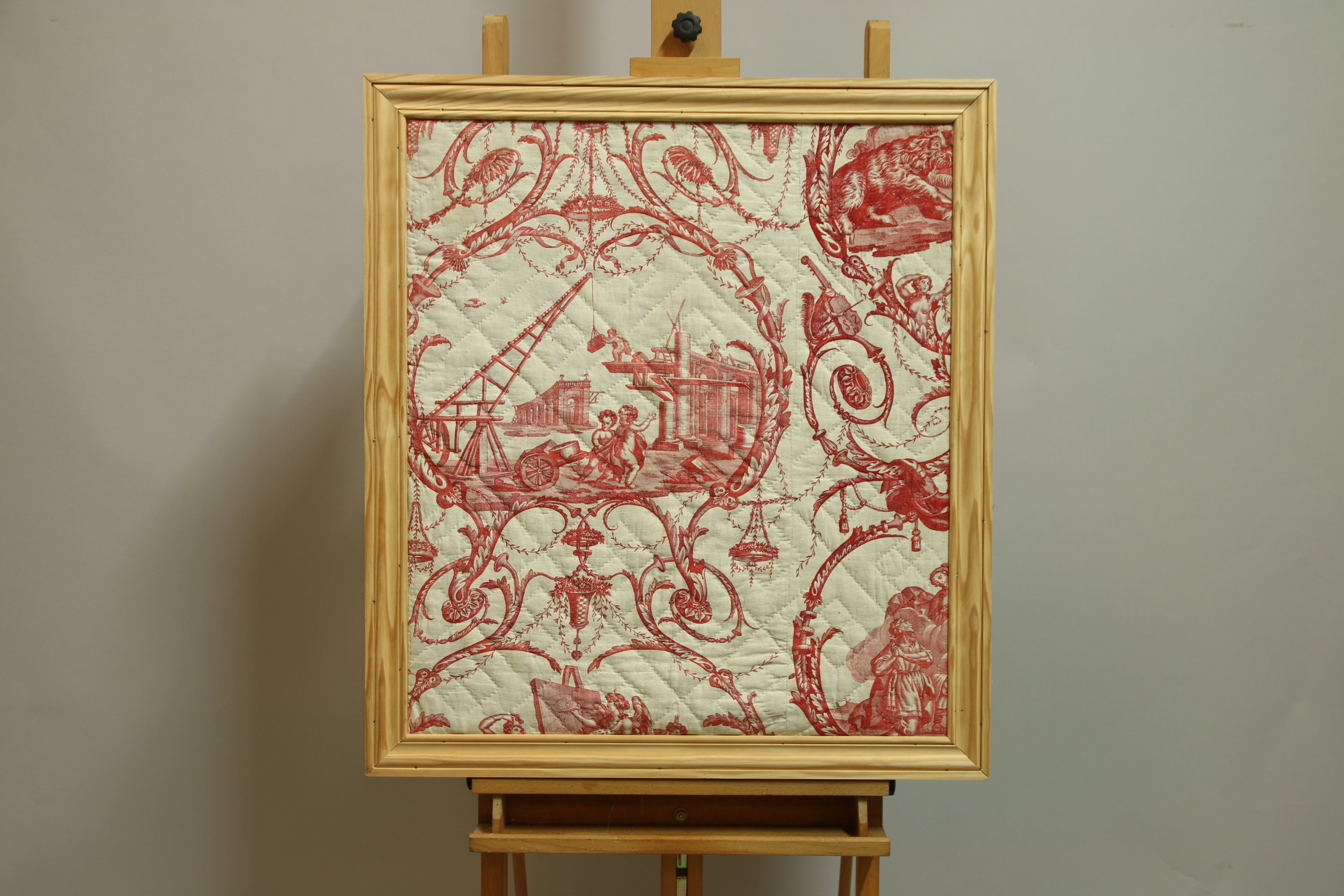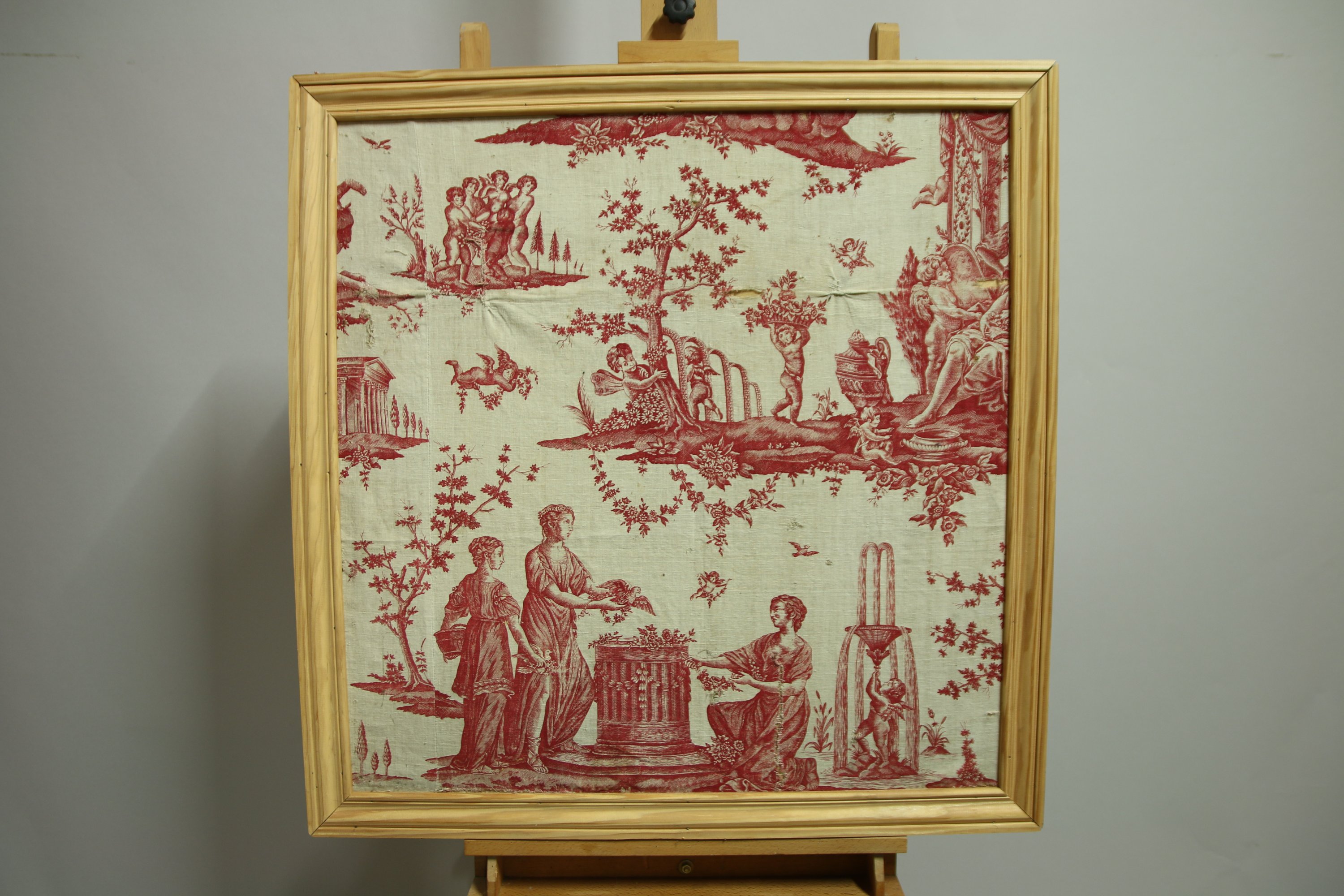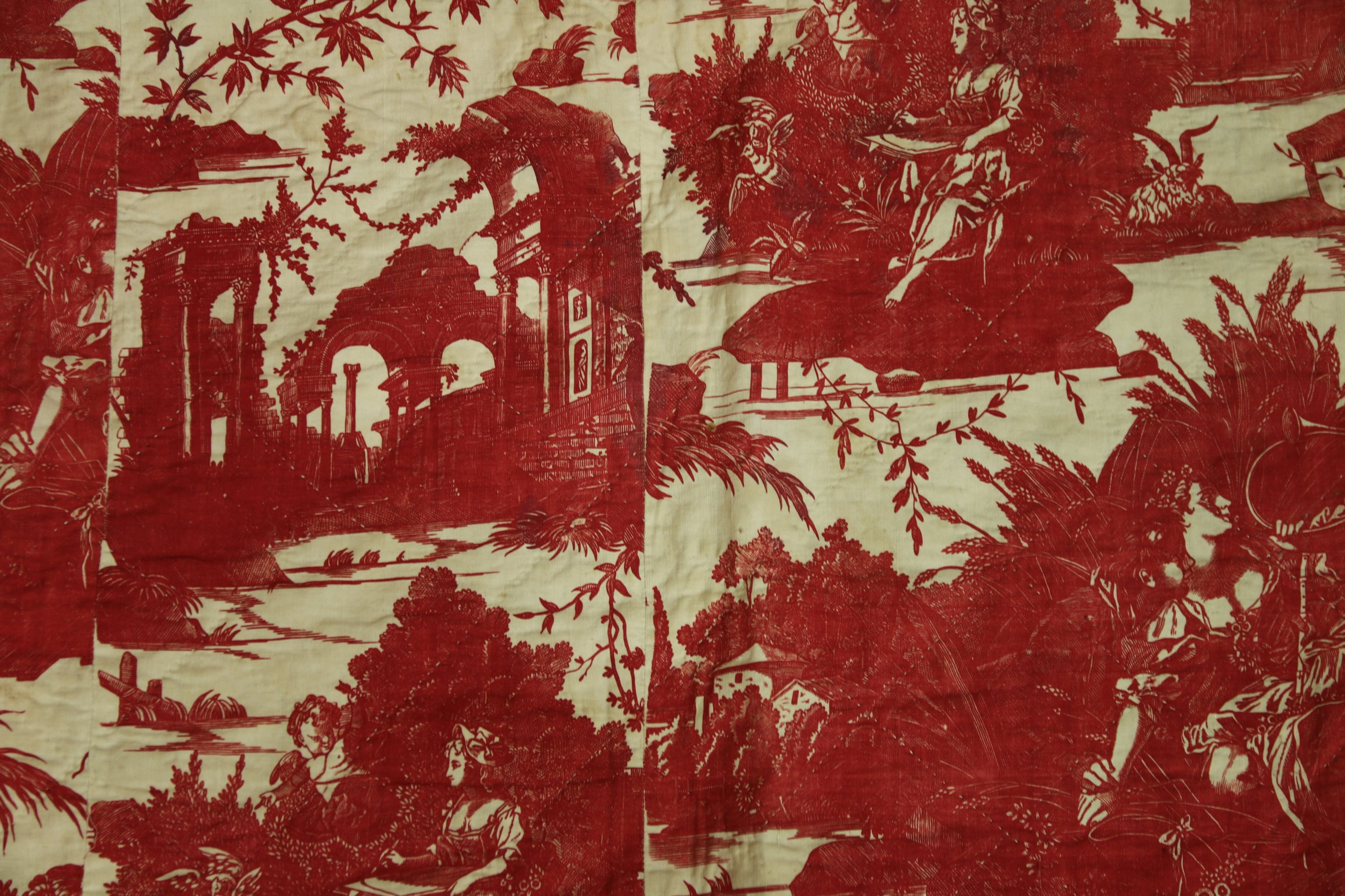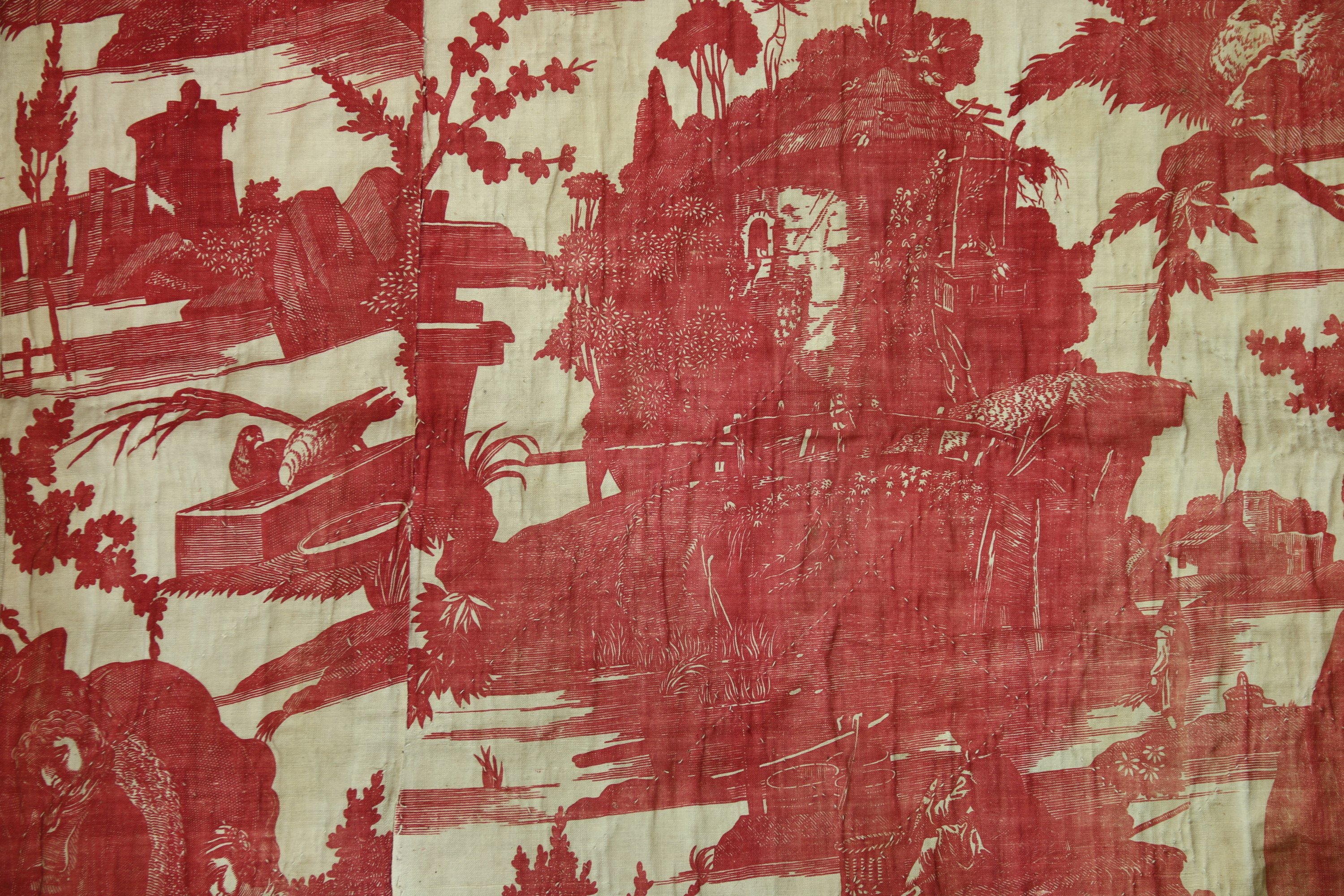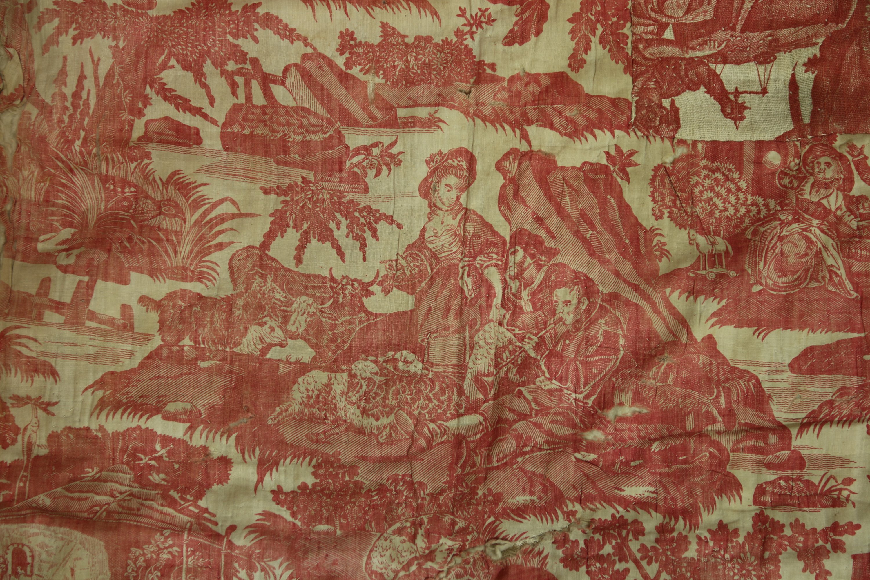 Réunion de toiles à personnages en coton imprimé de divers modèles imprimés à la planche en rouge, XVIII et XIXème siècle.