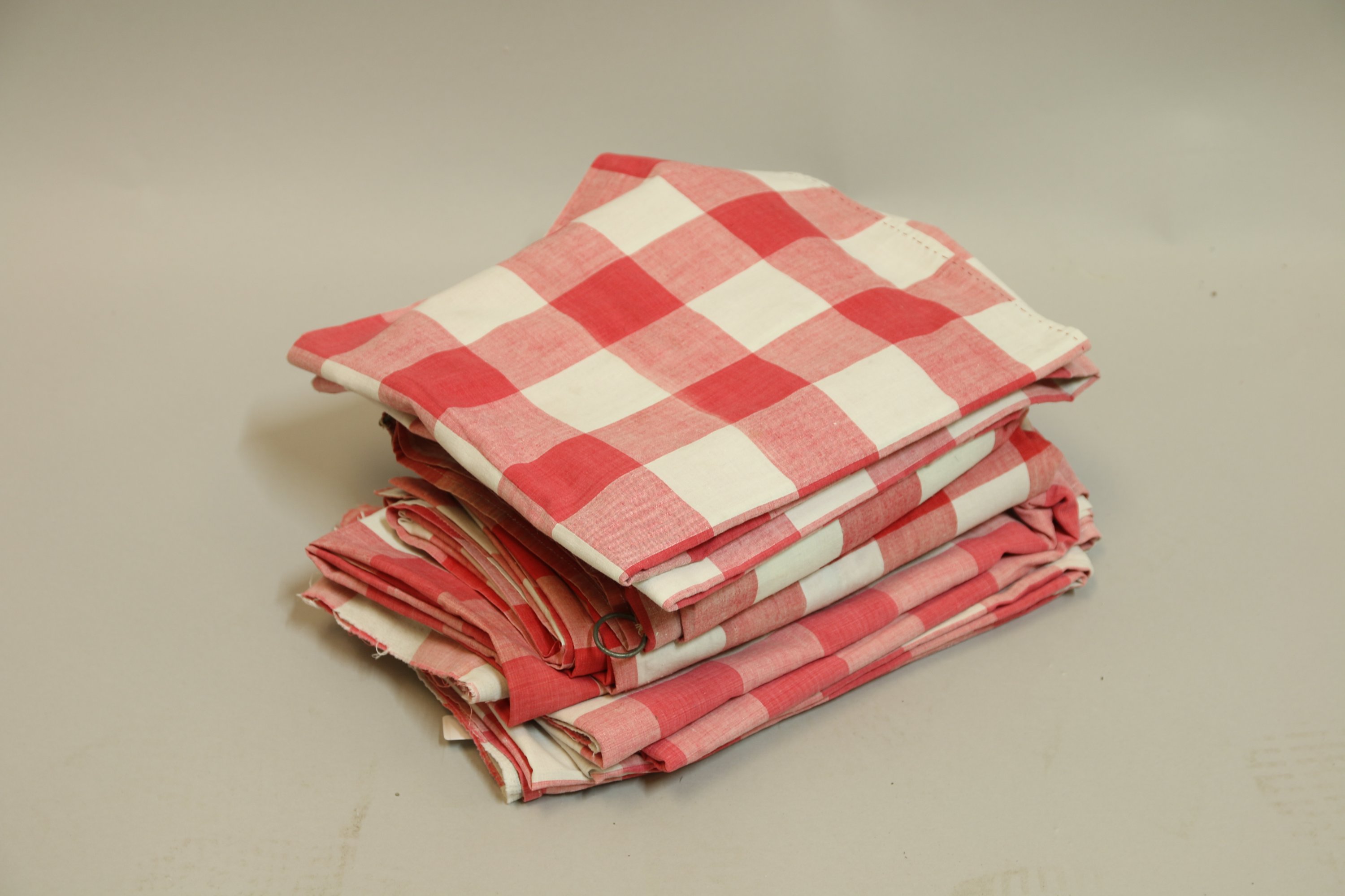 Rideaux et éléments en Siamoise, Normandie, fin XVIIIème - début XIXème siècle, toile à carreaux rouge, pour un lit.