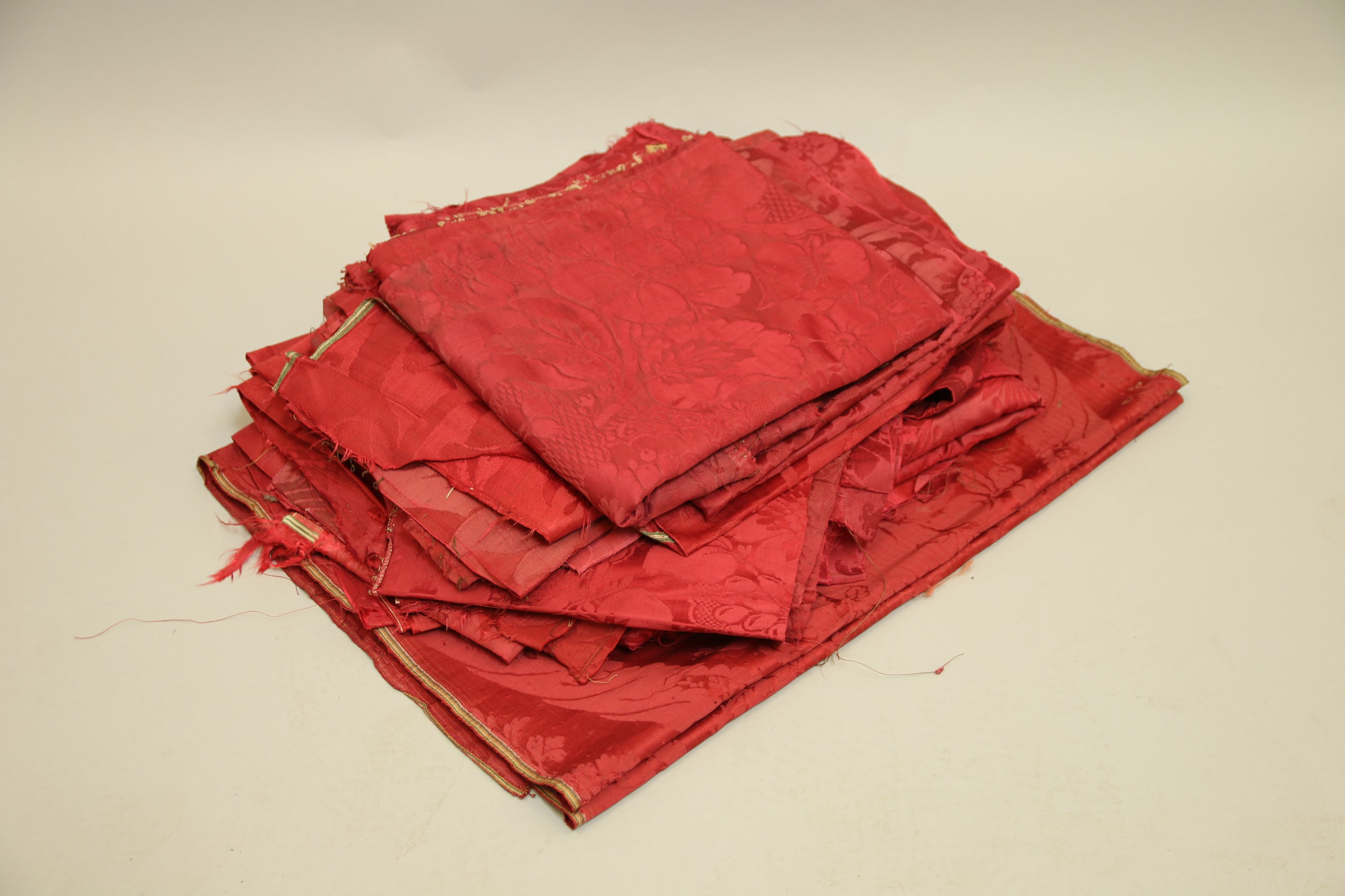Réunion de fragments de damas rouge,  XVIIIème siècleUne dizaine...