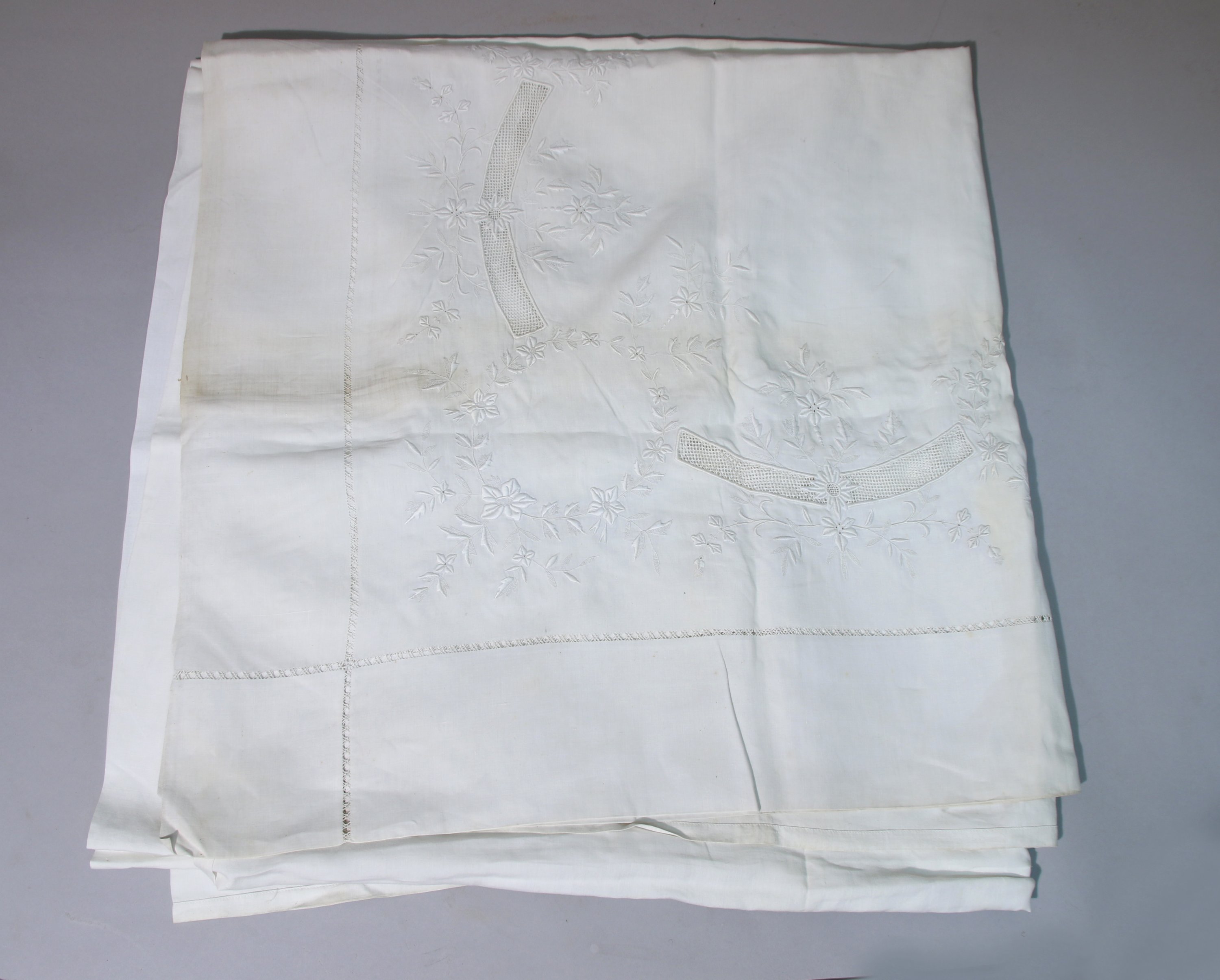 Drap en fil, ajouré et brodé de fleurs et couronnes...