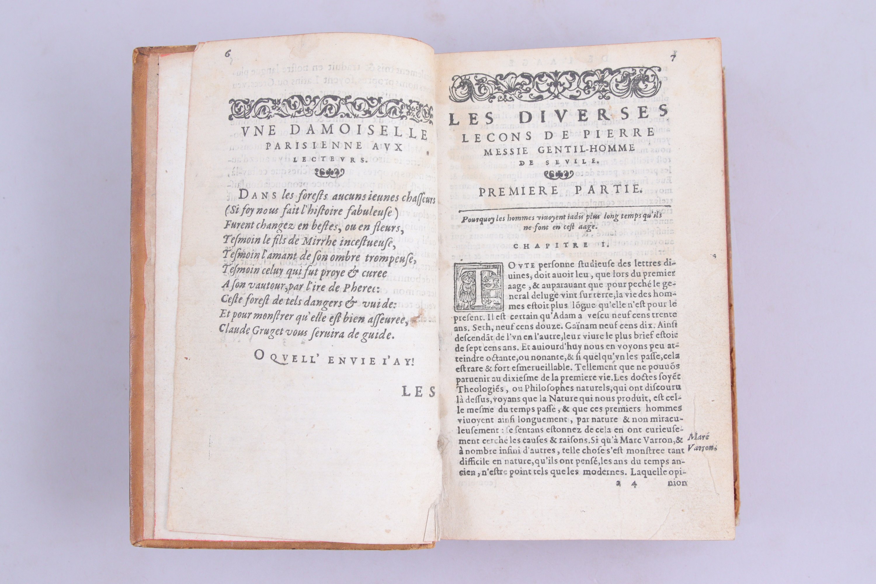 - Pierre Messie: [ Les diverses leçons de Pierre Messie, gentilhomme de Séville, avec trois dialogues dudict auteur, contenans variables et mémorables histoires mises en françois par Claude Gruget. Lyon, Barthélémy Honorat, 1580 ].