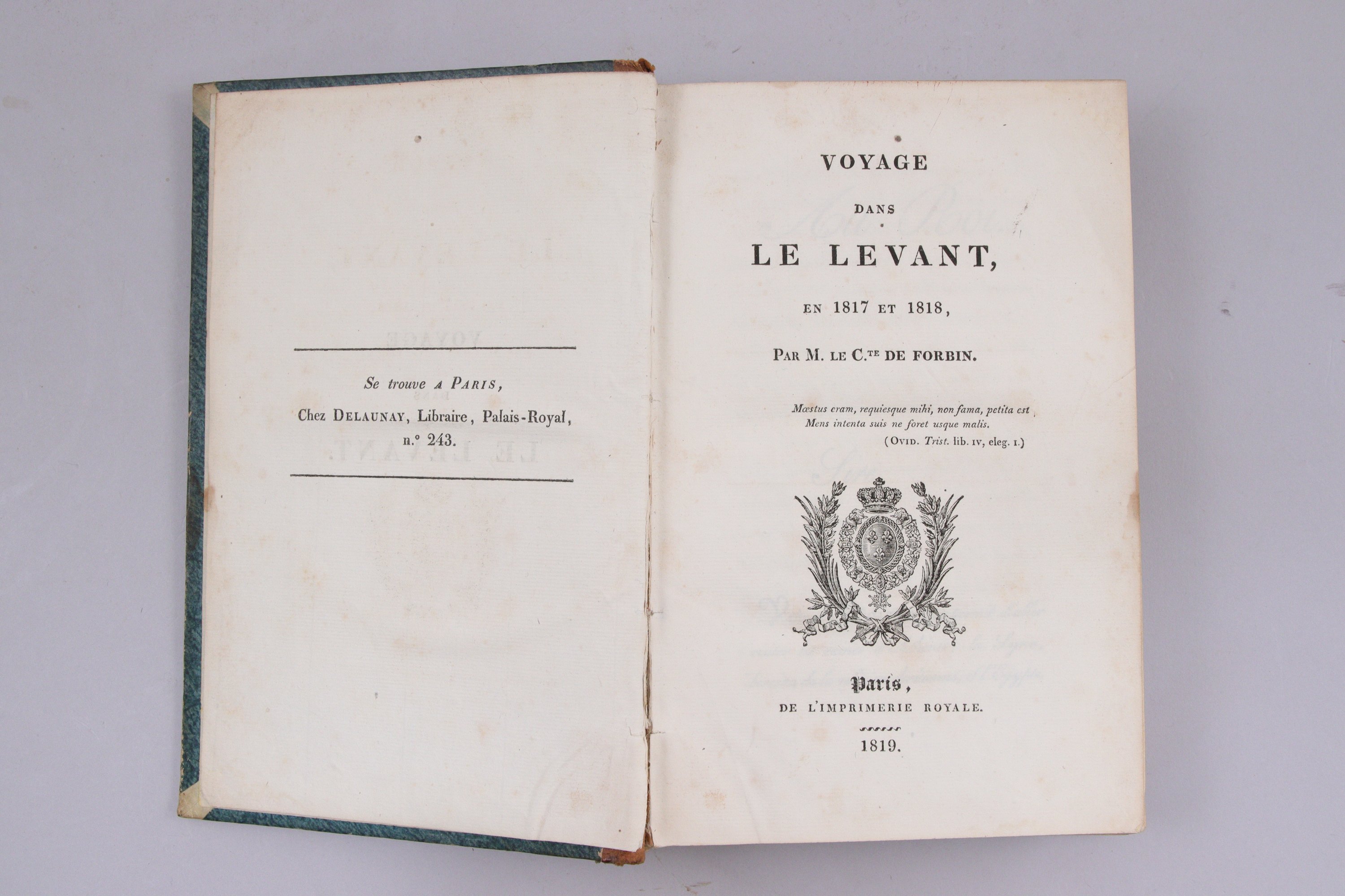 Volume de texte seul de l'édition originale de ce voyage en Grèce, Turquie, Palestine, Syrie et Egypte accompli par le Comte de Forbin, directeur du Louvre, dont il rapporta de nombreuses antiquités.
