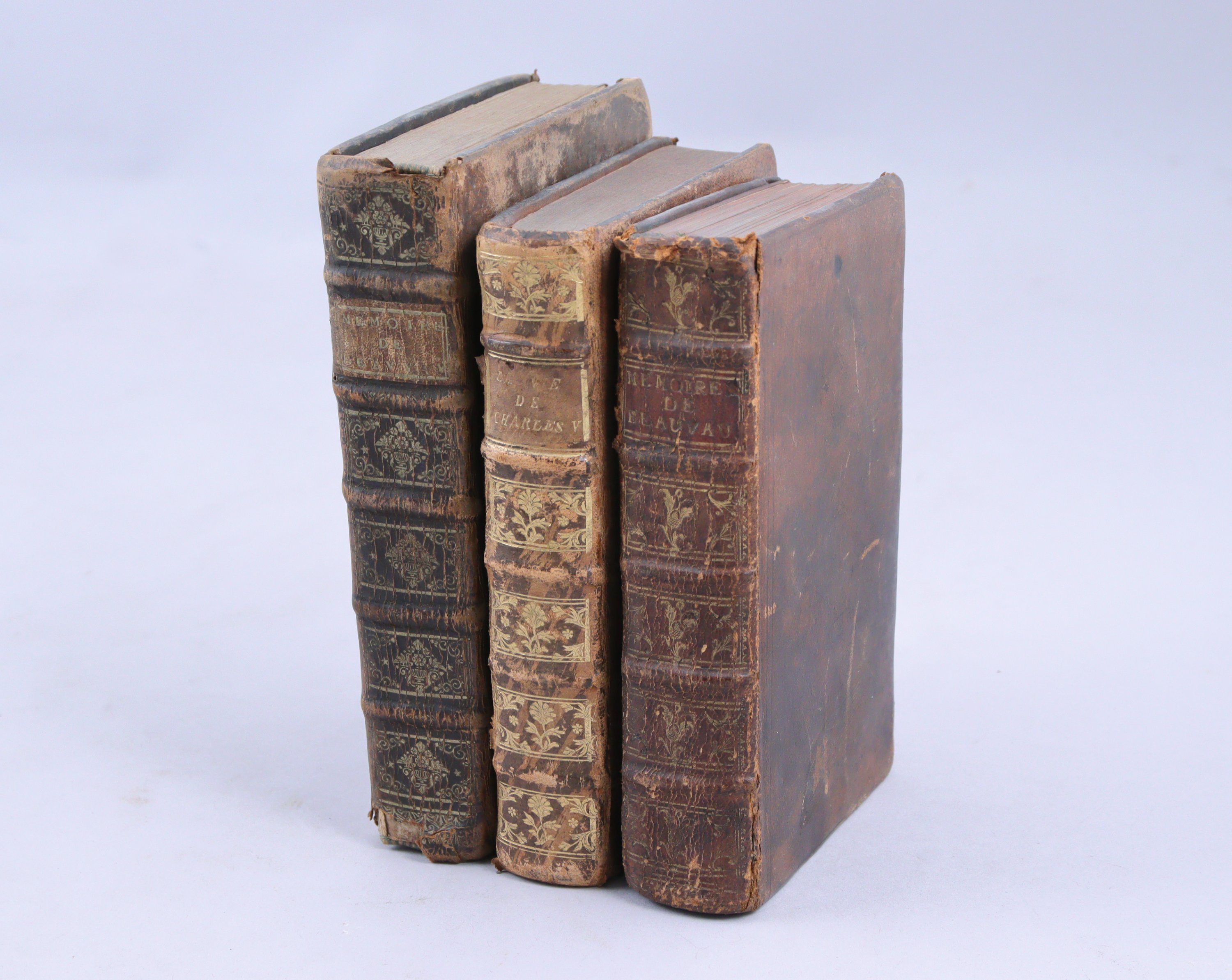 Réunion de 3 ouvrages in-12, veau du temps. (Reliures frottées, coiffes endommagées):