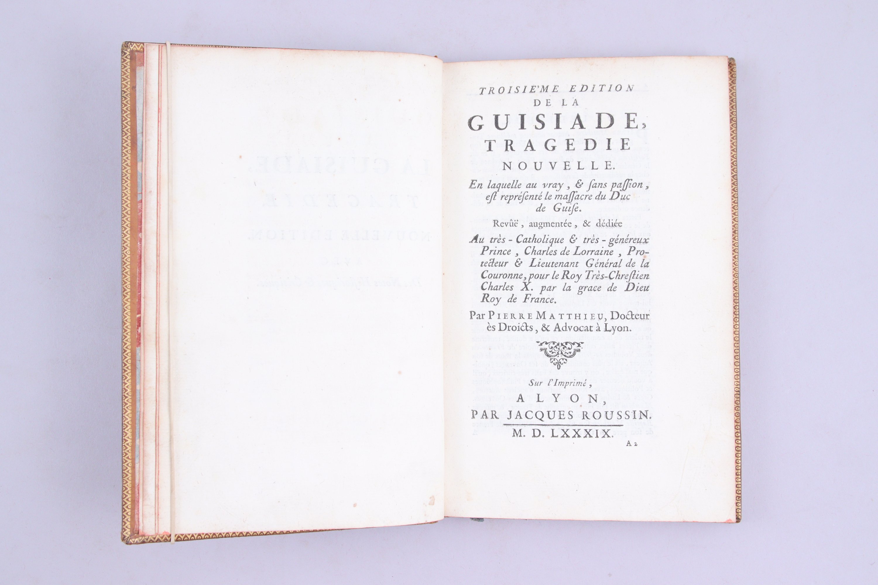 Troisième édition de la Guisiade, tragédie nouvelle, en laquelle, au vray et sans passion, est représenté le massacre du Duc de Guise..Par Pierre Matthieu, docteur ès droicts, et advocat à Lyon.