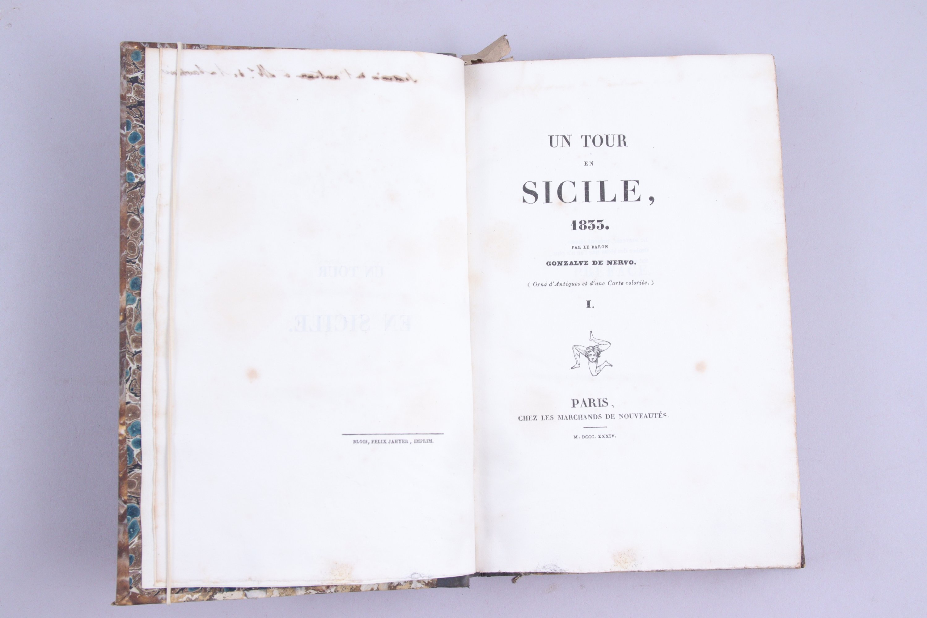 - Gonzalve de Nervo: Un tour en Sicile, 1833. Paris, chez les marchands de nouveauté. 1833.-1834
