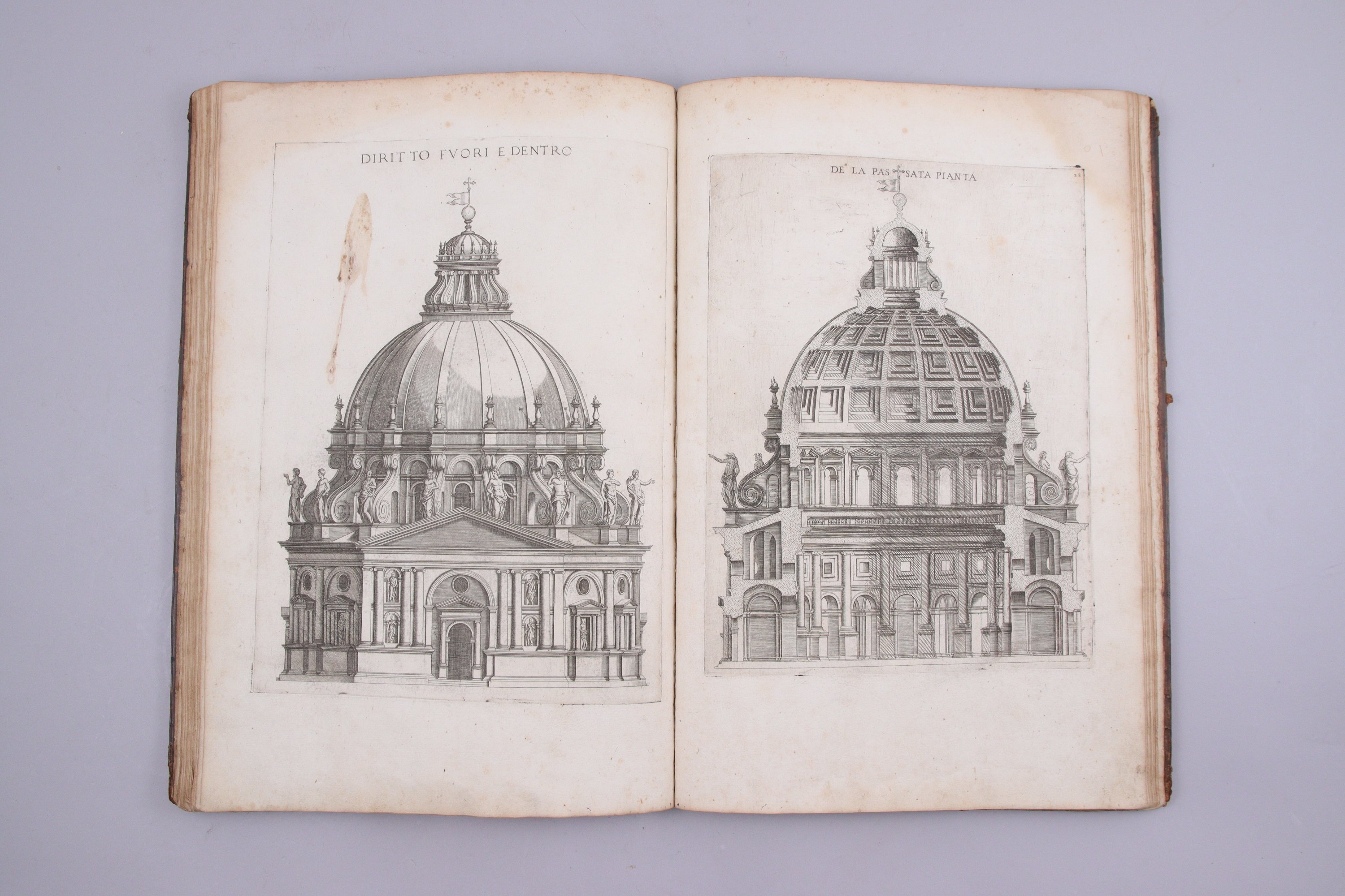 Titre avec portique, 6 (La forma del molo ne la parte di fuori), 6 (La colonna nel foro di Traiano), non numérotée, double numérotée 10-11 (Pianta del Tempio nel foro di Traiano), double numérotée 14-15 (Lo diritto de la passata pianta), 19, 20, 17, non numérotée, 33, 34, 11 (Le parti del), 12, non numérotée, 13, 21, 22, 14 (La parte dentro del tempio segnata), 15 (Ornamenti del passato templio), 36, 35, non numérotée, 28, 25, 26, double non numérotée, triple numérotée 29-30 tirée sur deux feuilles assemblées, 1 feuillet de texte non numéroté.]