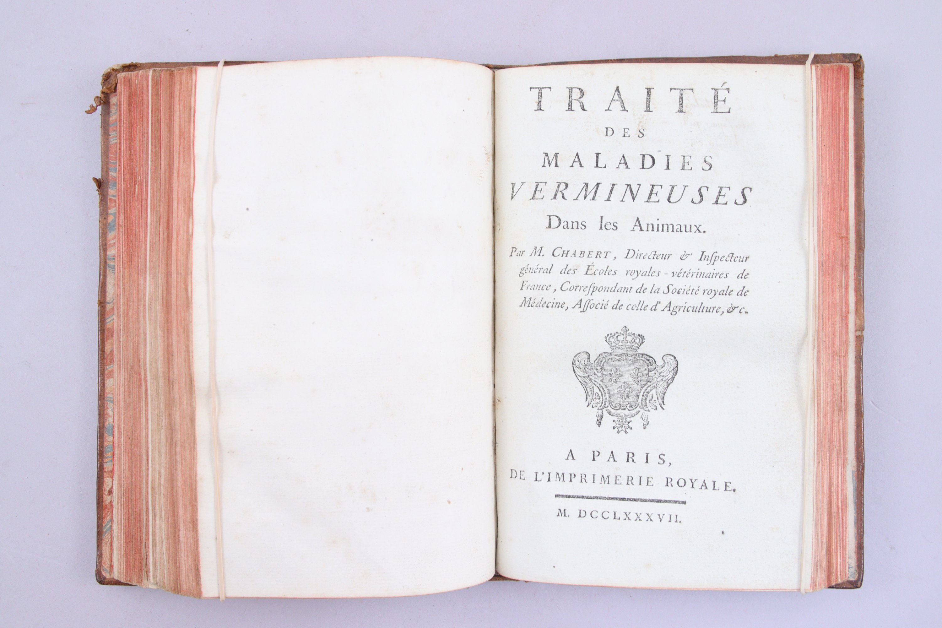 - Chabert: Traité des maladies vermineuses dans les animaux. P. Imp. Royale, 1787. 194 pages ( Taches brunâtres dans les marges inférieures des pages 85 à 135).