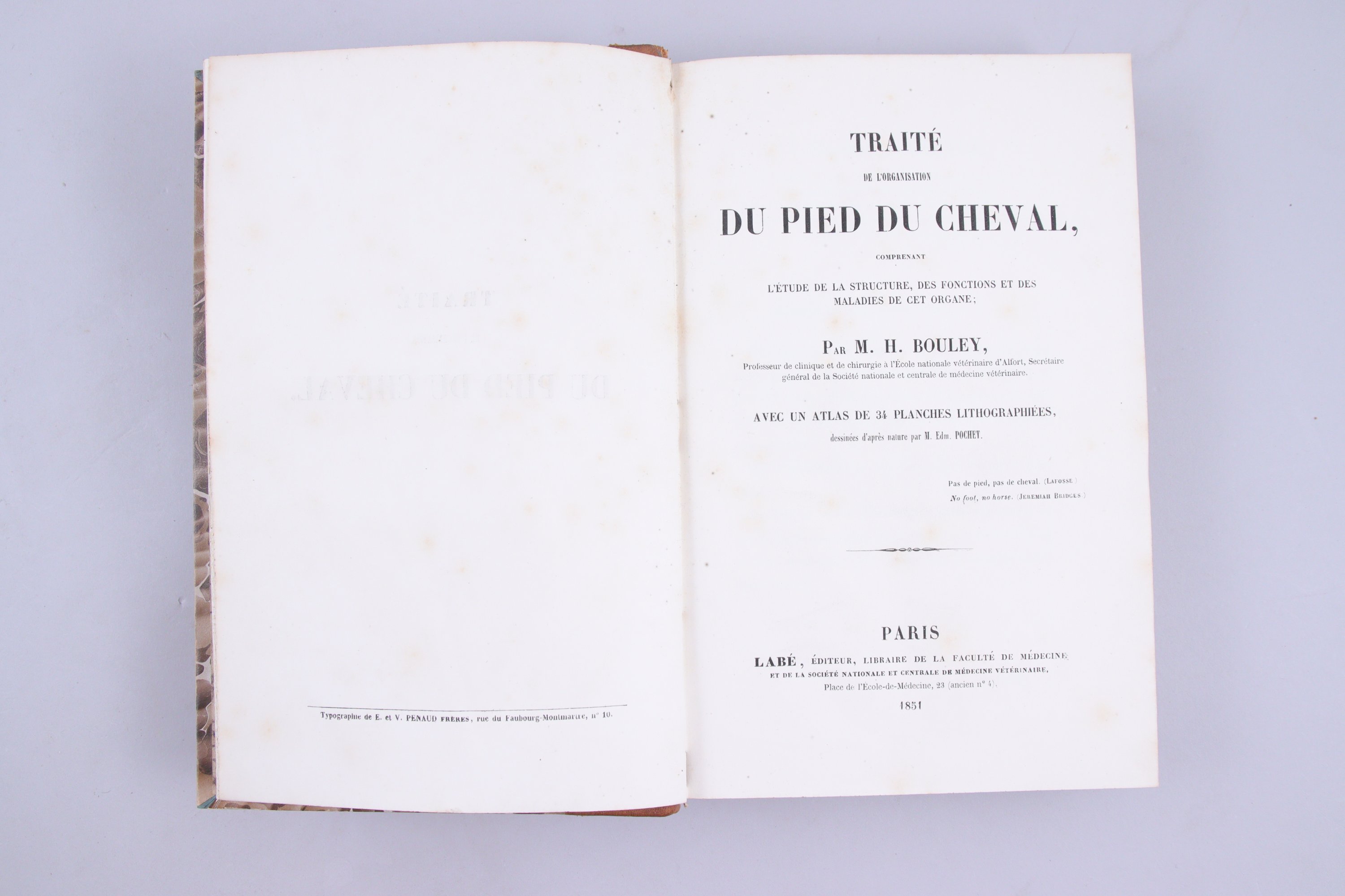 - Bouley: Traité du pied du cheval, comprenant l'étude de la structure, des fonctions et des maladies de cet organe. Paris, Labé, 1851.