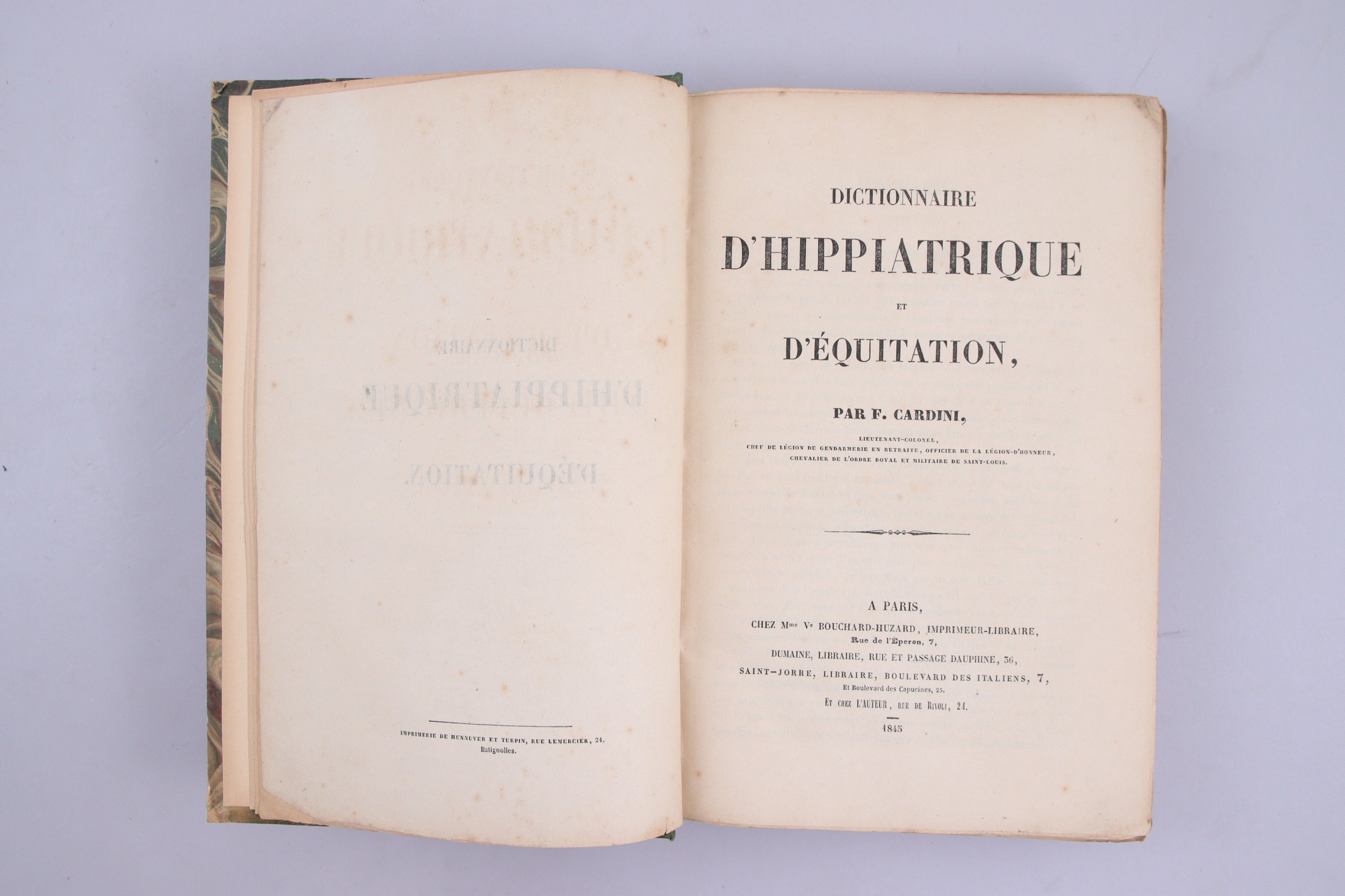 - Cardini: Dictionnaire d'hippiatrique et d'équitation.. Paris, Veuve Bouchard-Huzard et associés, 1845.