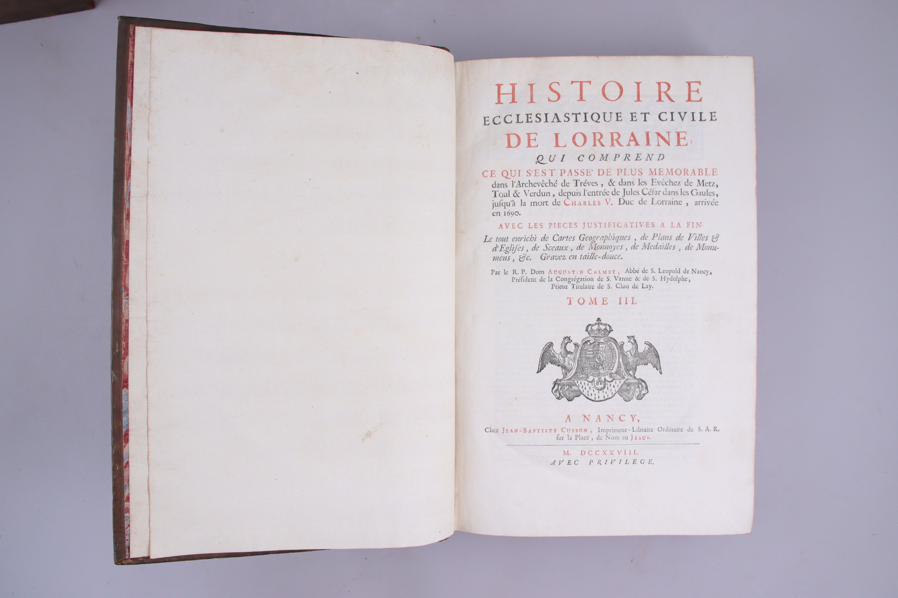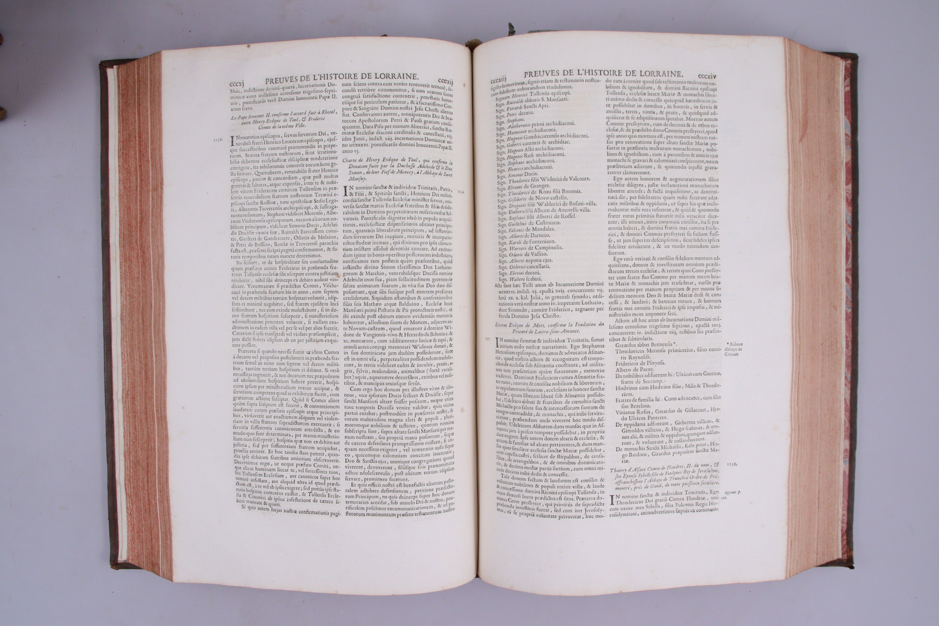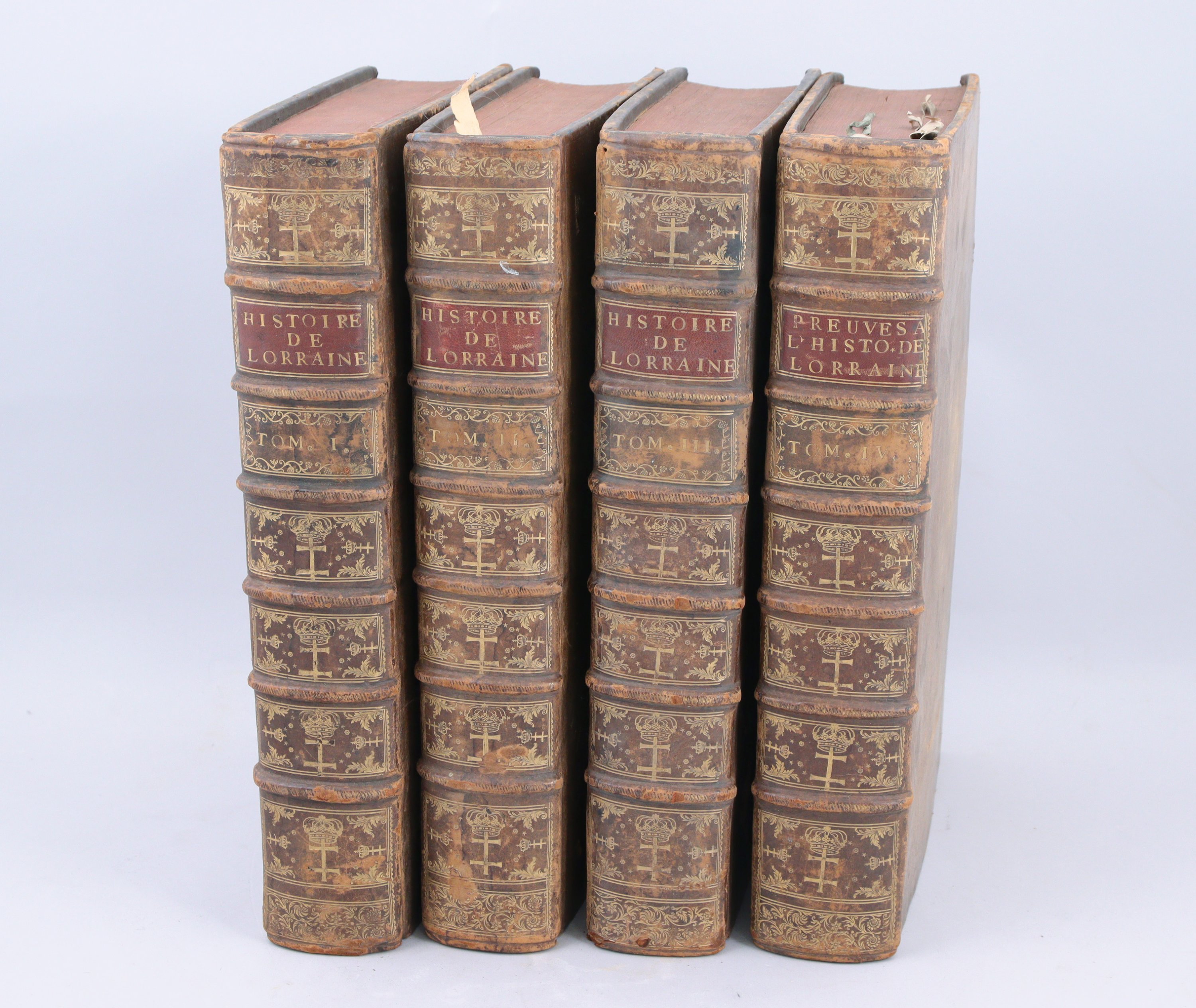 Histoire ecclésiastique et civile de Lorraine, qui comprend ce qui s'est passé de plus mémorable dans l'Archevêché de Trèves et dans les évechez de Metz, Toul et Verdun, depuis l'entrée de Jules César dans les Gaules, jusqu'à lamort de Charles V, Duc de Lorraine arrivée en 1690. Avec les pièces justificatives à la fin. Tomes I, II et III.