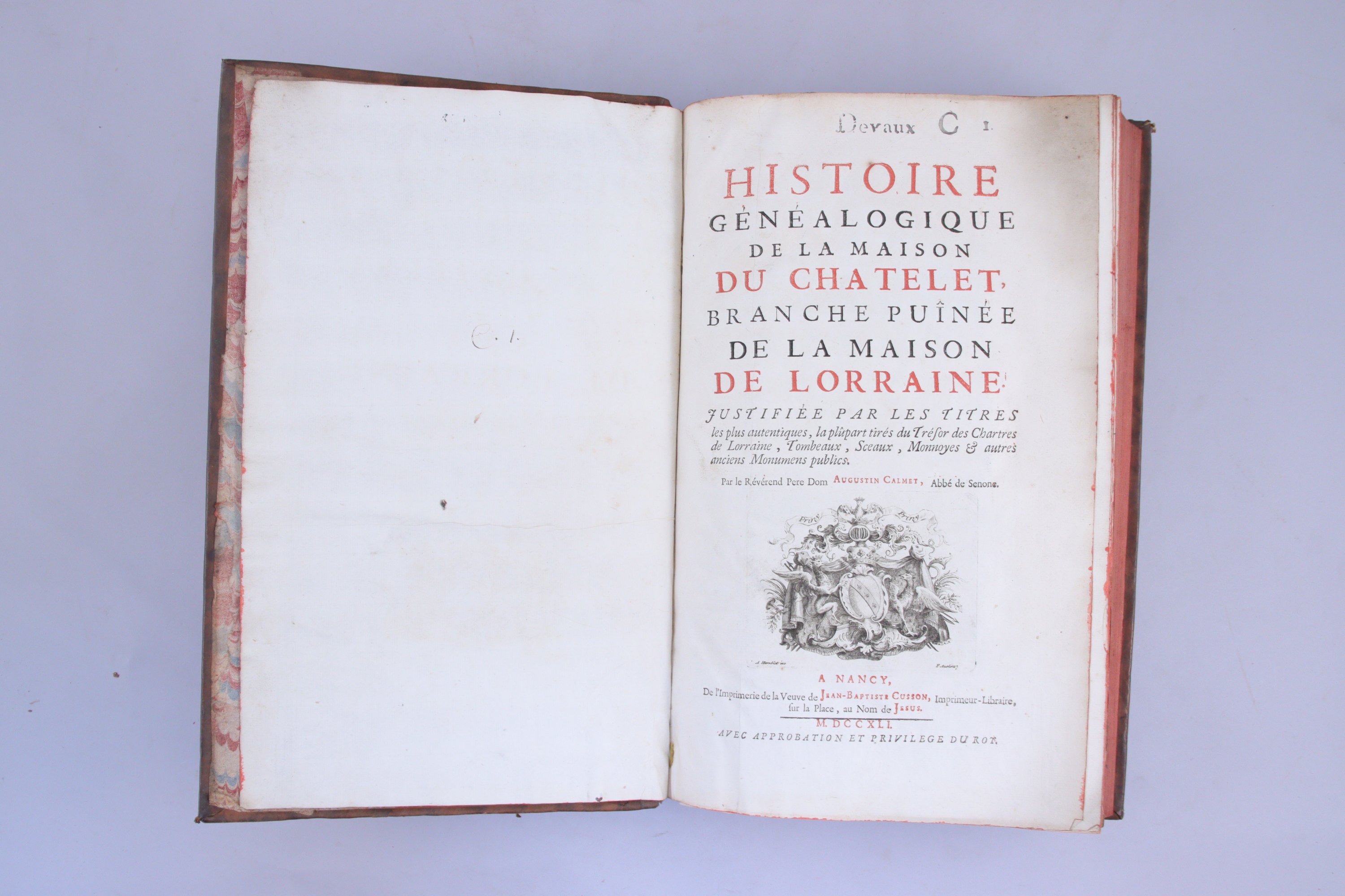 Histoire généalogique de la Maison du Chatelet, branche puînée de la Maison de Lorraine, justifiée par les titres les plus authentiques, la pluparttirés du Trésor des Chartres de Lorraine, tombeaux, sceaux, monnoyes, et autres anciens monumens publics. Par le Révérend Père Dom Augustin Calmet, abbé de Senone.