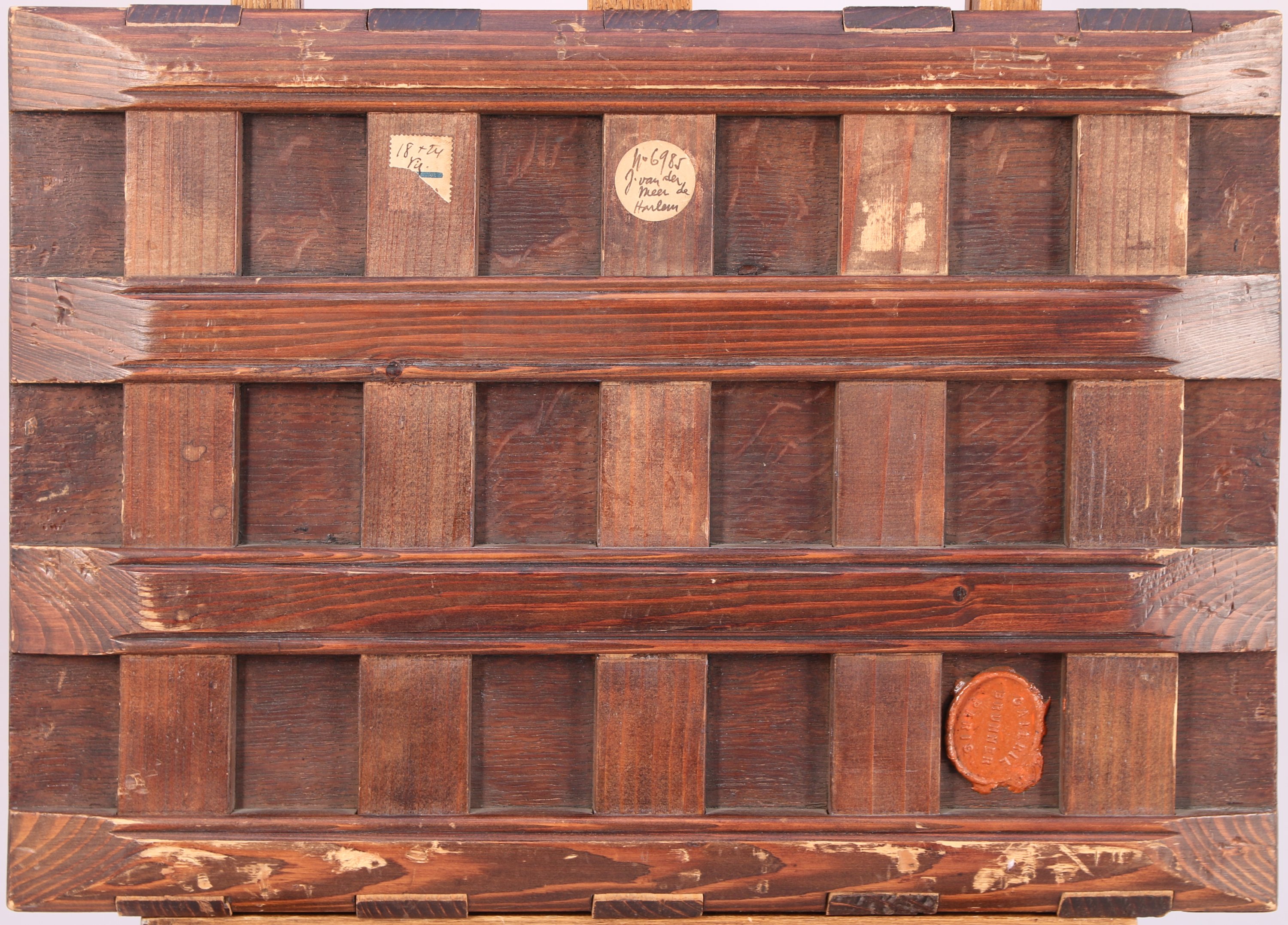 Panneau parqueté. Cachet de cire "Galerie Brunner à Paris" et étiquette avec le n° 6985.