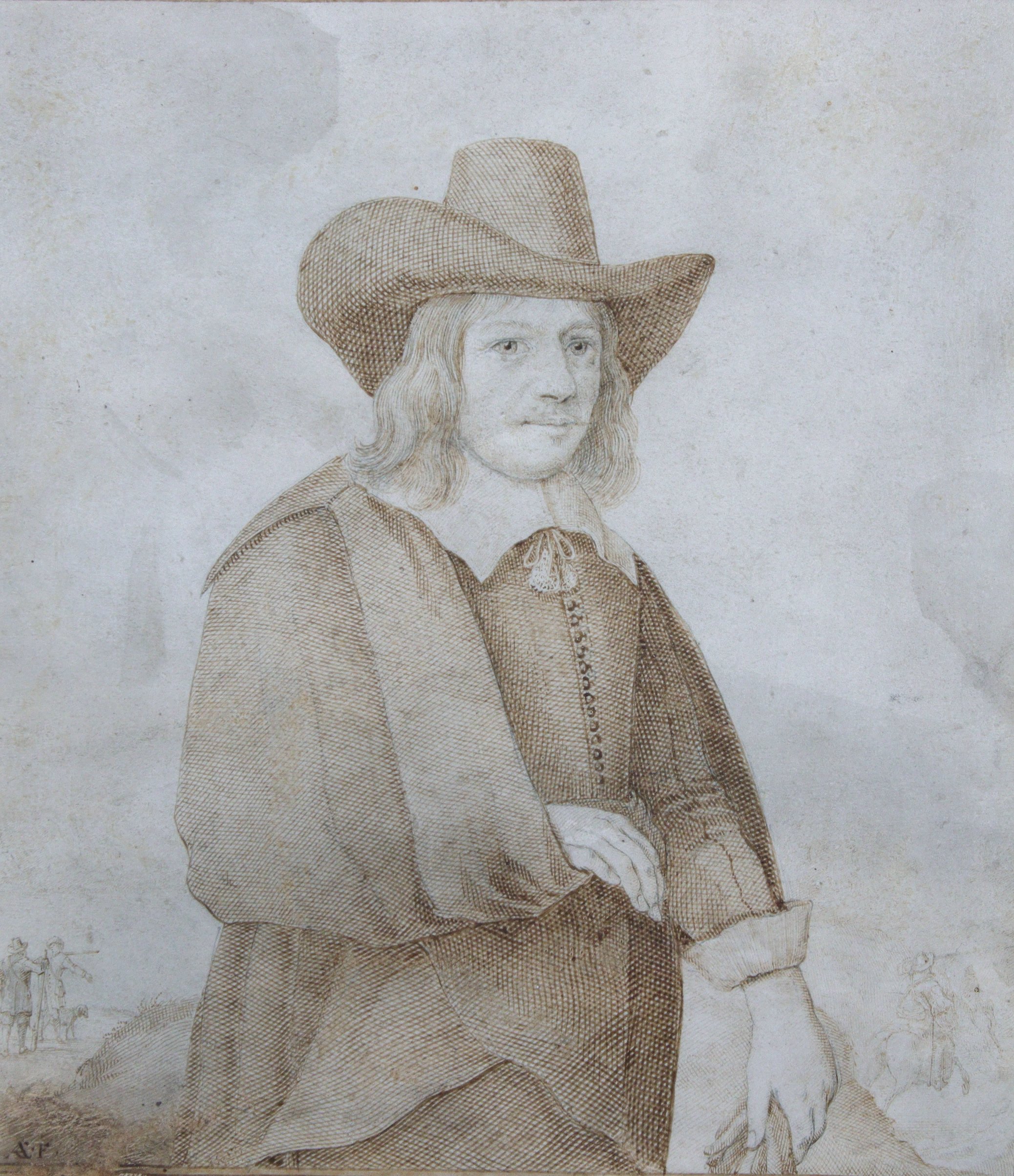 Portrait dun gentilhomme au chapeau, au loin des chasseurs