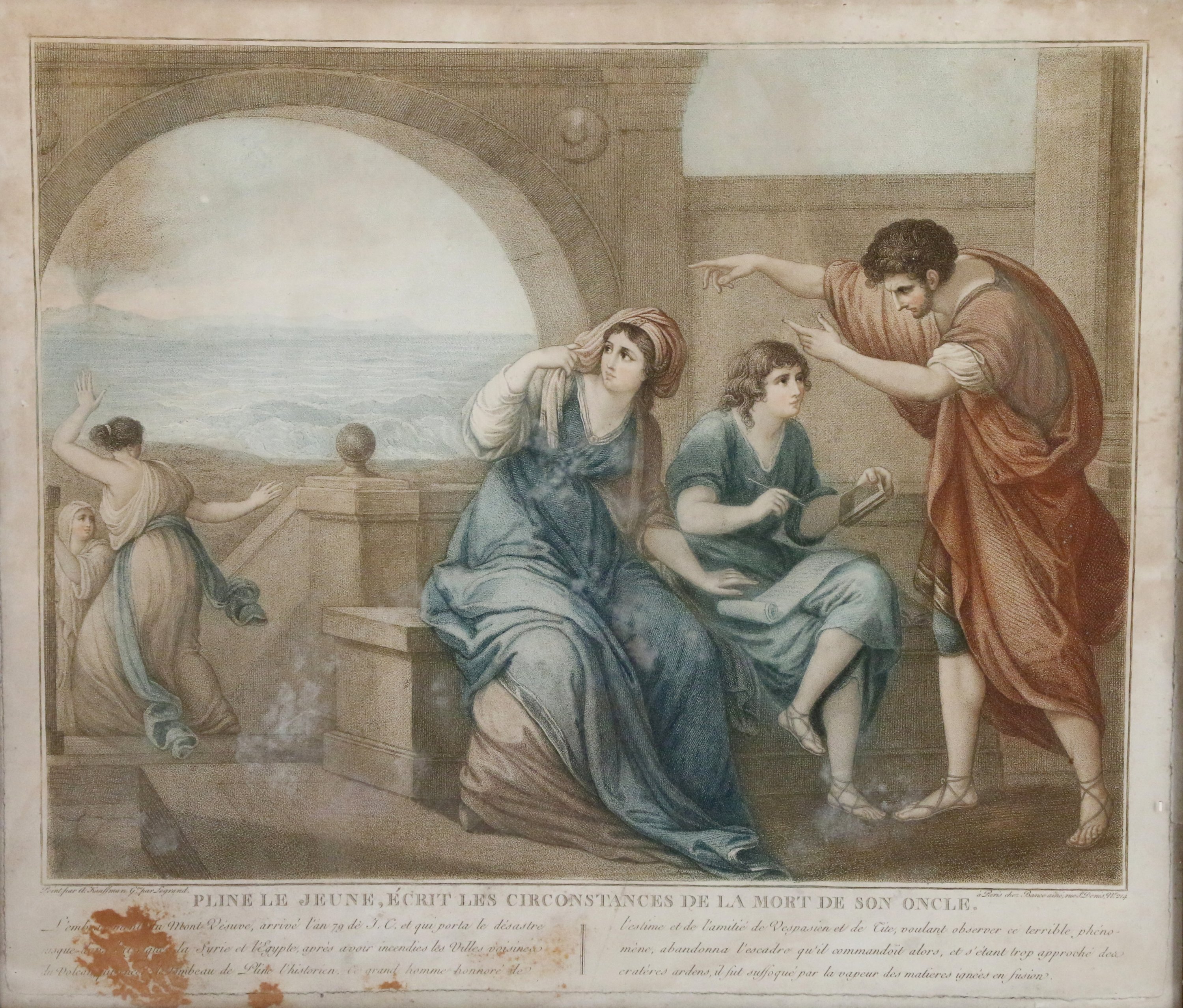 Chromolithographie légendée "PLINE LE JEUNE ÉCRIT LES CIRCONSTANCES DE LA MORT DE SON ONCLE".