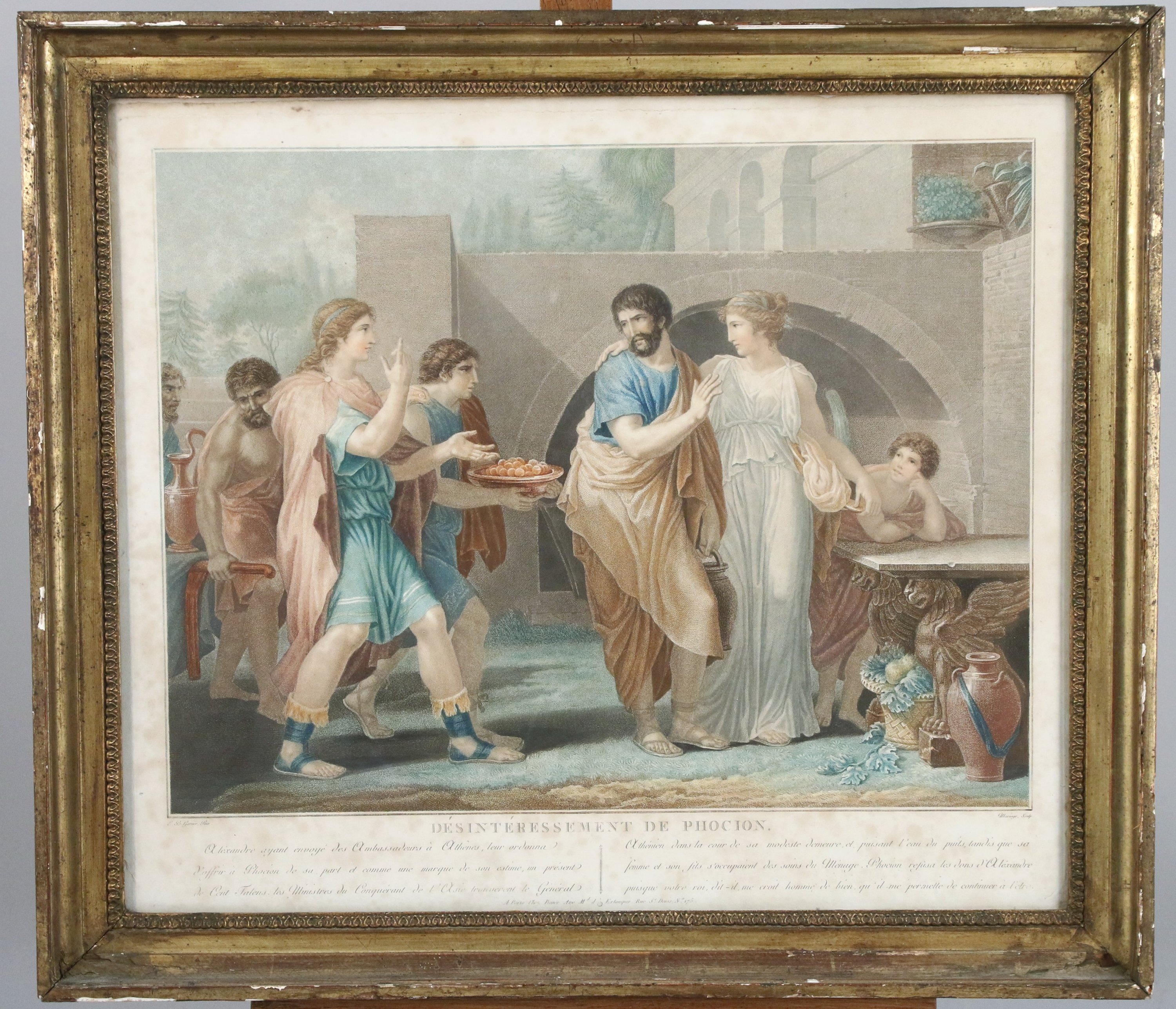 JOINT: Chromolithographie d'après Garnier , Achille reconnu par Ulysse. Légendée "Désintéressement de Phocion". Début du XIXe s. Haut. 39, Larg. 44 cm. (à vue)