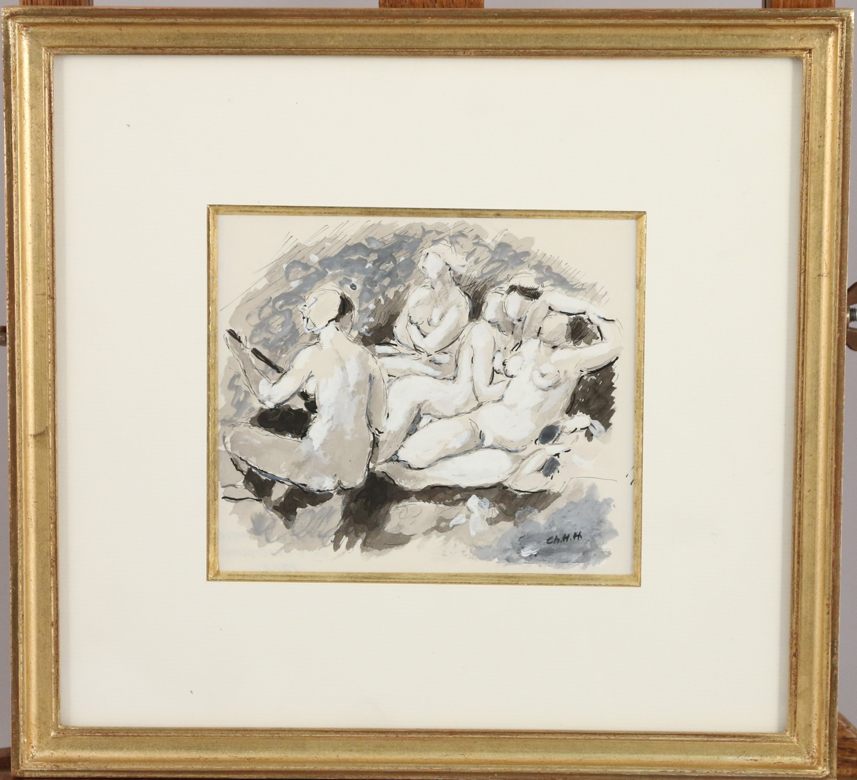 Dessin à l'encre, gouache et lavis, signé " Ch. H.H."en bas à droite.