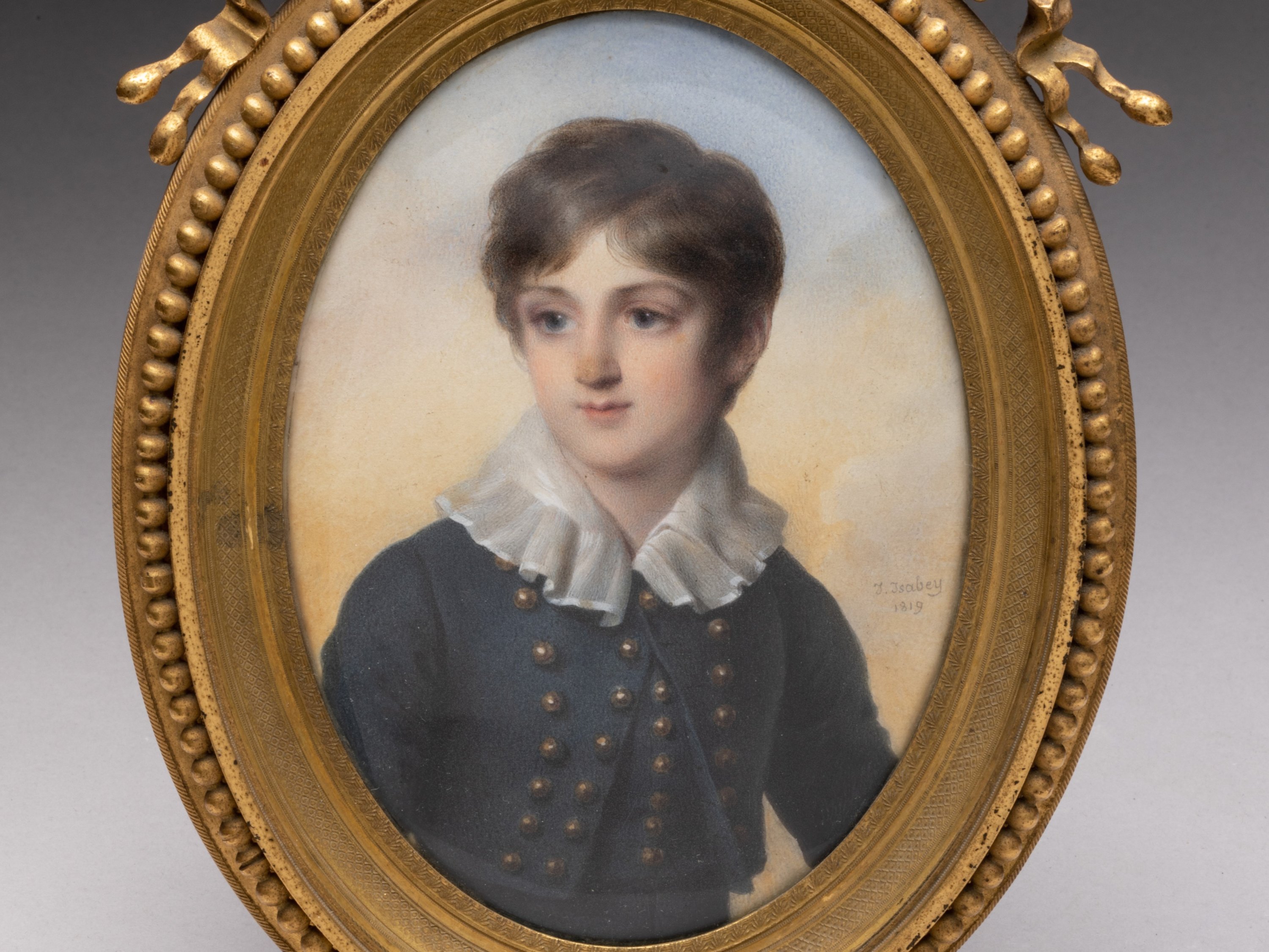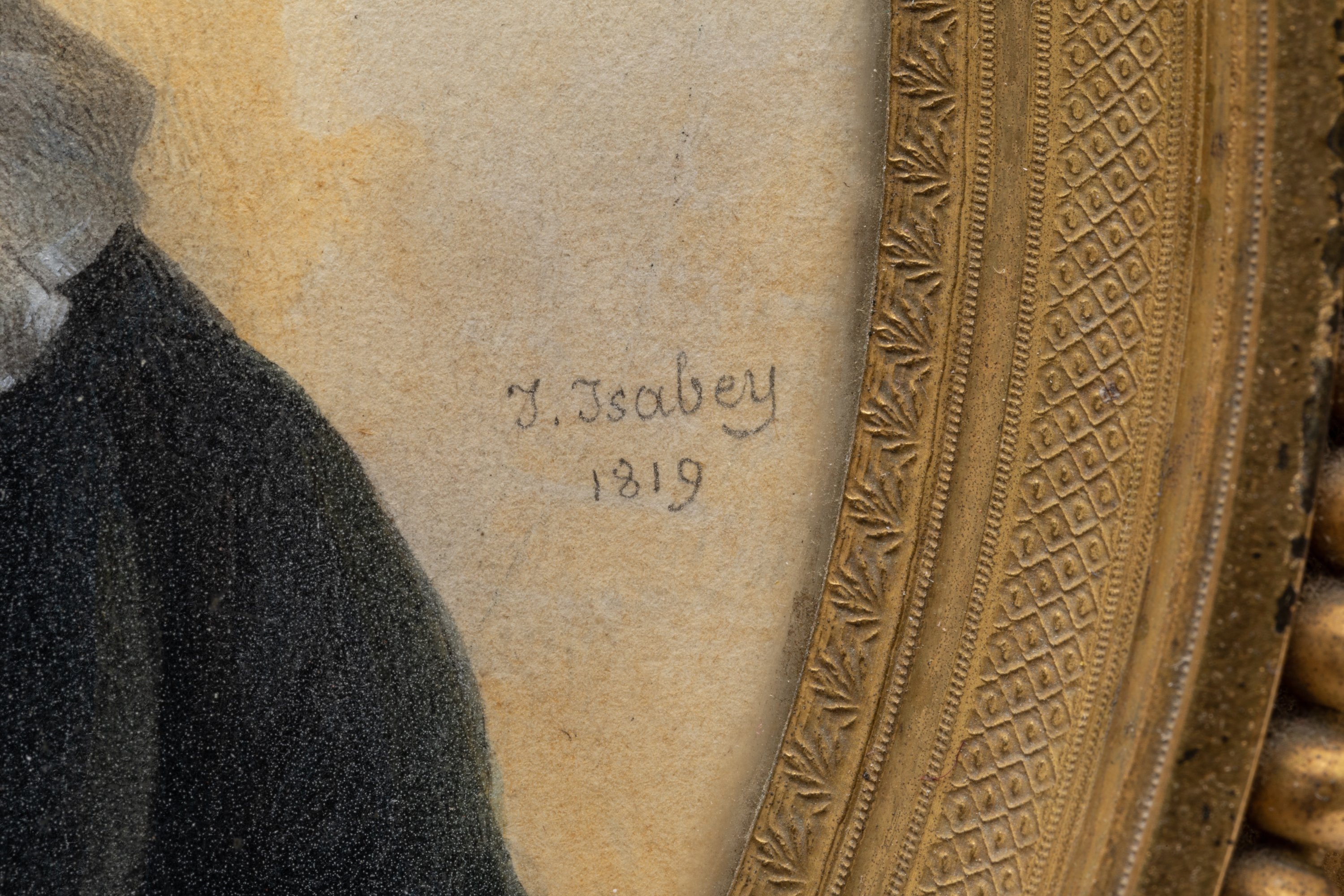 Gouache ovale, signée et datée "I. Isabey 1819" à droite.