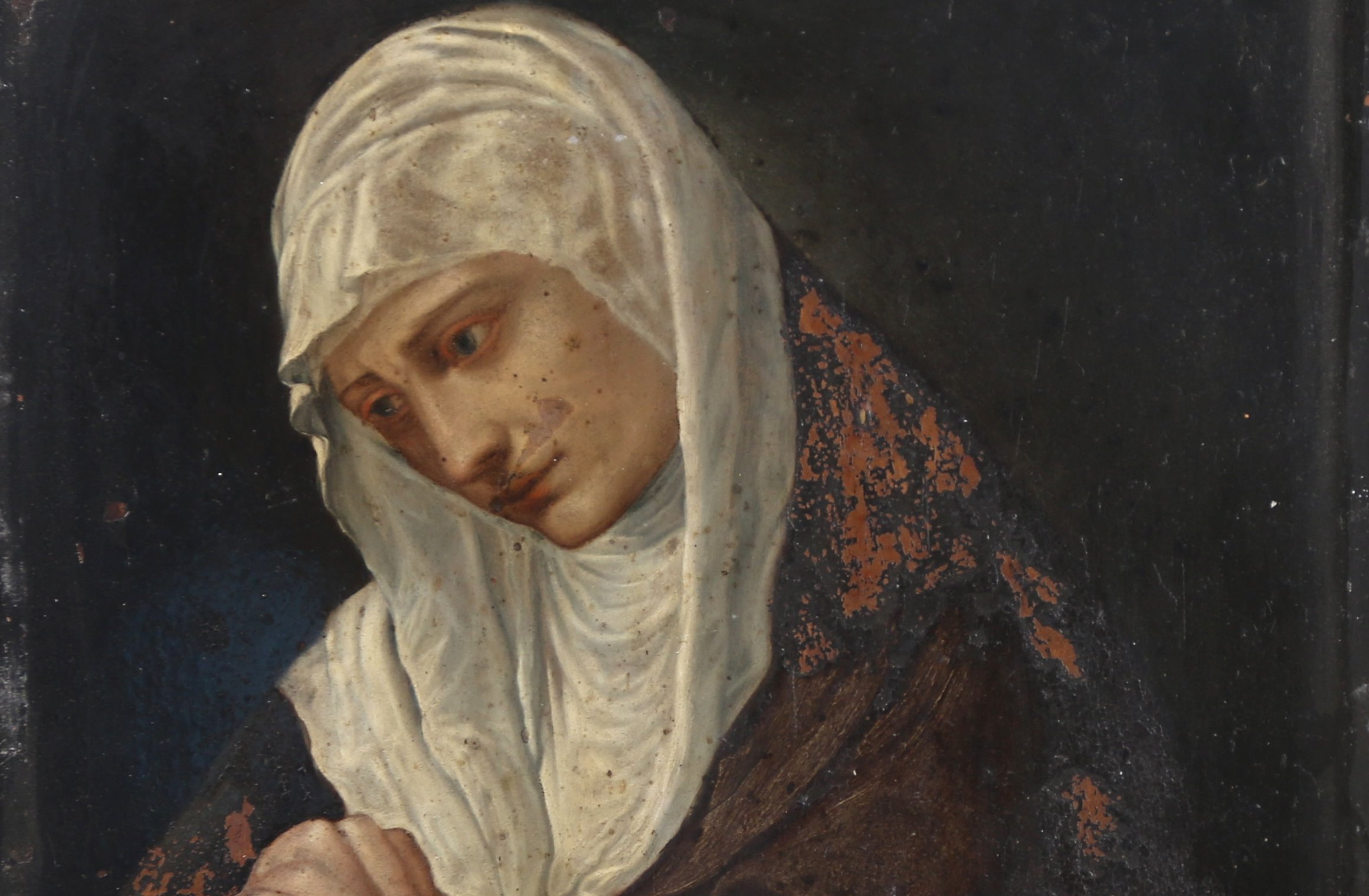Portrait de la Vierge en prière au pied de la Croix