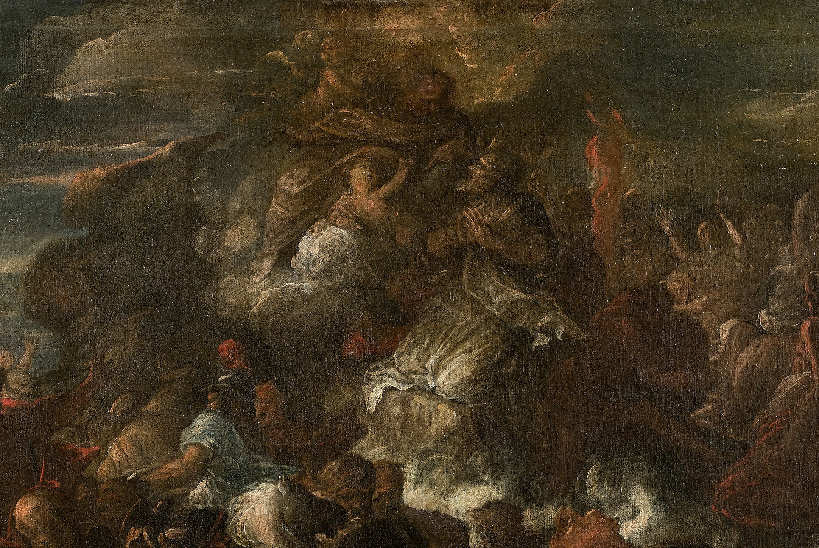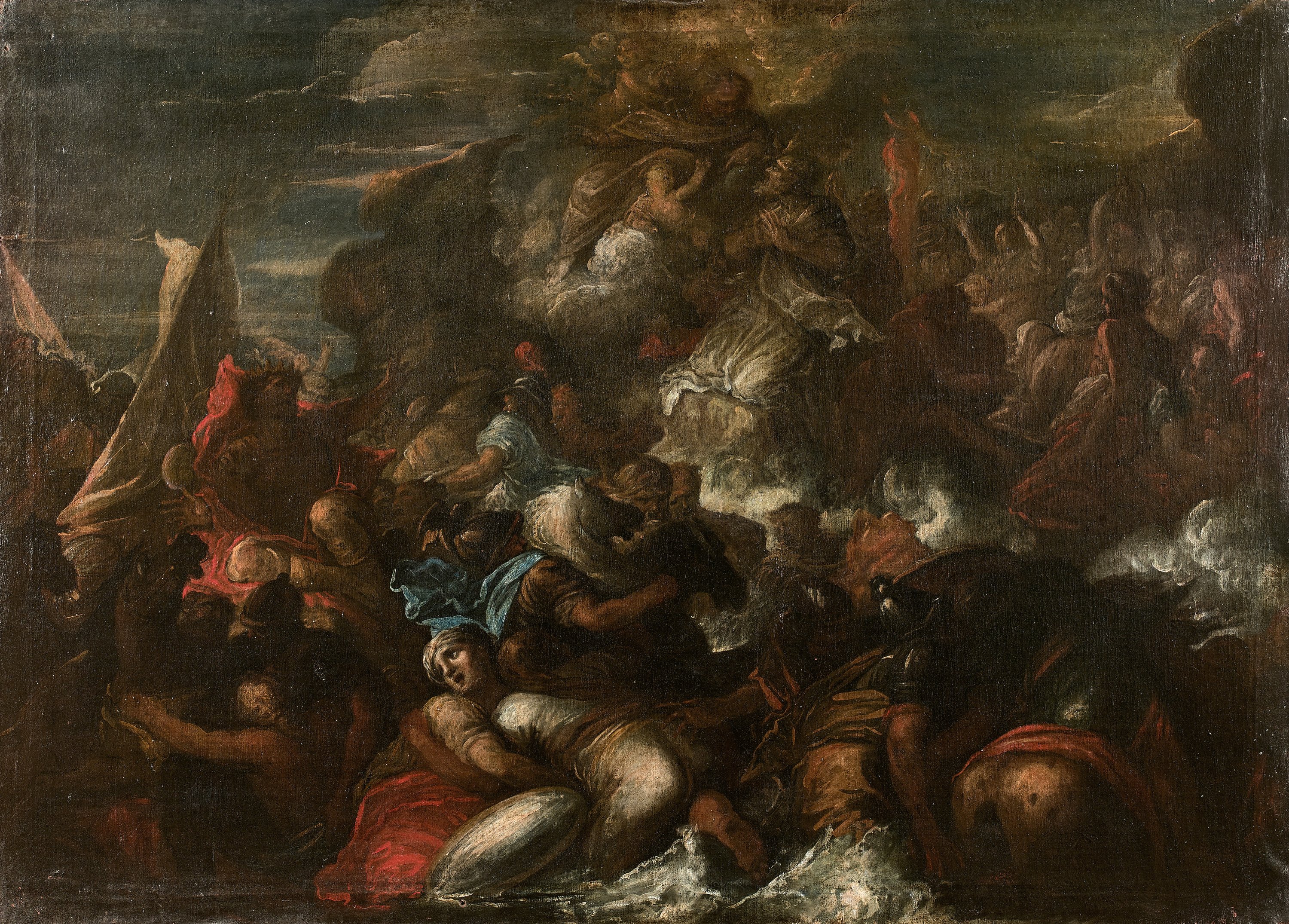 Notre tableau peut être situé dans le milieu des élèves et des suiveurs de Pierre de Cortone à Florence, Livio Mehus (1630-1692), Pietro Dandini (1646-1712), Dionisio Predellini (Florence, 1665-1733). Le sujet est tiré de L'Exode, au moment où le char du Pharaon est en train de sombrer. Au second plan, Moïse remercie l'Eternel.