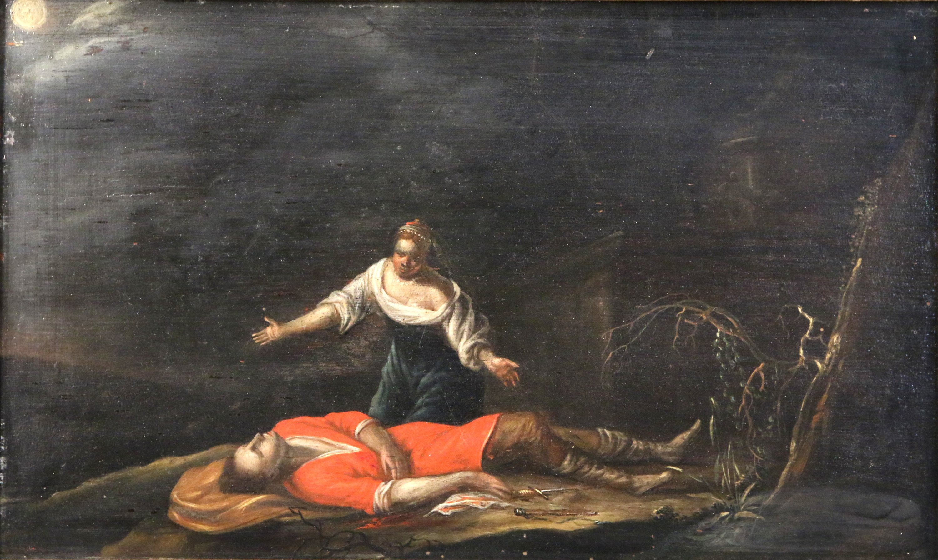 SUIVEUR D'ABRAHAM BLOEMAERT (1566 ?-1651 ?)Pyrame et ThisbeePanneau.Haut. 25,5, Larg....