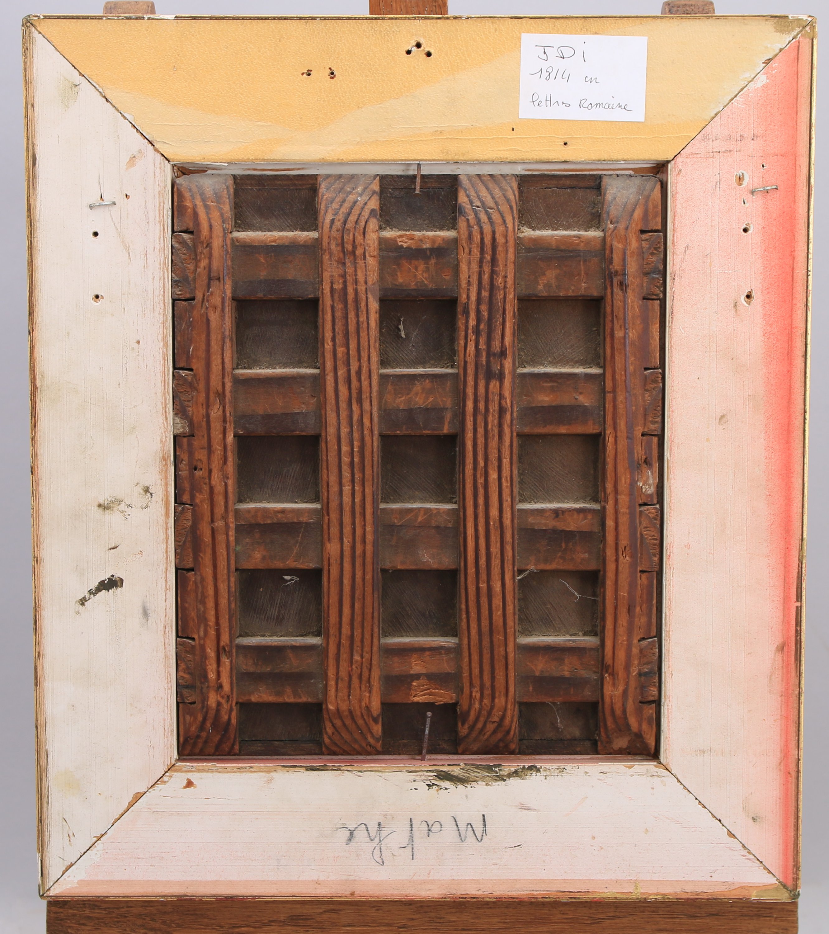 Panneau parqueté anciennement monogrammé JDI et daté 1814.