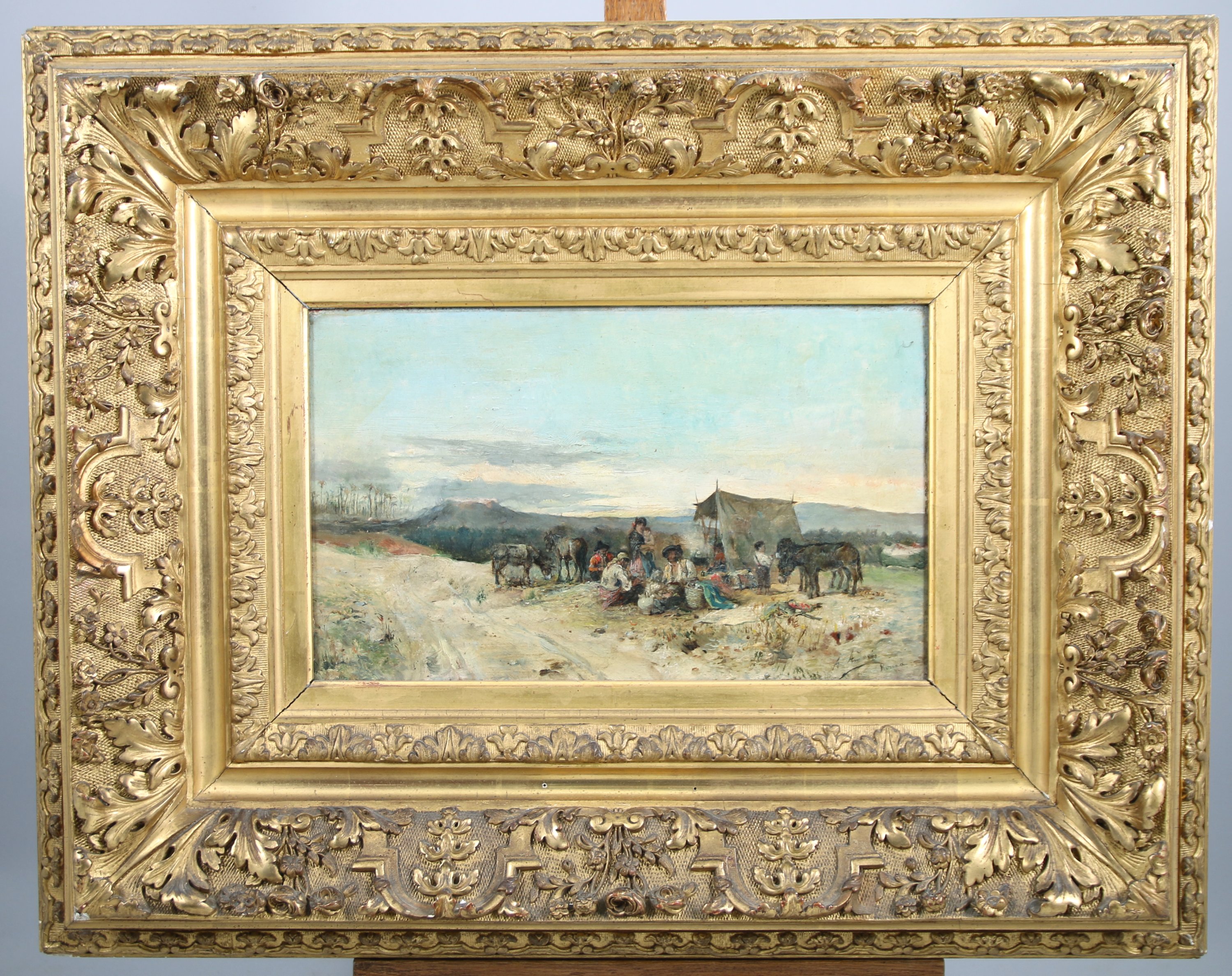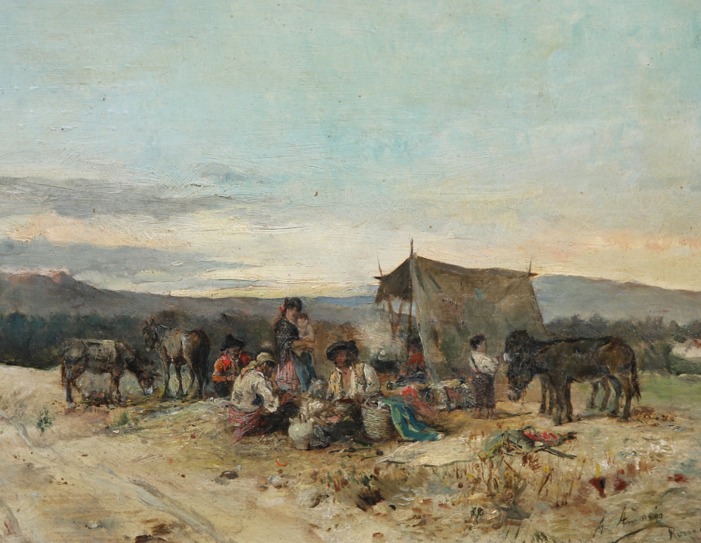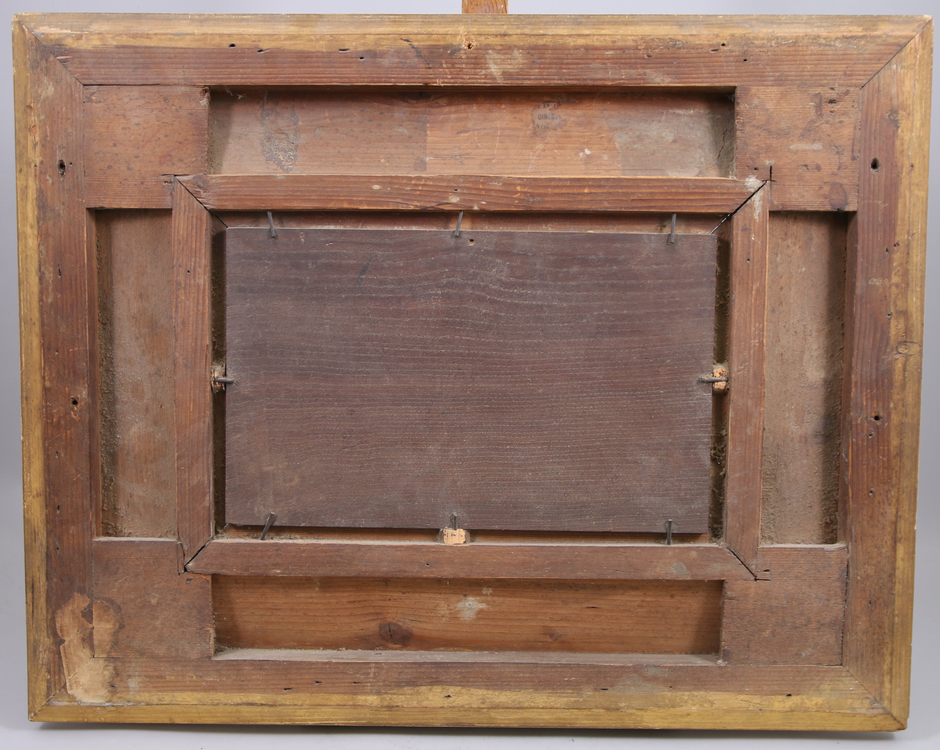 Panneau de bois. Signé "Am. On?", situé à Rome.
