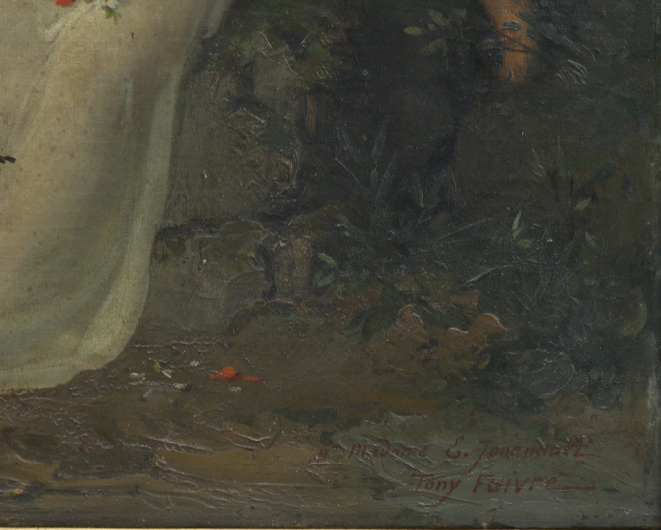 Toile signée en bas à droite et dédicacée à "Madame E. Jonrnedalt (?)"