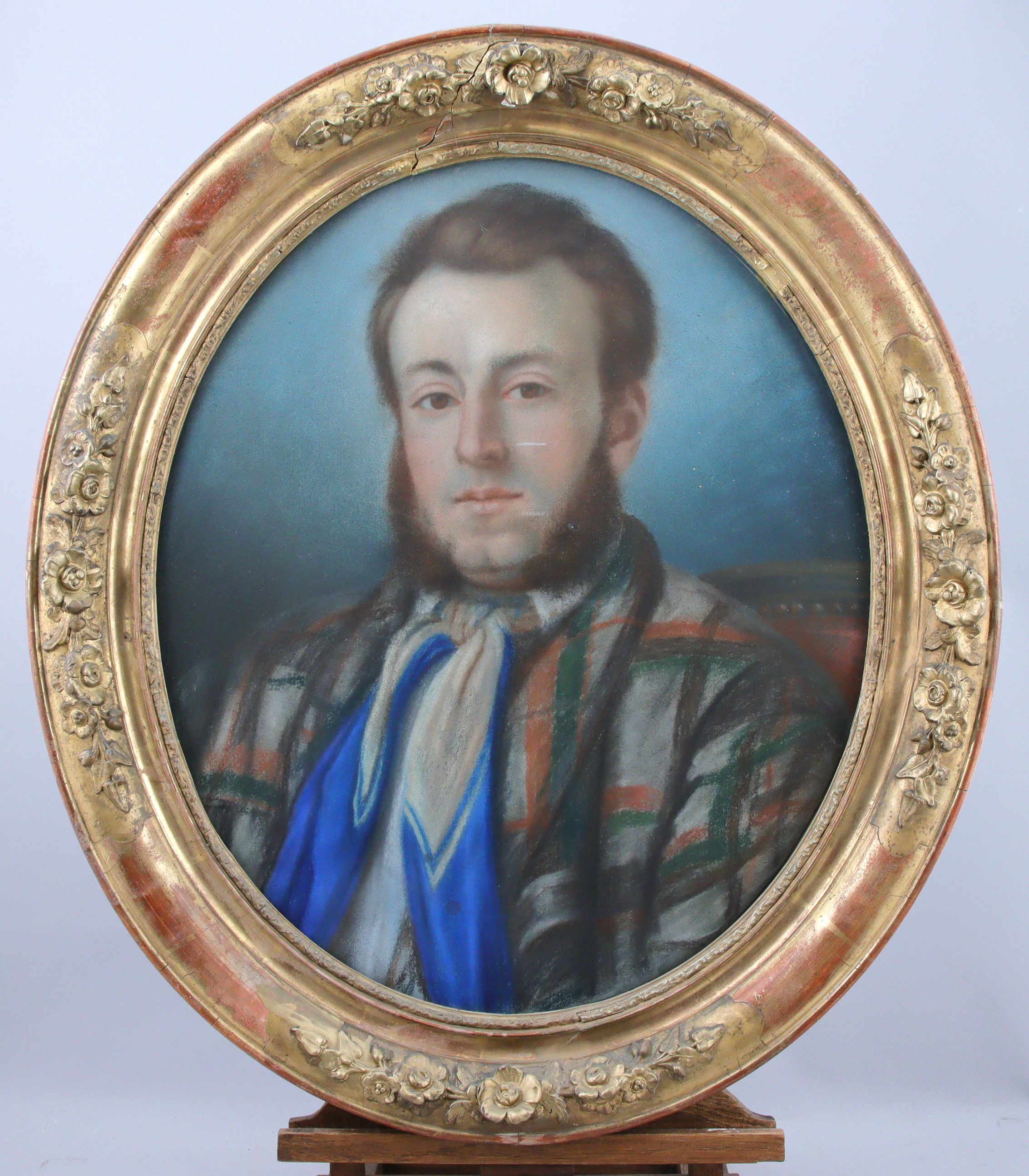 ÉCOLE DU XIXe Homme aux favoris et à la lavallièrePastel.Haut....