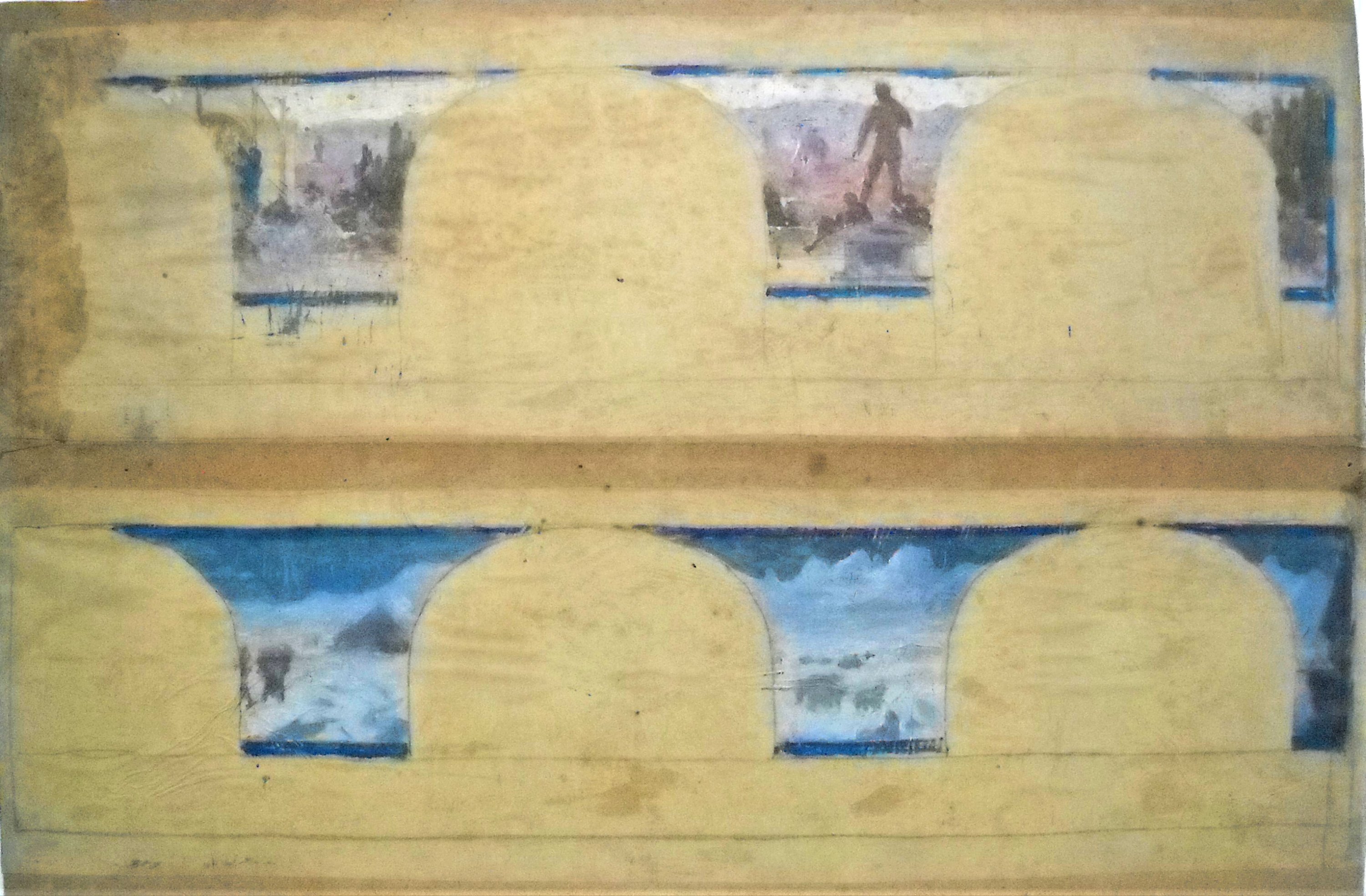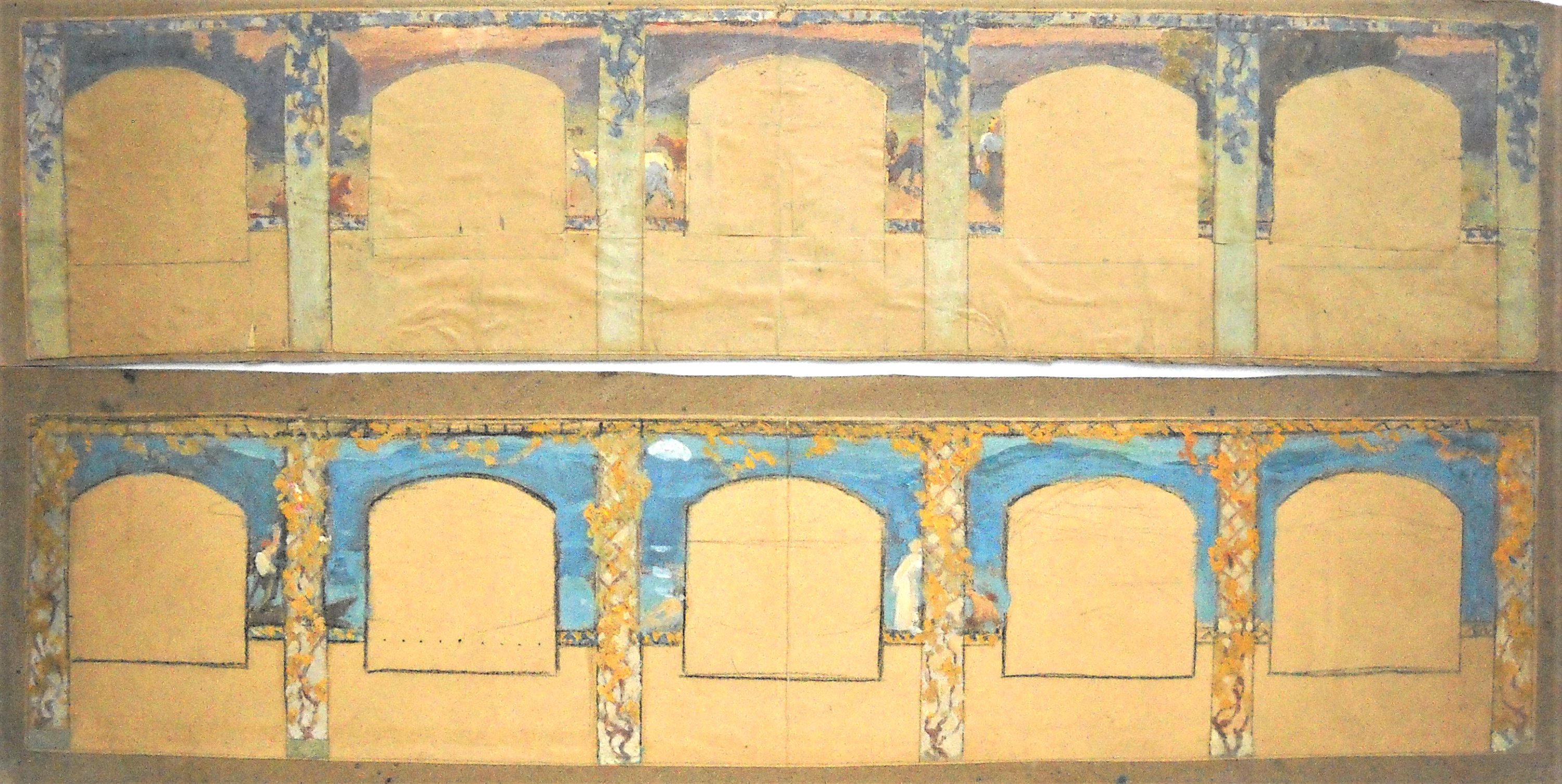 Projets de fresques aquarellées sur papier contrecollées sur carton.