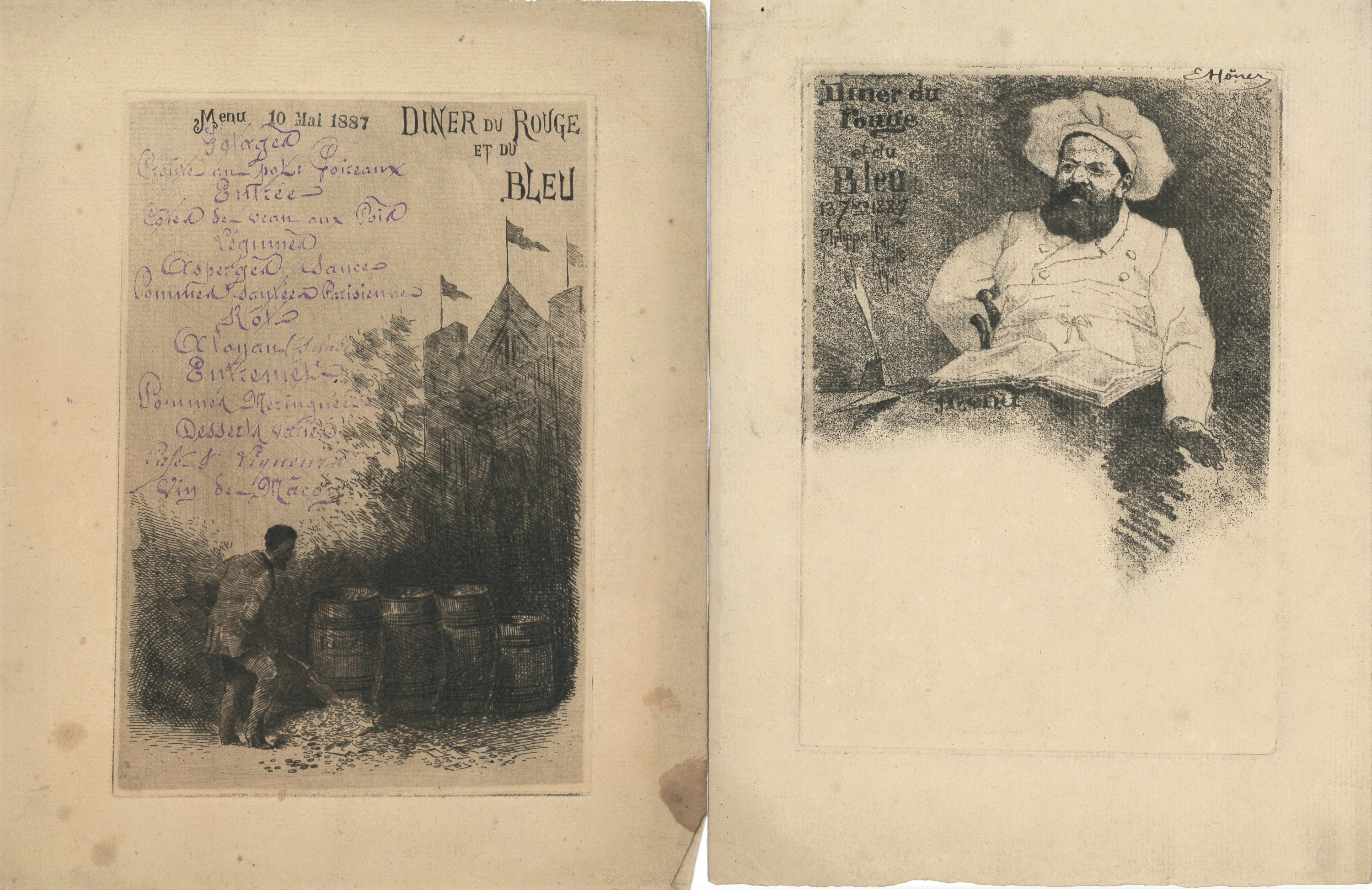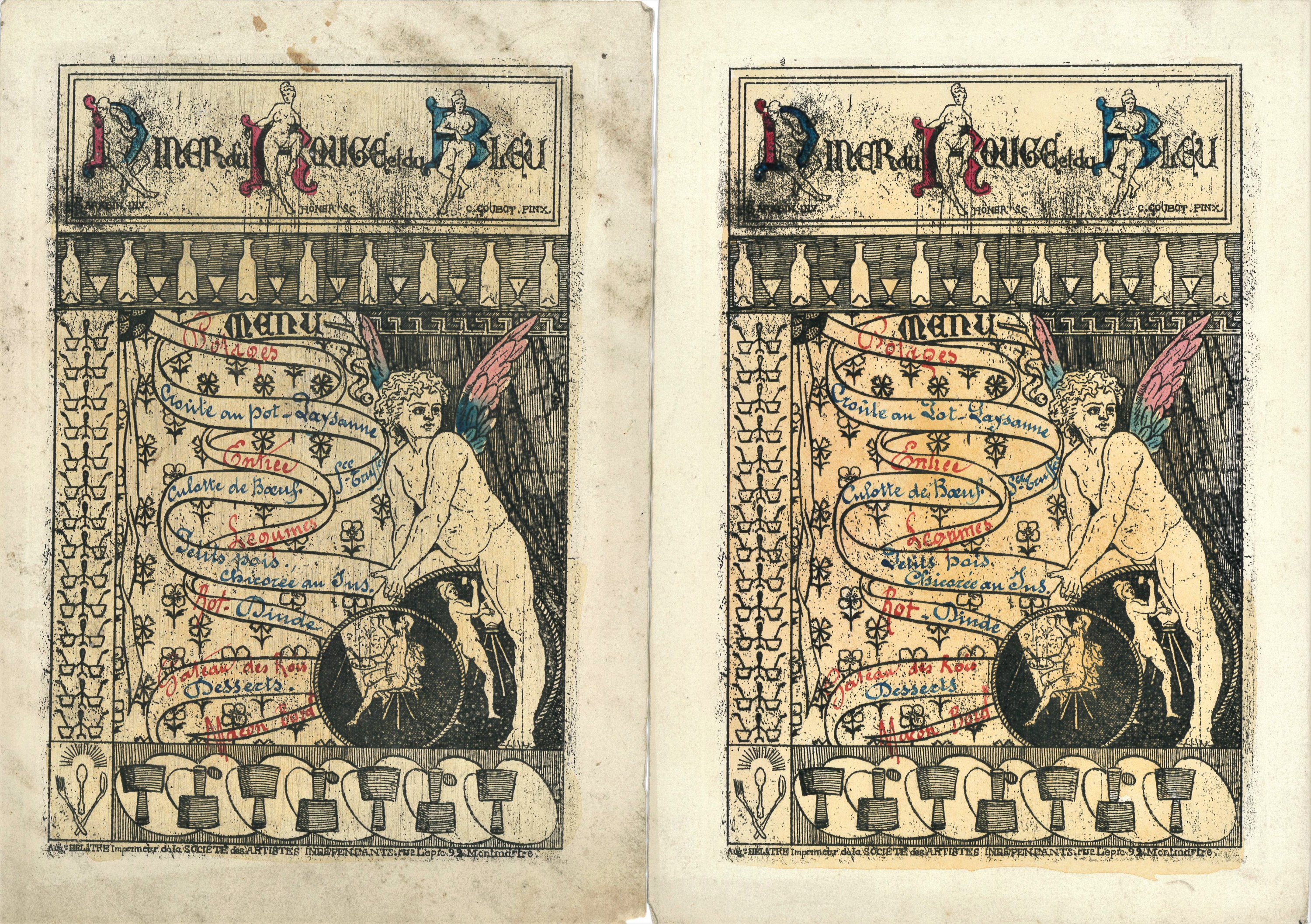 Joint: 4 menus gravés du diner du Rouge et du Bleu de la Société des artistes indépendants, fin du XIXe s.