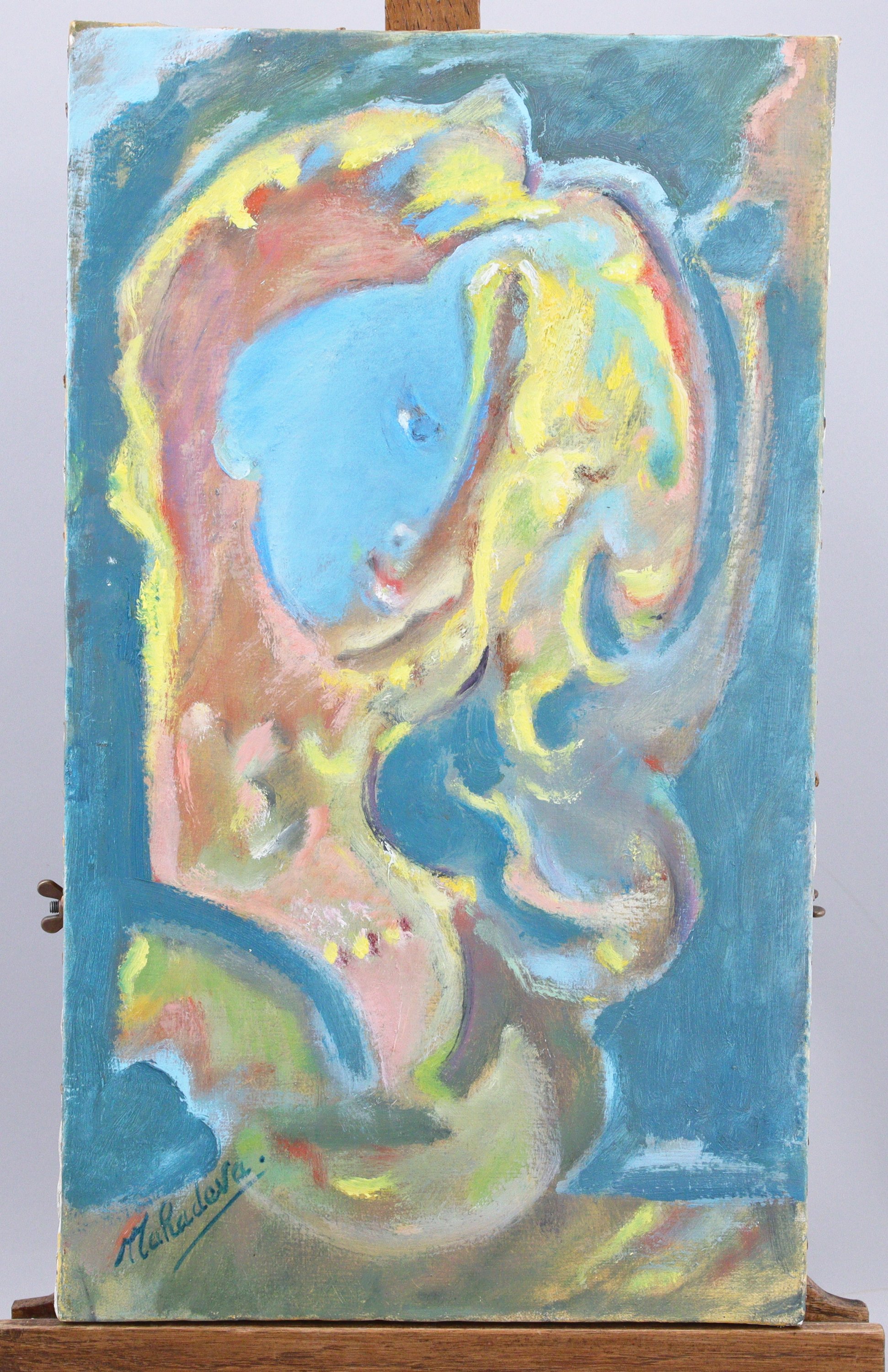 Peint pendant le confinement, ce visage de femme à la peau bleue, comme une nouvelle Avatar, exprime la douceur retenue d'une énergie tellurique à la force insoupçonnée. Ancien élève de l'école des Beaux Art de Paris, Patrick Dumont prend, au tournant de l'an 2000, le nom d'artiste de Mahadeva, signifiant "Le grand divin" en sanskrit. Conservé dans de prestigieuses collections privées, il est aussi exposé à Pont-à-Mousson et à l'hôtel Matignon (La naissance du poulain).
