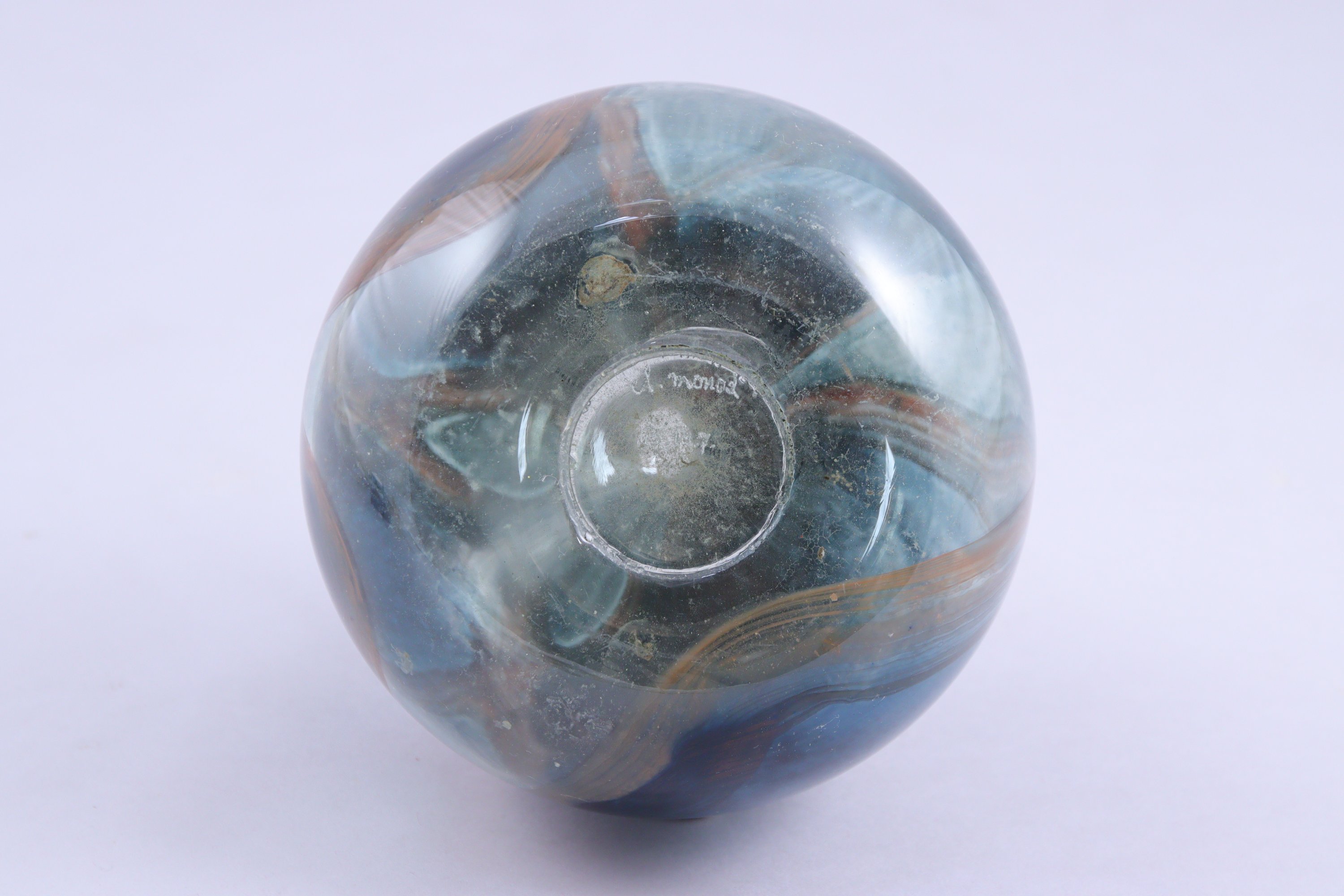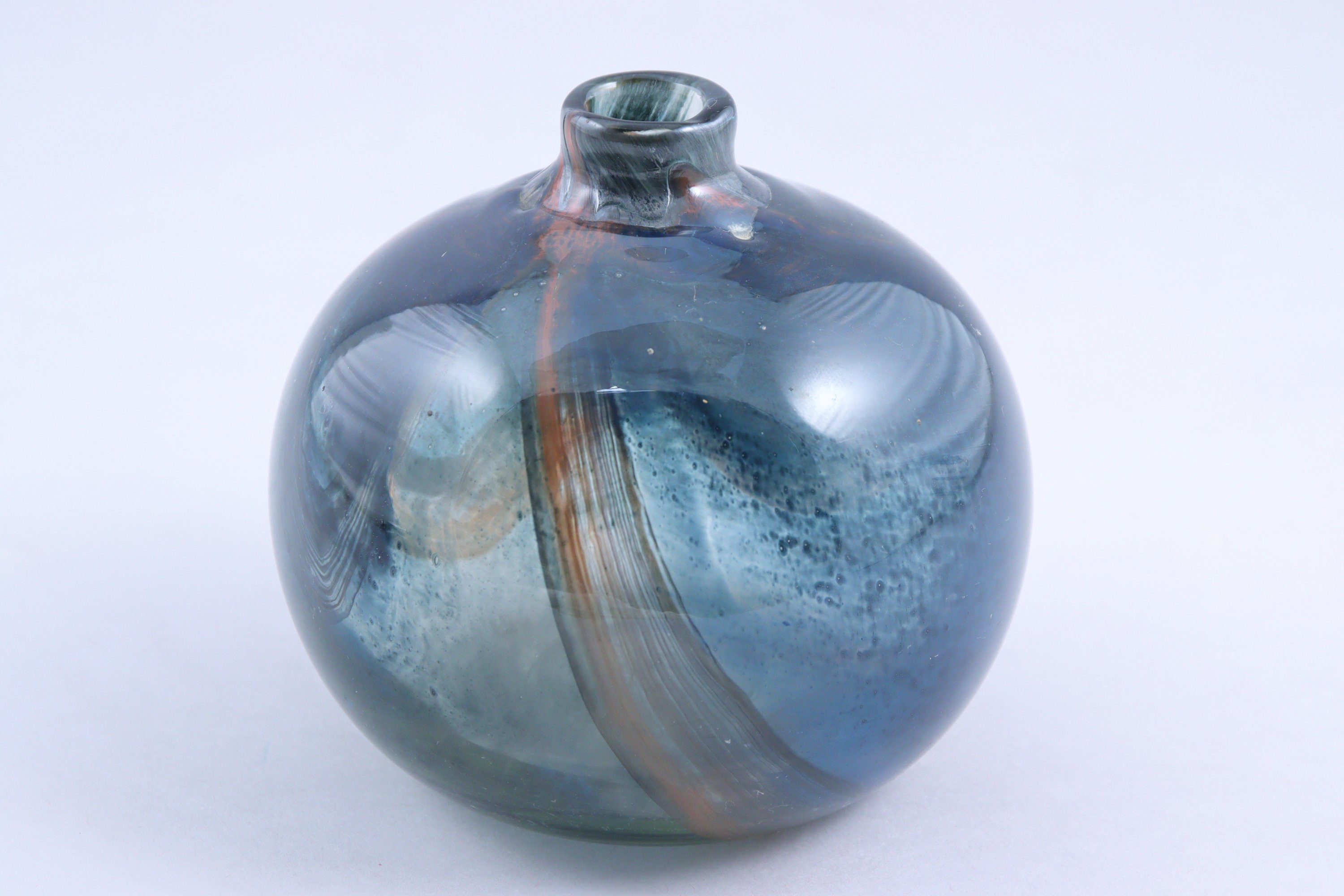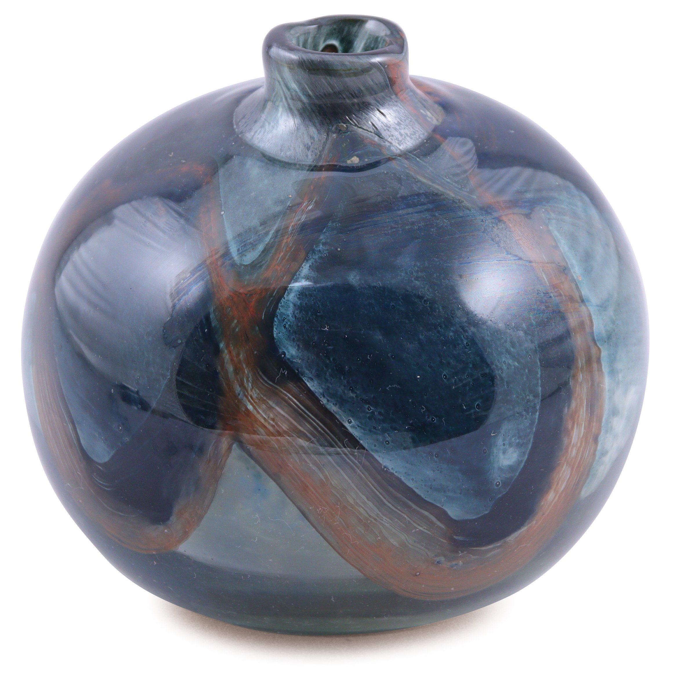 Verre, le col à fond gris bleu avec décor dondulations bleues et brune.
