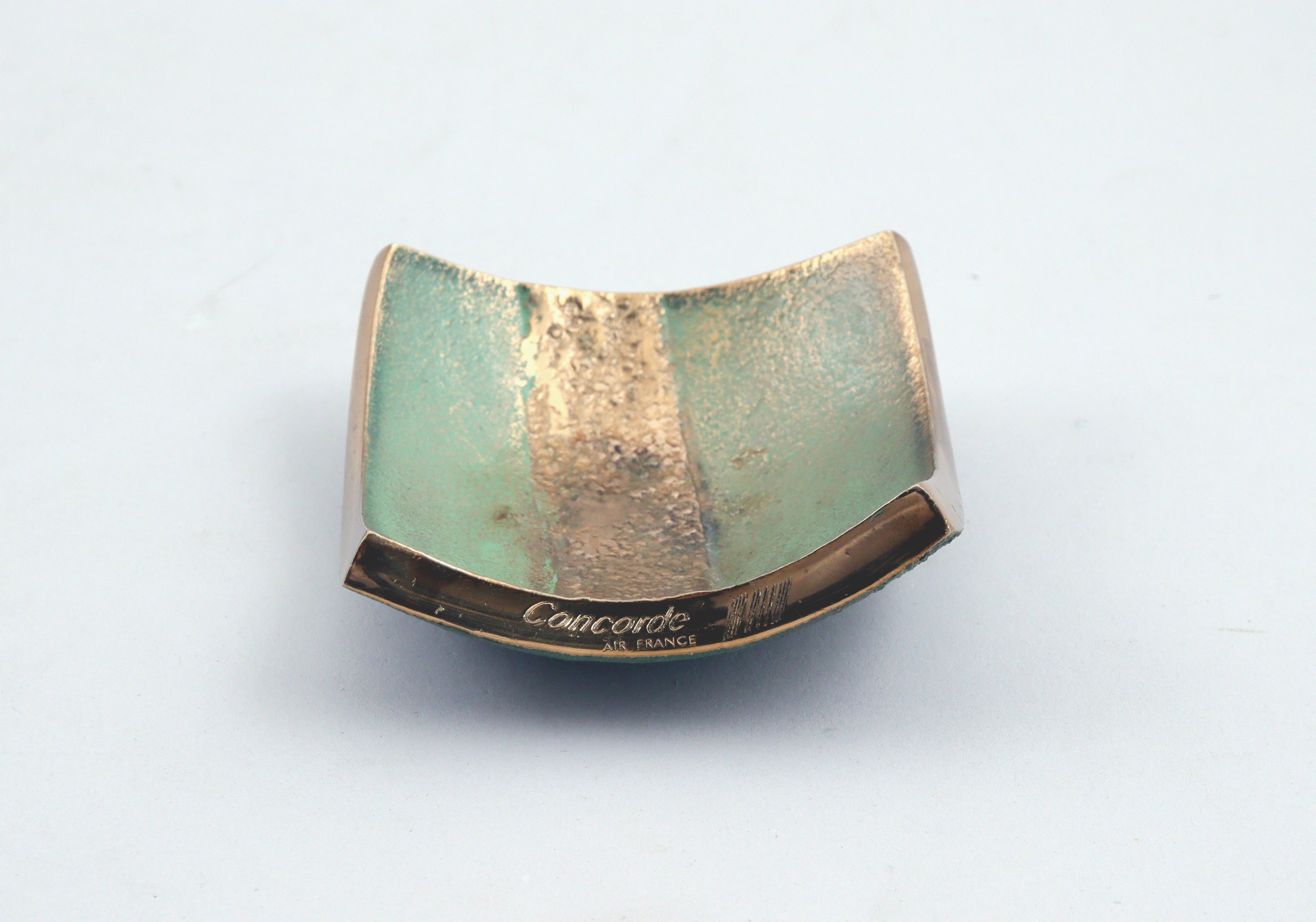 Bronze patiné de forme quadrangulaire, titré et siglé Air France, offert à certains passagers à l'occasion de vols inauguraux.