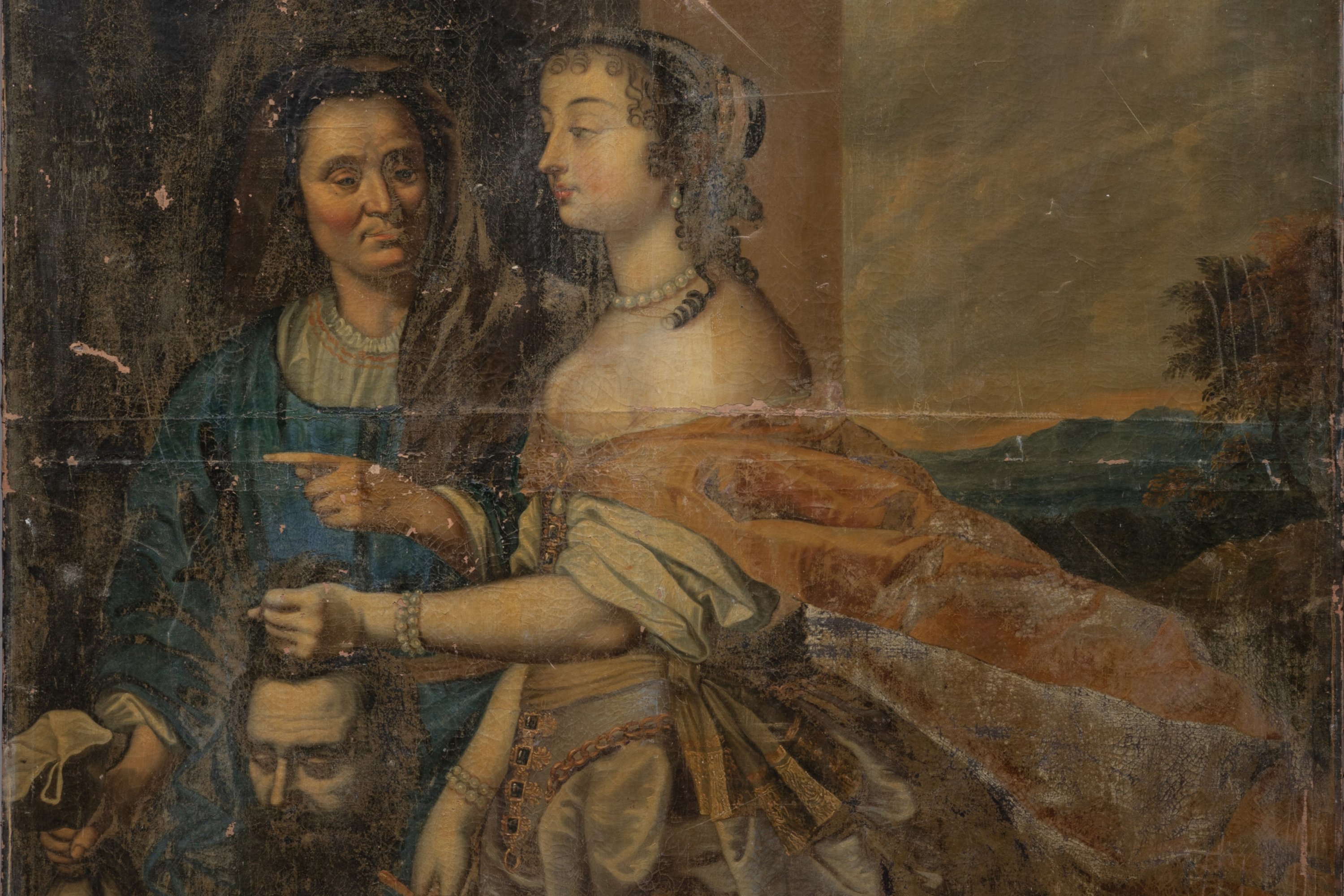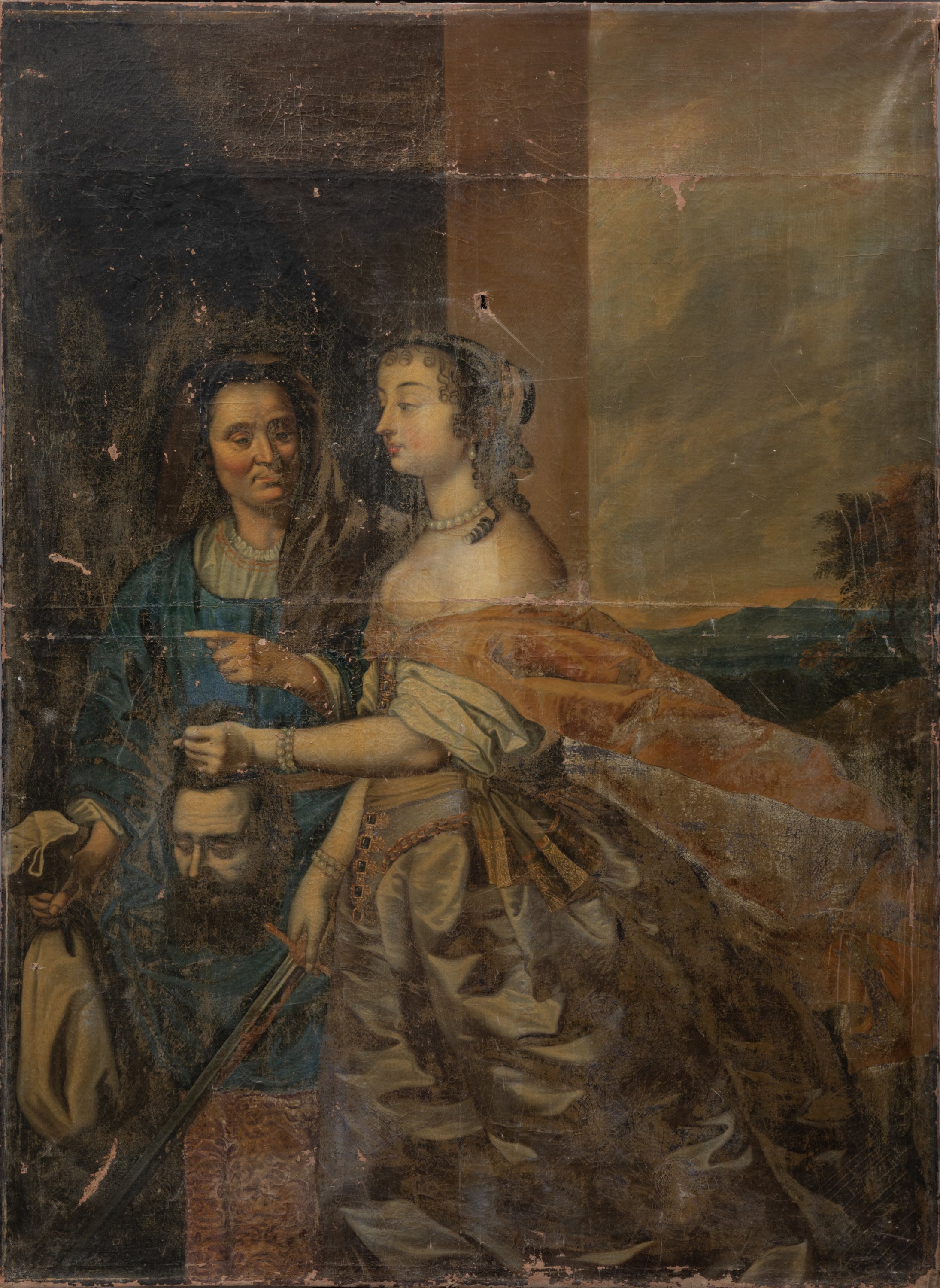 A French late 17th century painting depicting Judith and Holofernes. Canvas.
