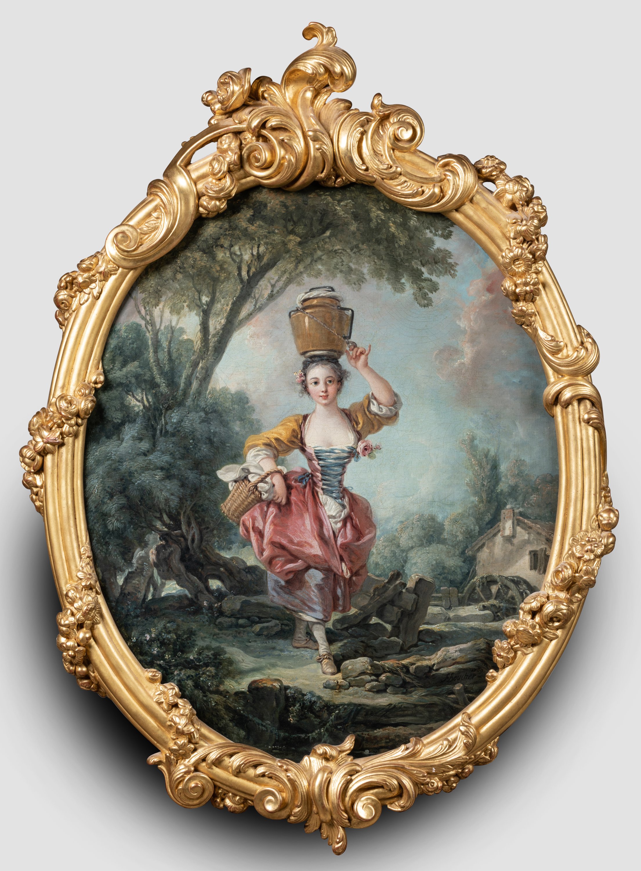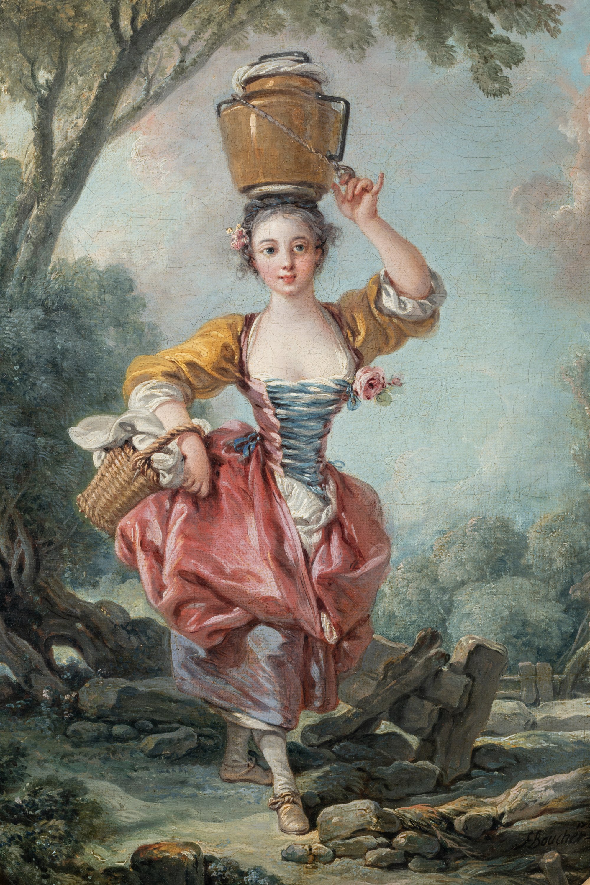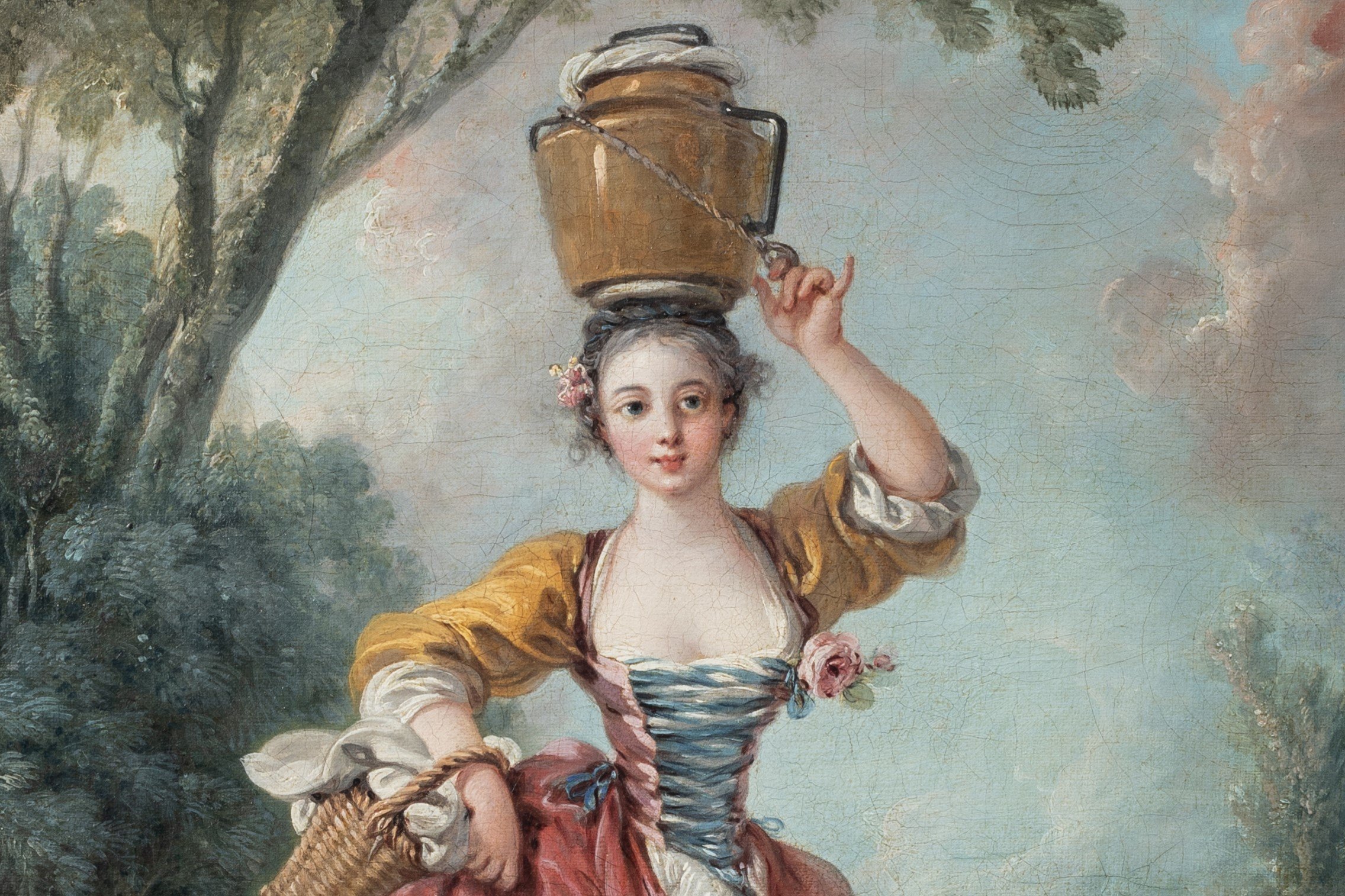 The little milkmaid. Canvas by Boucher inspired by the fable of La Fontaine Perrette et le Pot au Lait.